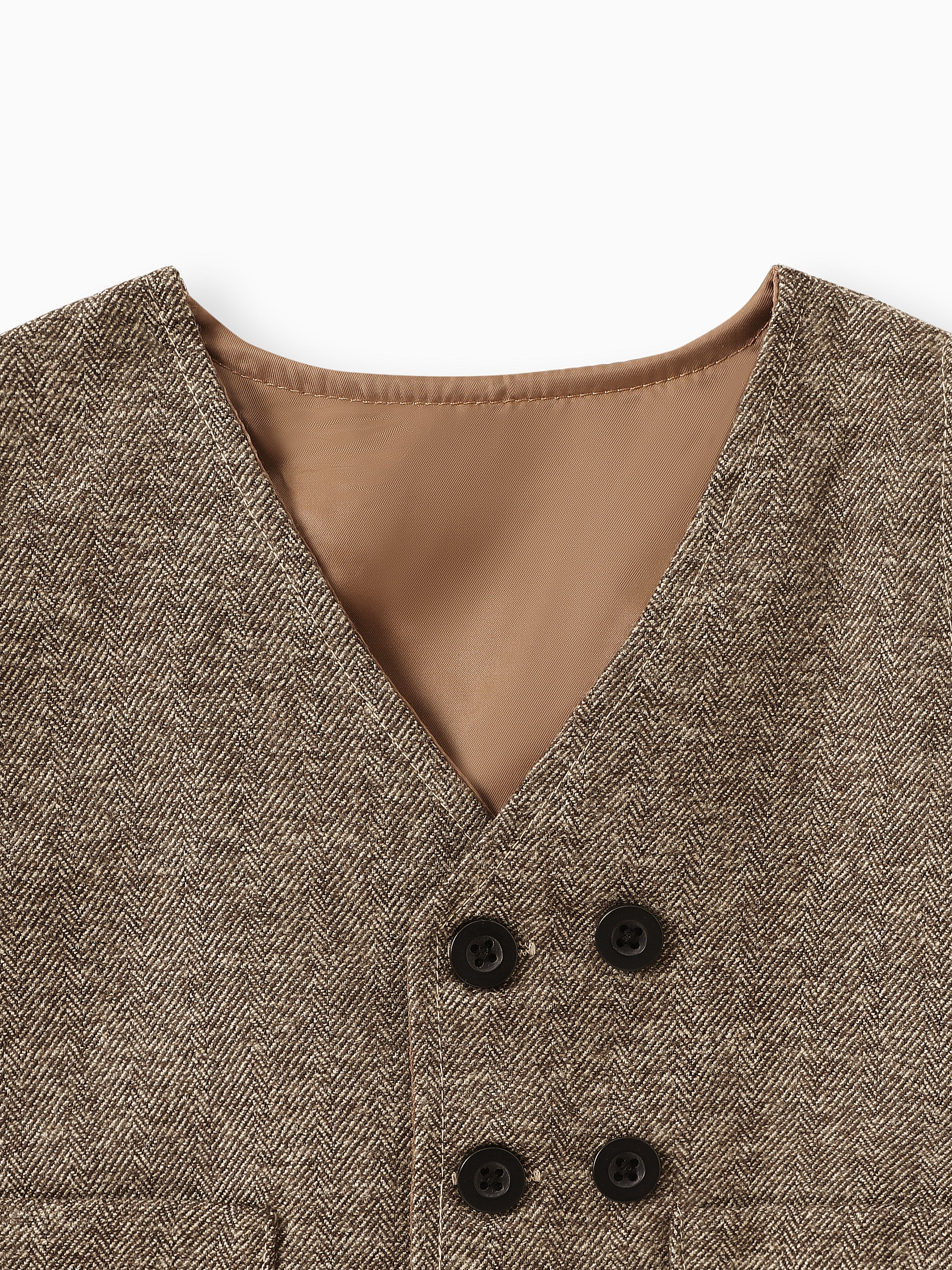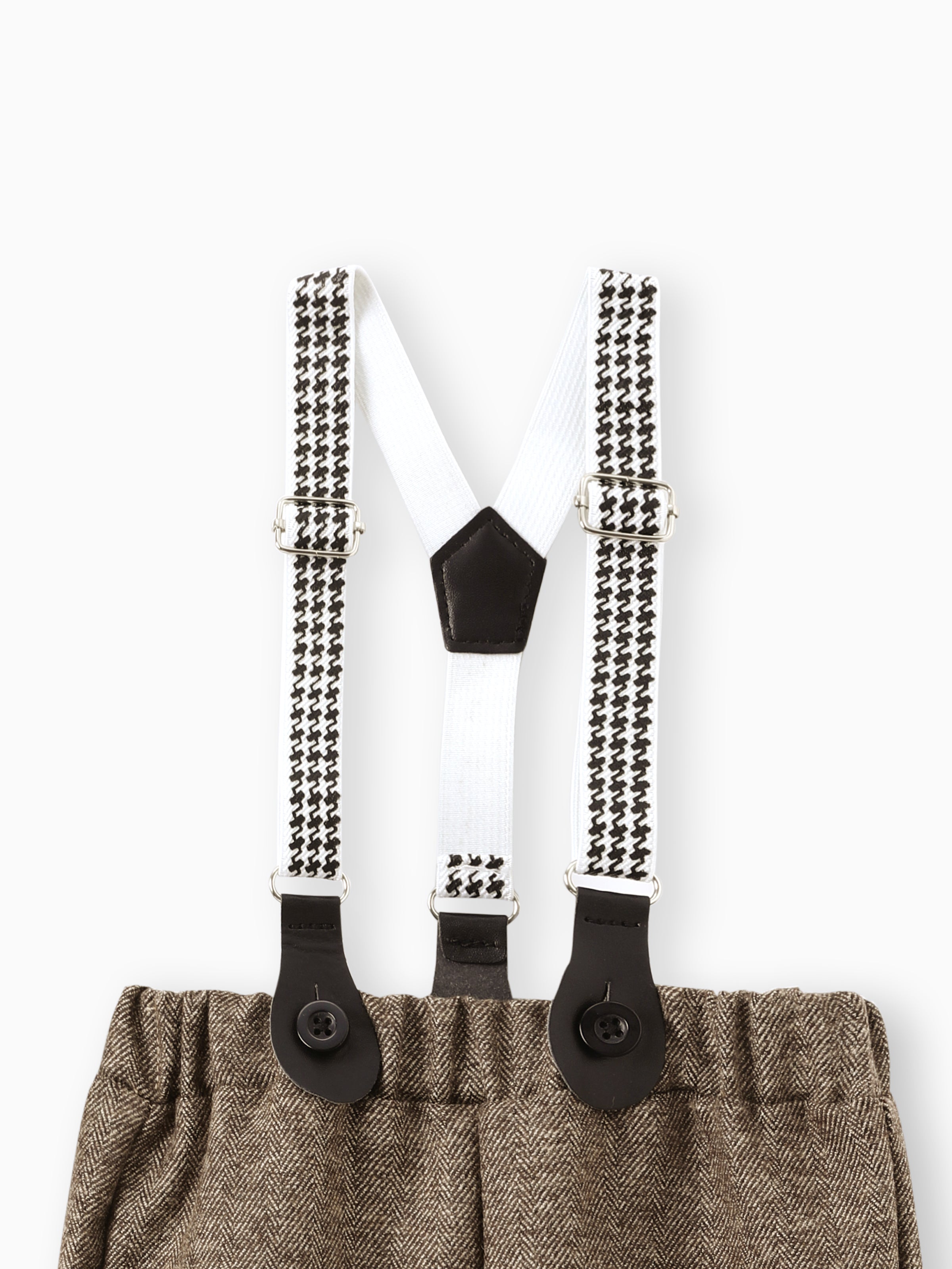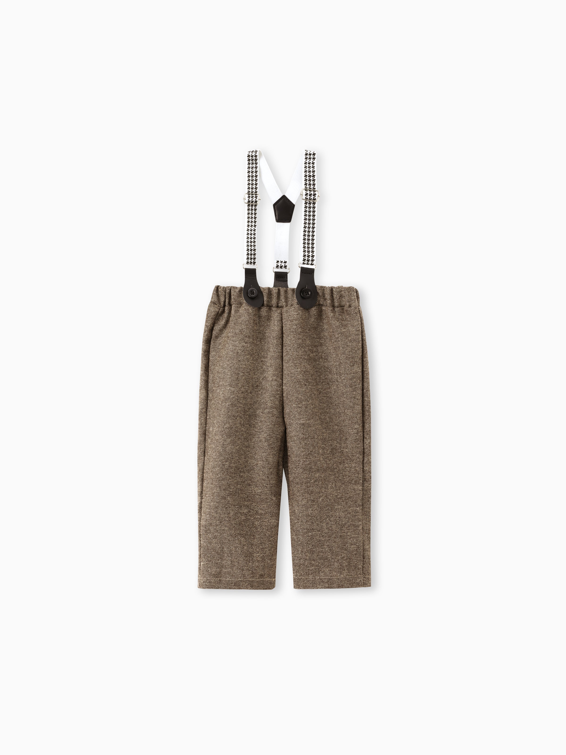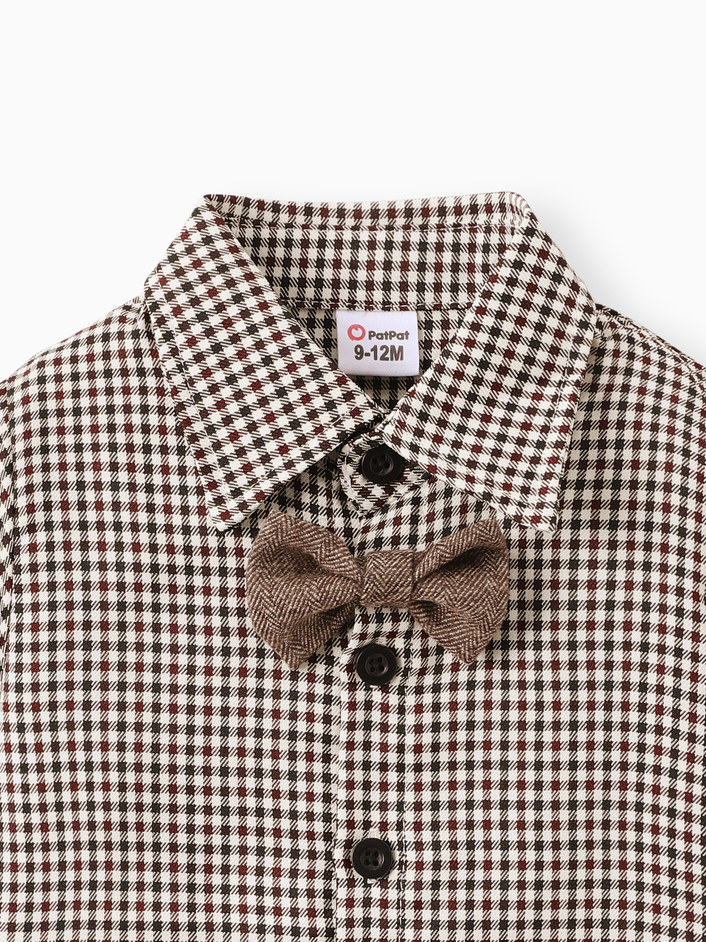 3PCS Baby Boy Elegant Grid/Houndstooth Shirt Collar Long Sleeve Set Brown