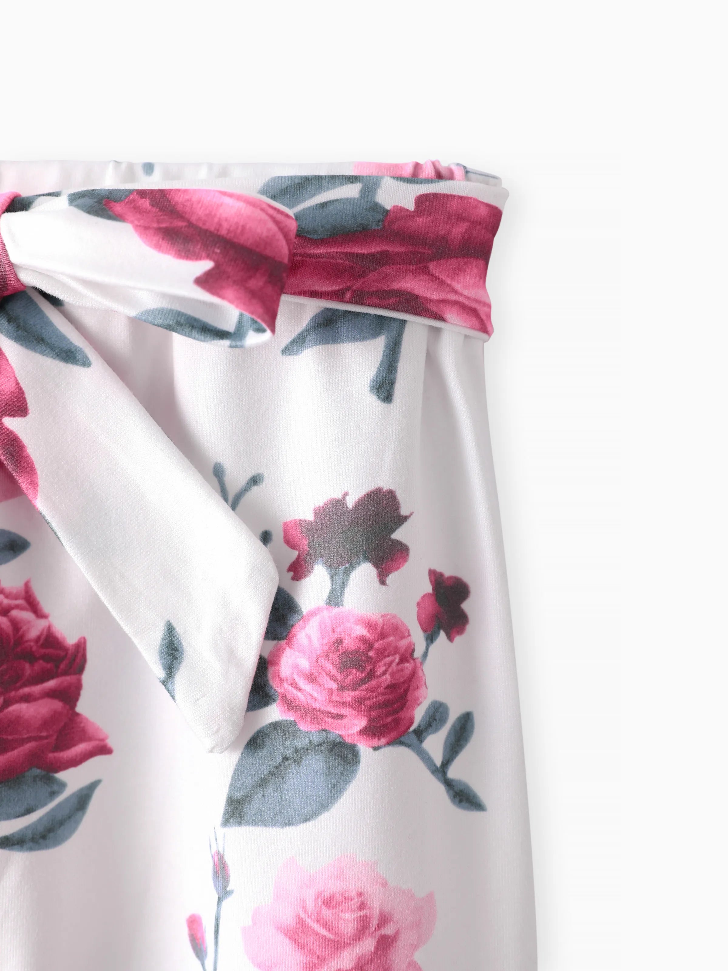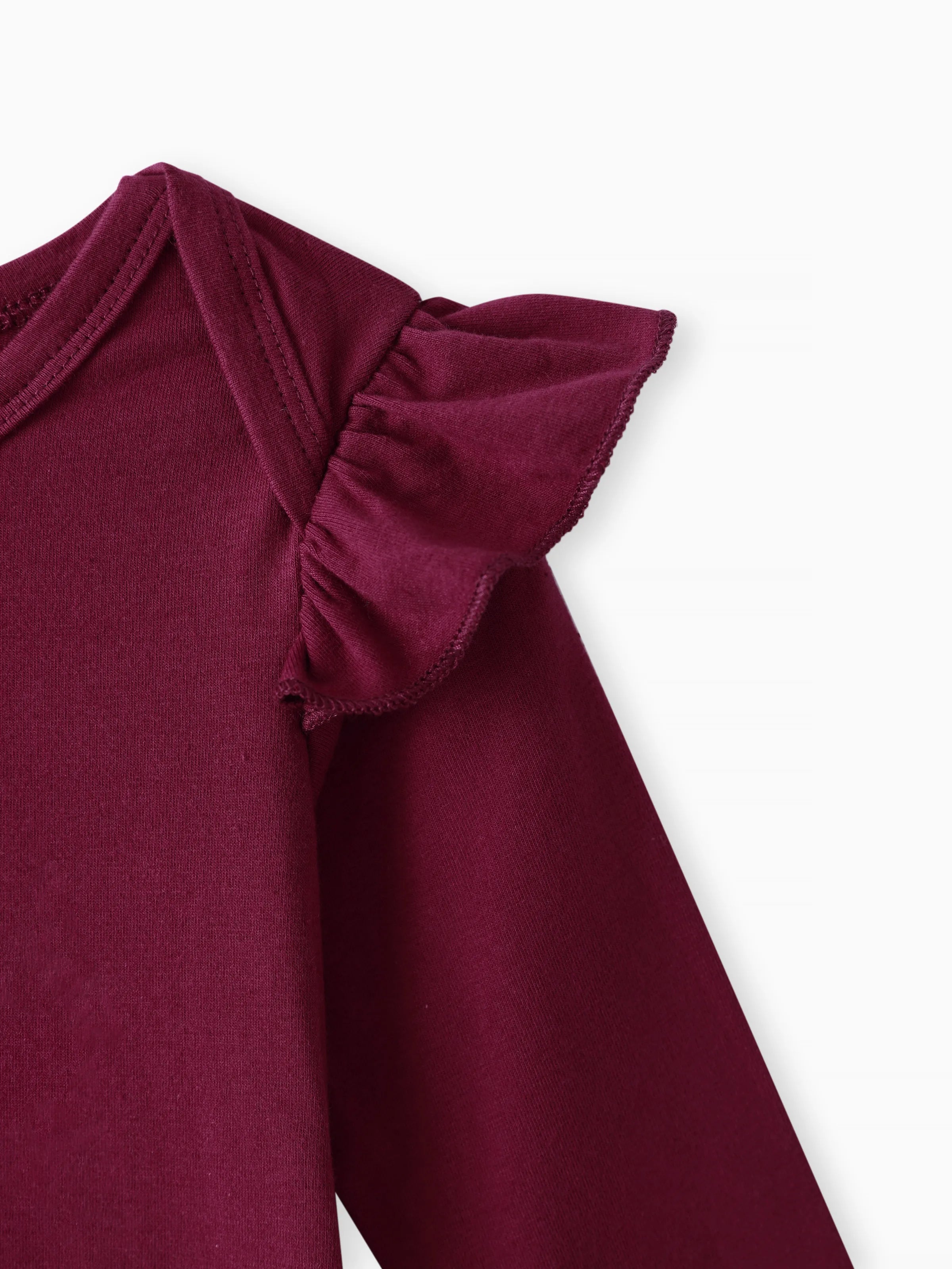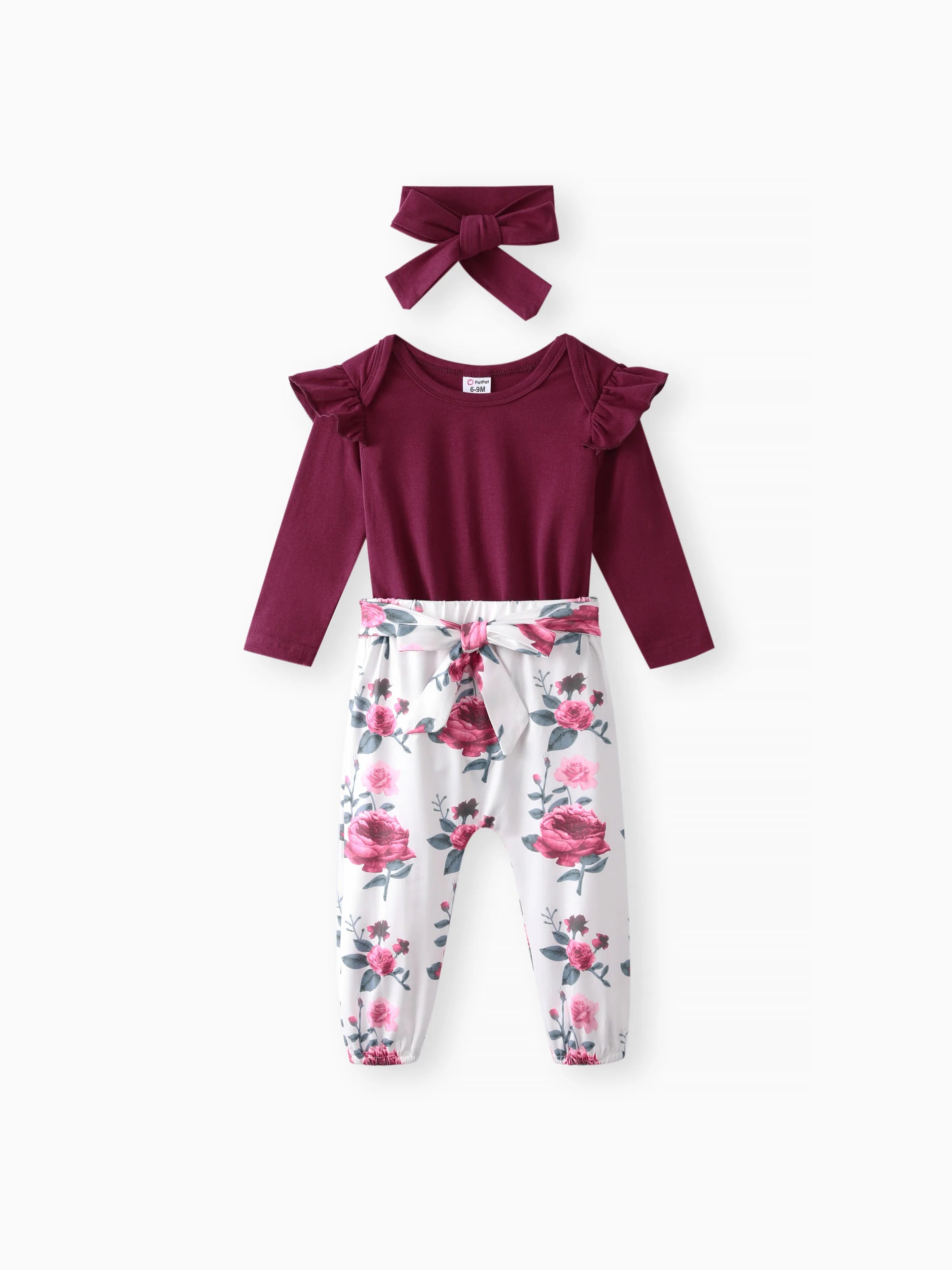 3pcs Baby Girl 95% Cotton Ruffle Long-sleeve Romper and Floral Print Pants with Headband Set Deep Magenta