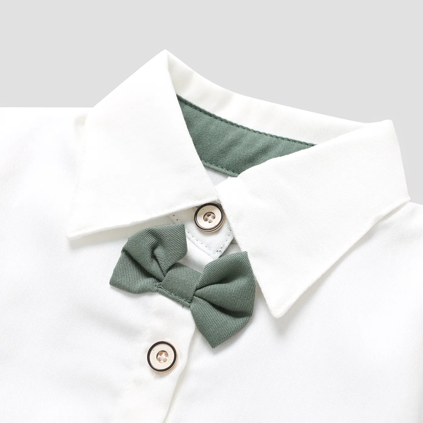 Baby Boy Party Gentle Bow Tie Shirt and Suspender Shorts Set White