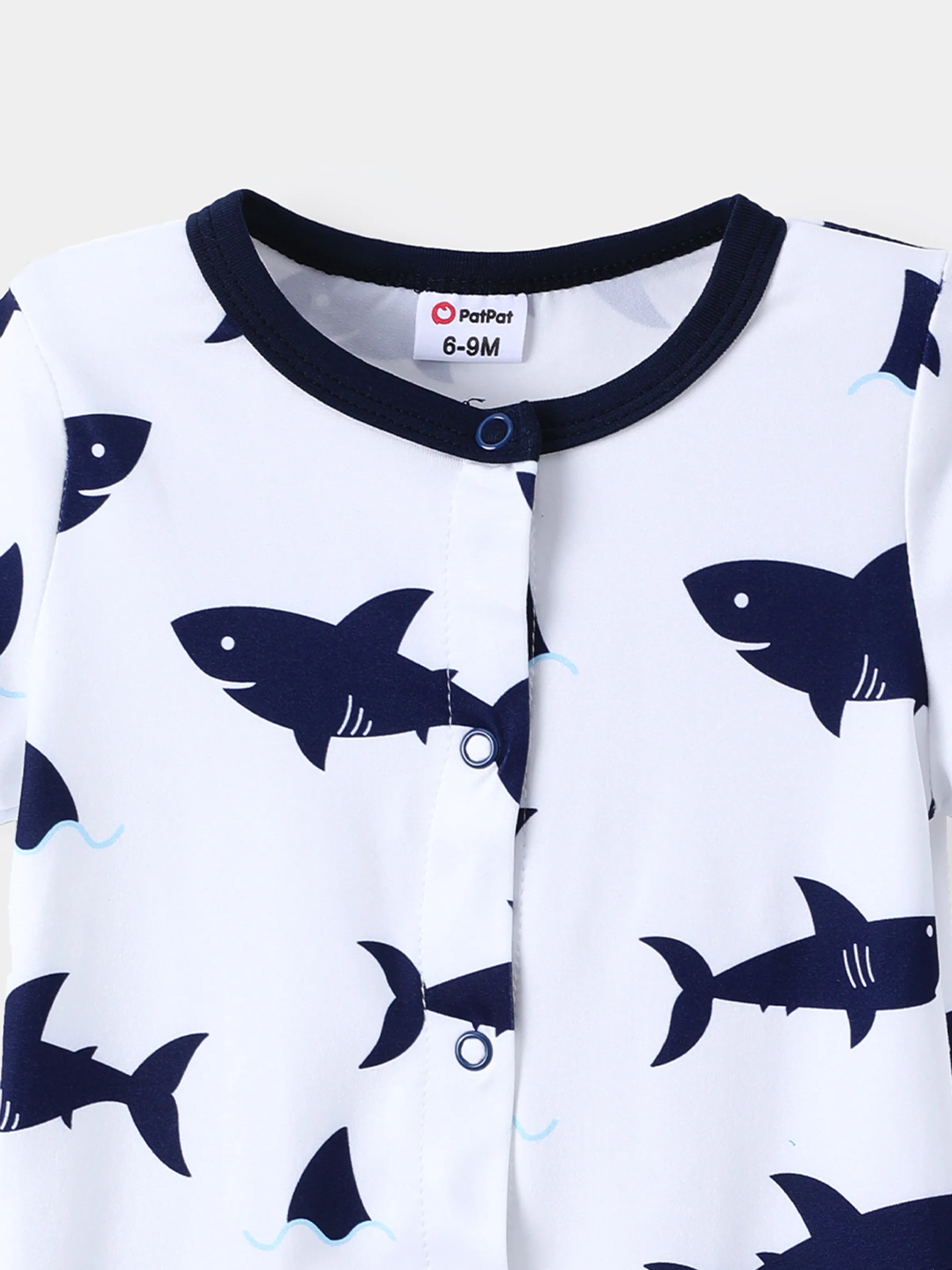 Baby Boy Print/Striped Short-sleeve Snap Romper Dark Blue+white