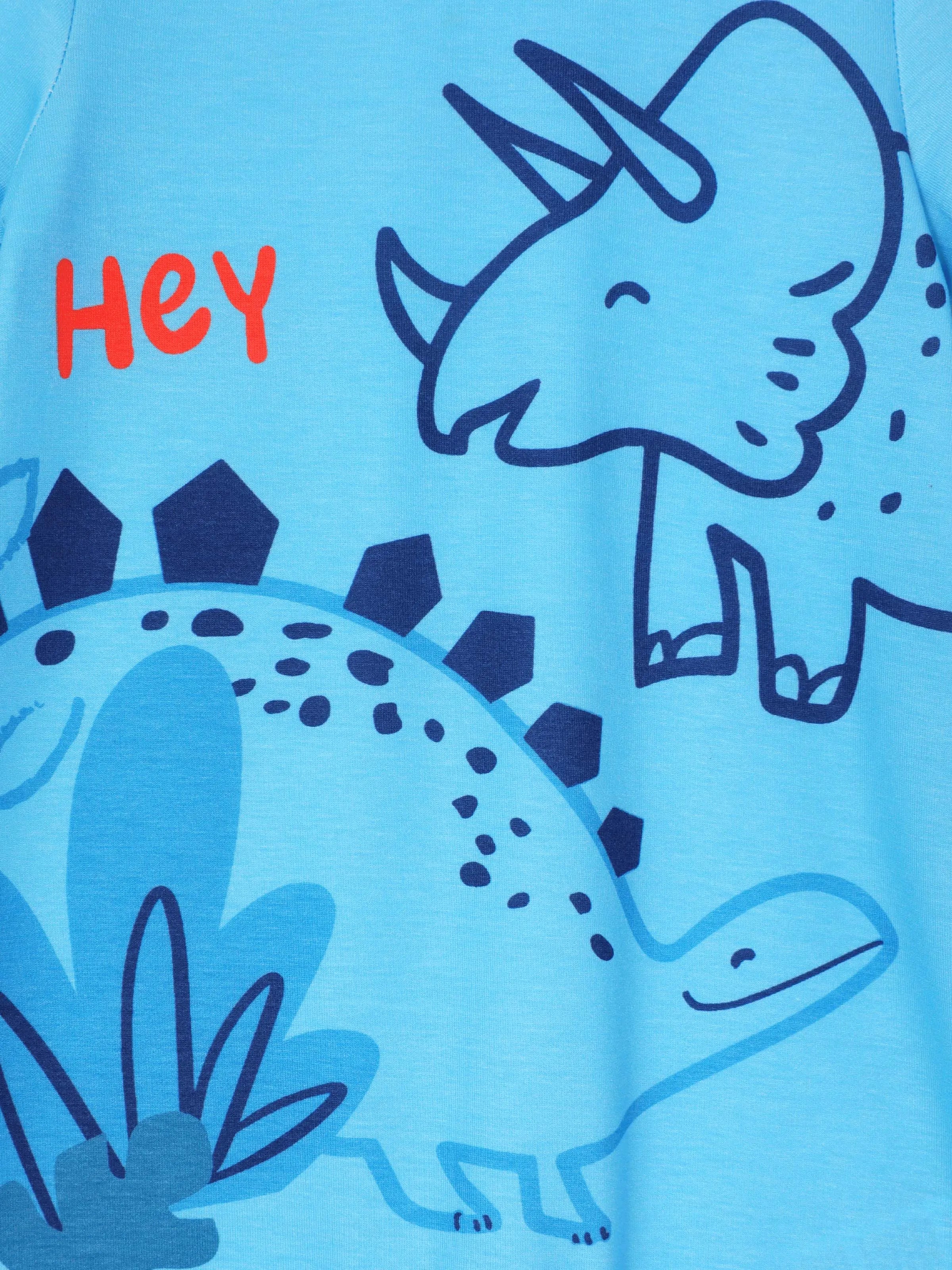 Baby Boy Stripe/Dinosaur Print Short-sleeve Romper Light Blue