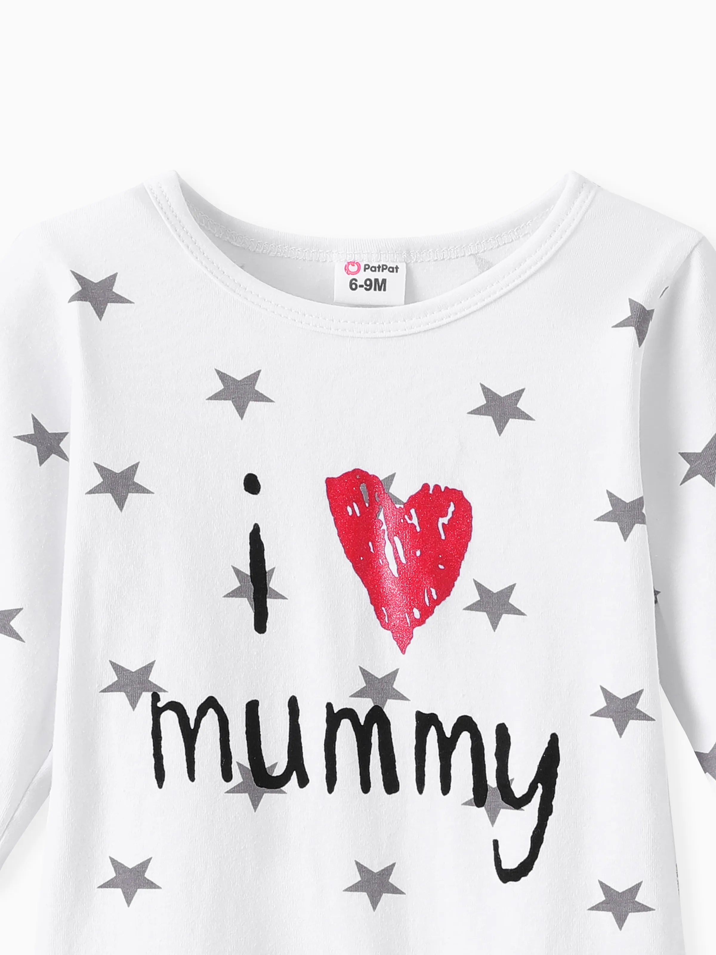 Baby Boy/Girl 95% Cotton Long-sleeve Love Heart Letter Print Stars/Striped Jumpsuit White