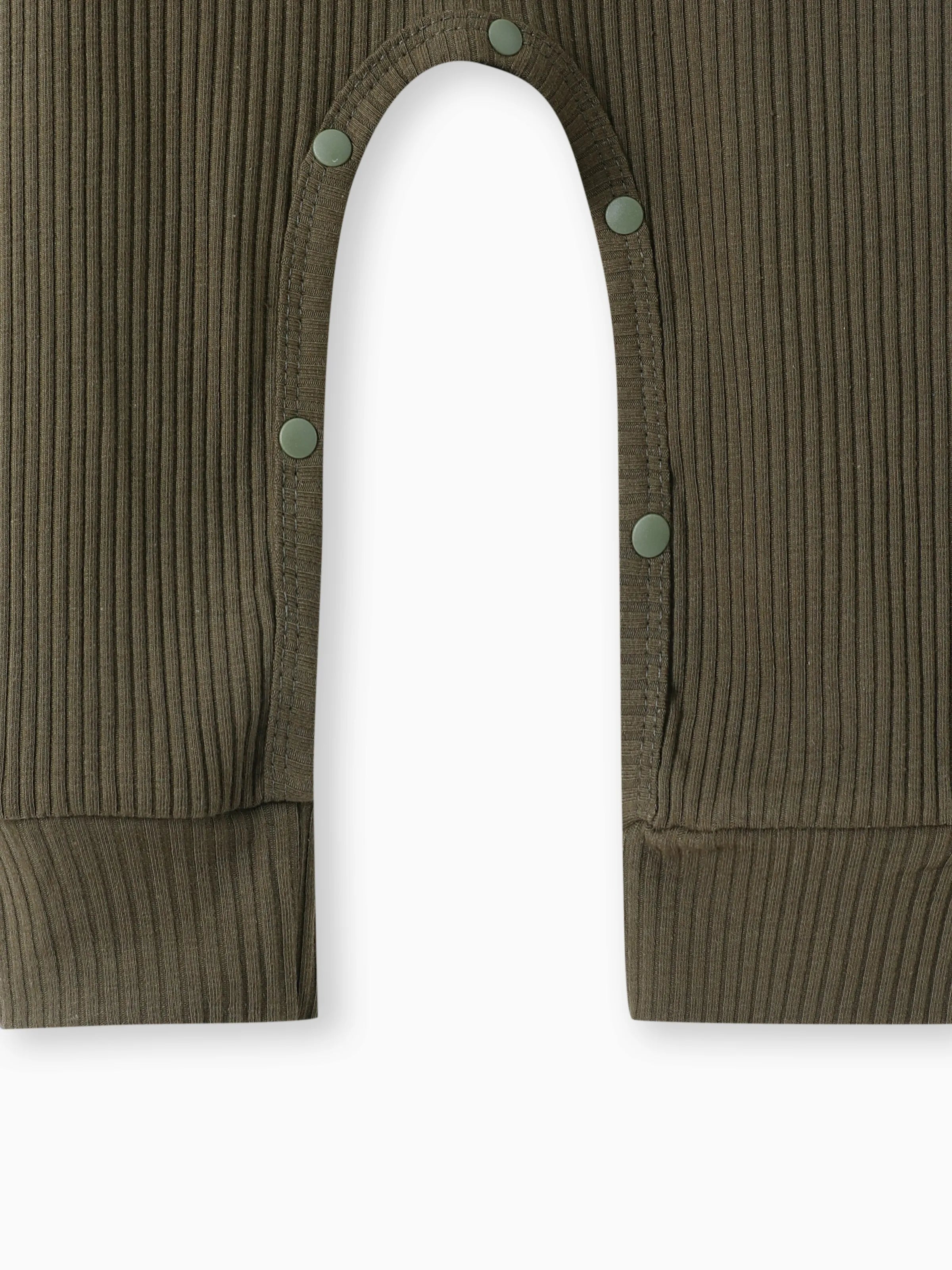 Baby Boy/Girl Cotton Ribbed Button Up Jumpsuit Army green