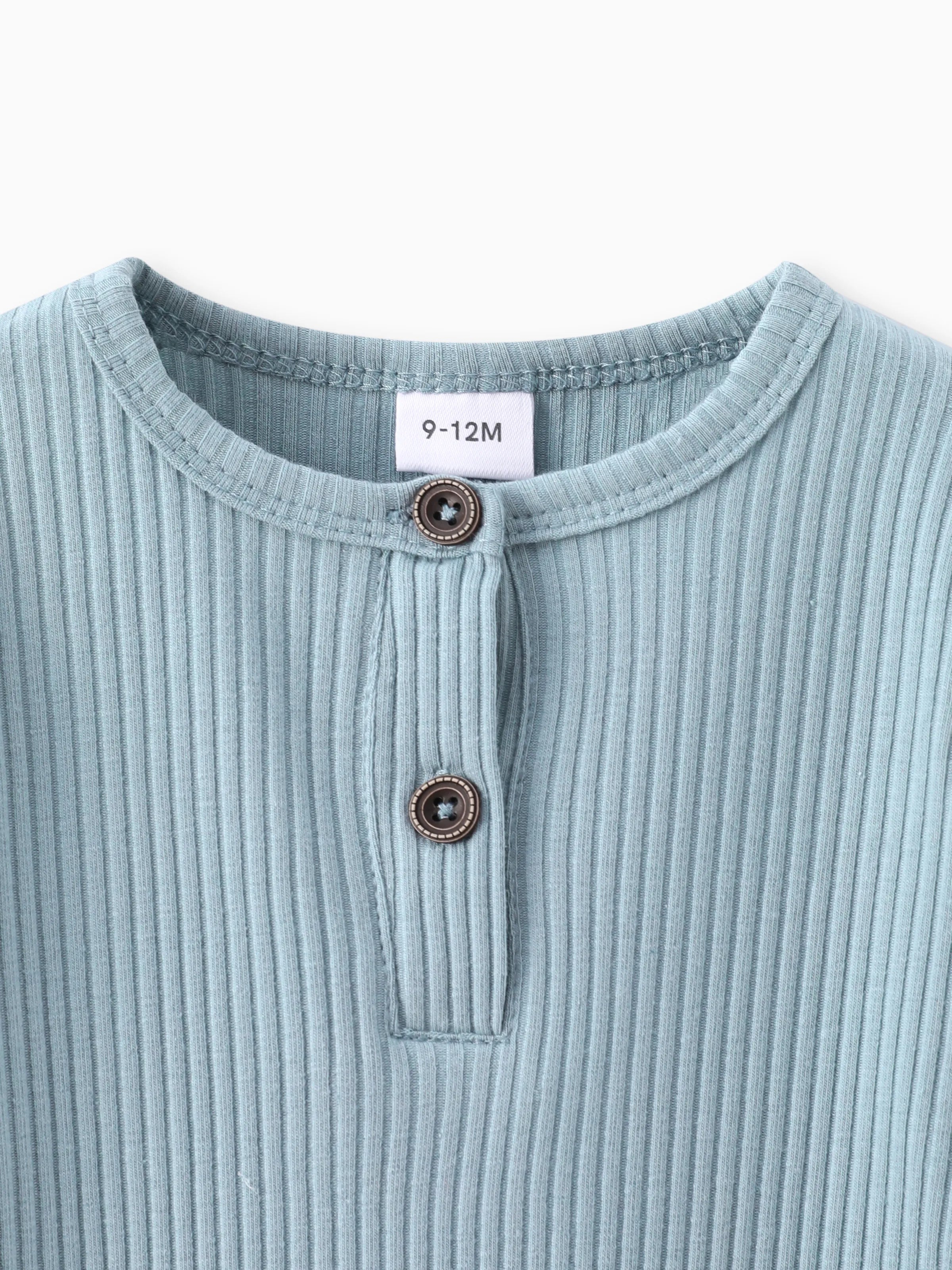 Baby Boy/Girl Cotton Ribbed Button Up Jumpsuit Light Blue