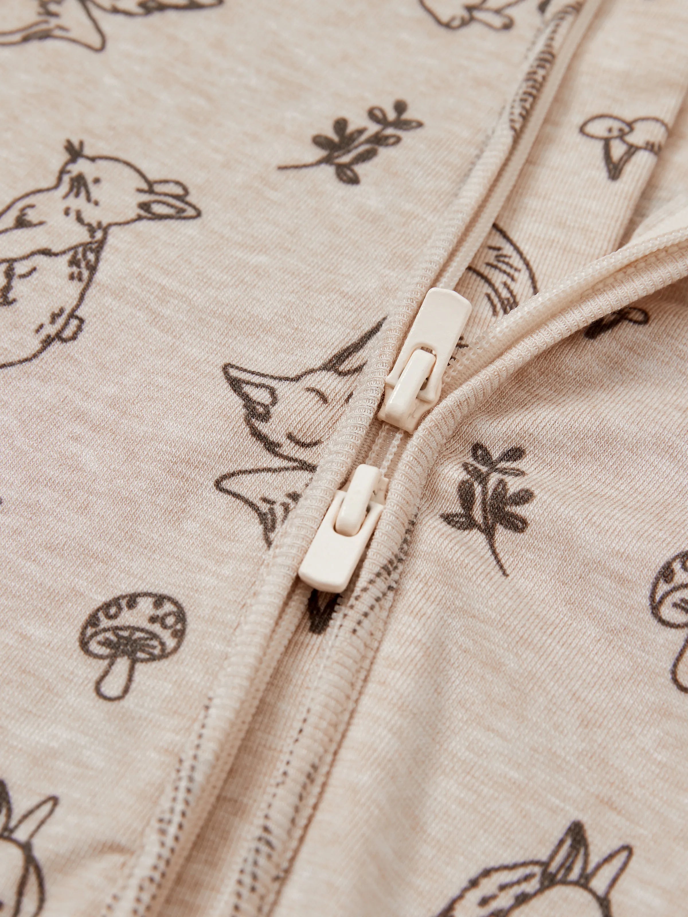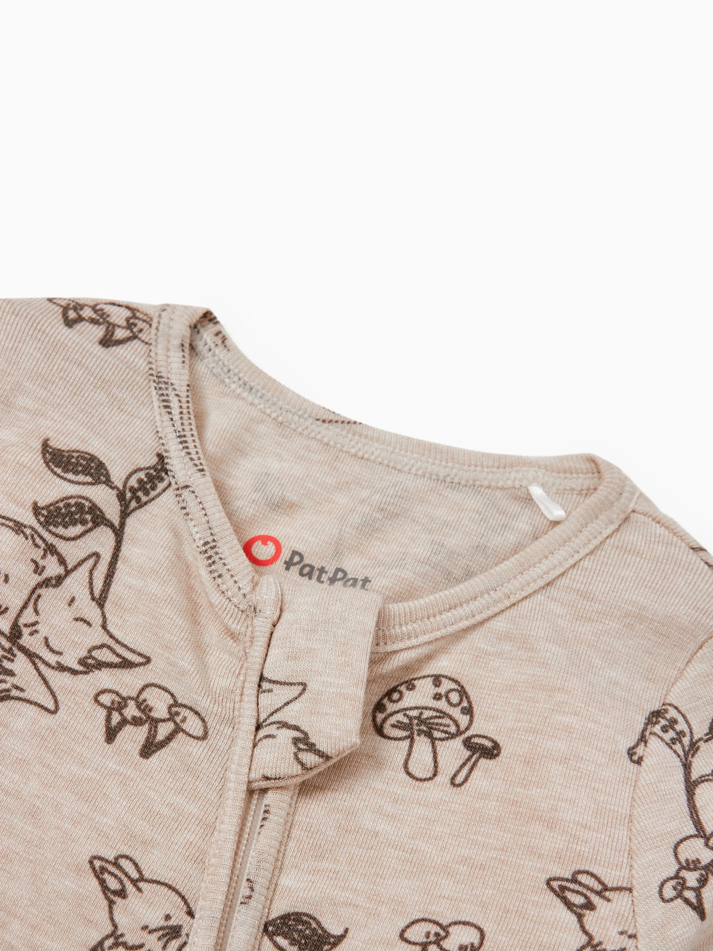 Baby Boy/Girl Plant Print Zip-up Snug-Fitting Wool Pajamas Apricot