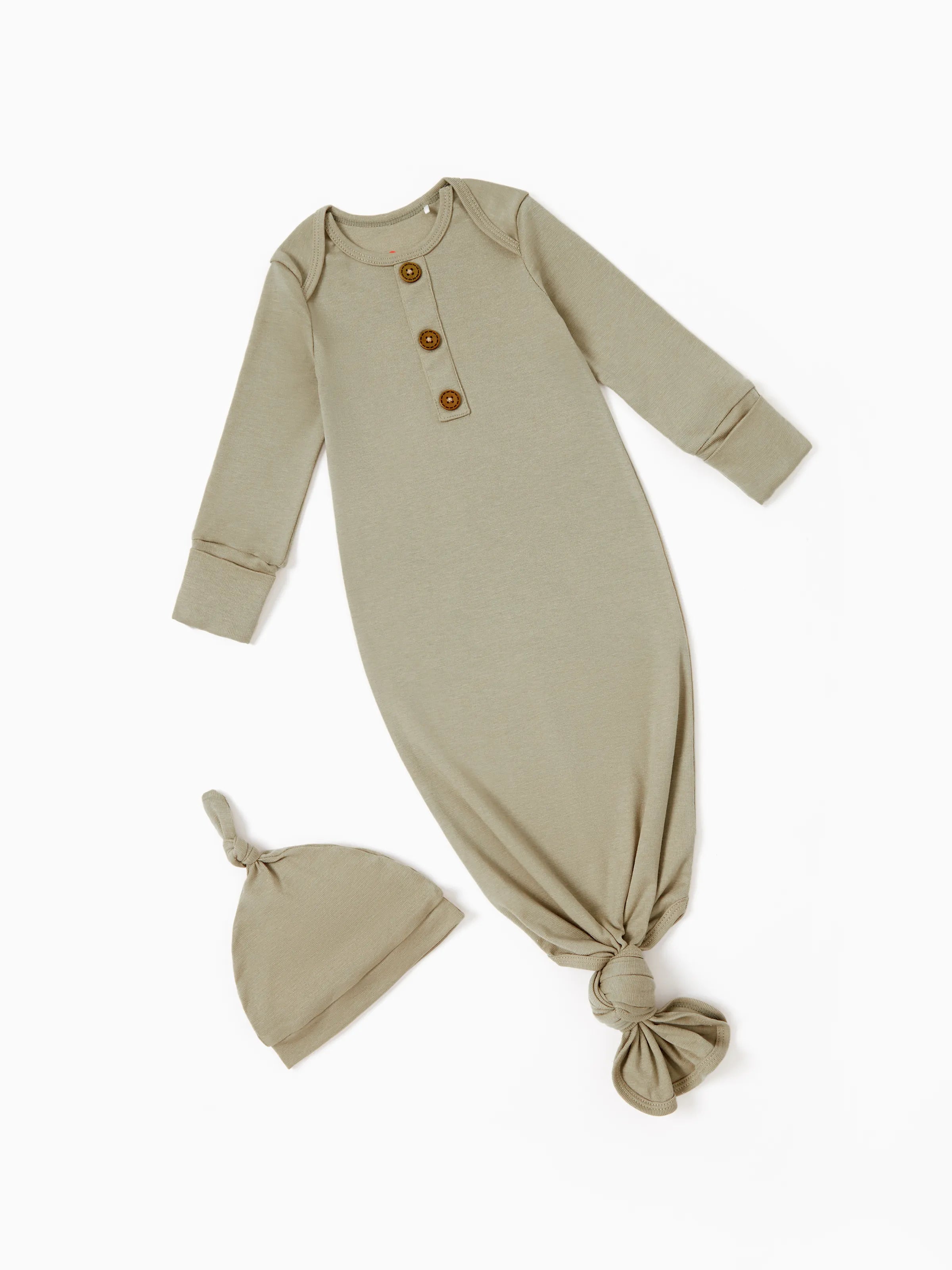 Baby Boy/Girl Solid Color Baby Sleeping Bag Infant Gown with Hat Light Green