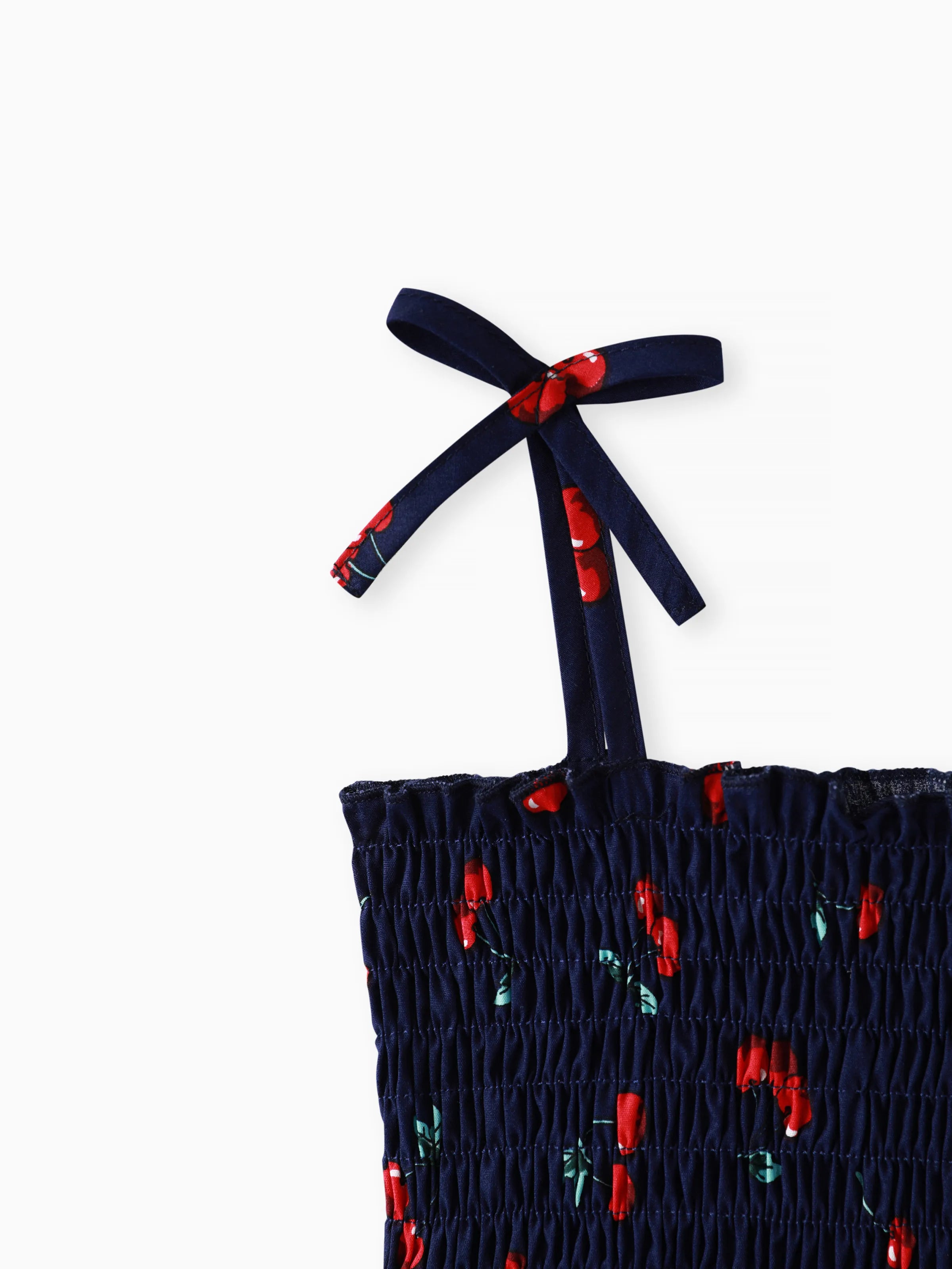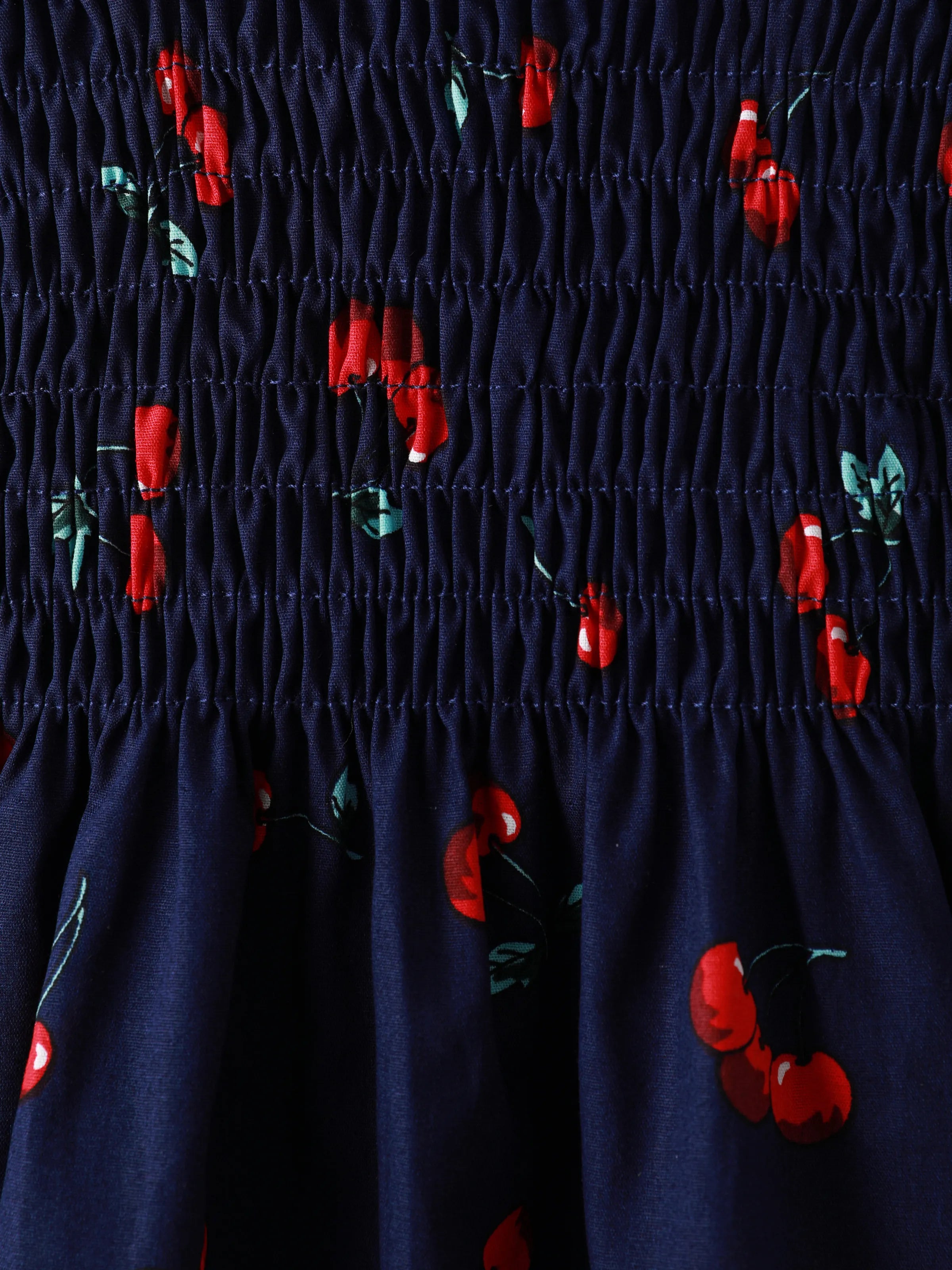 Baby Girl 100% Cotton Allover Cherry Print Shirred Strappy Dress Dark Blue