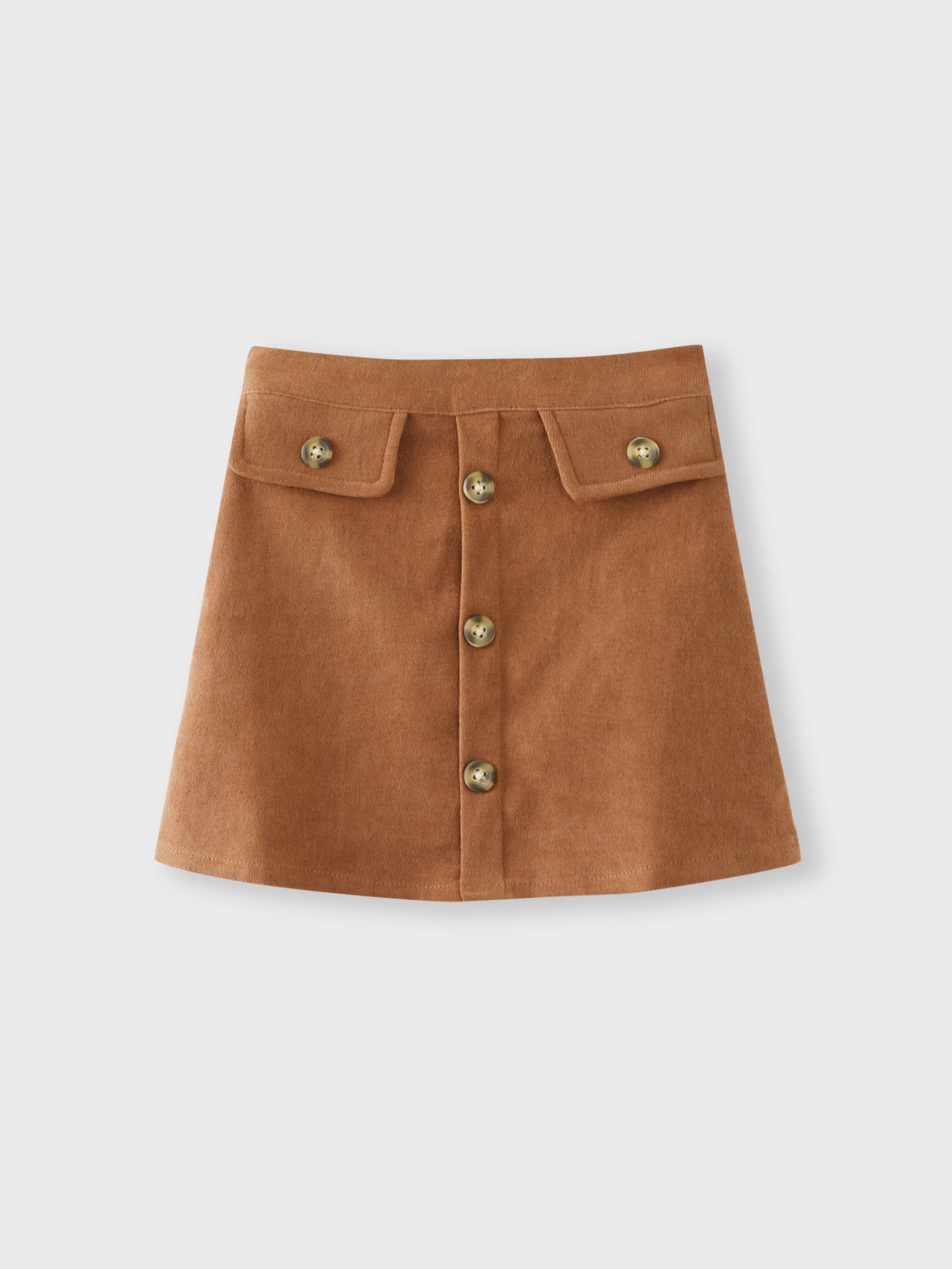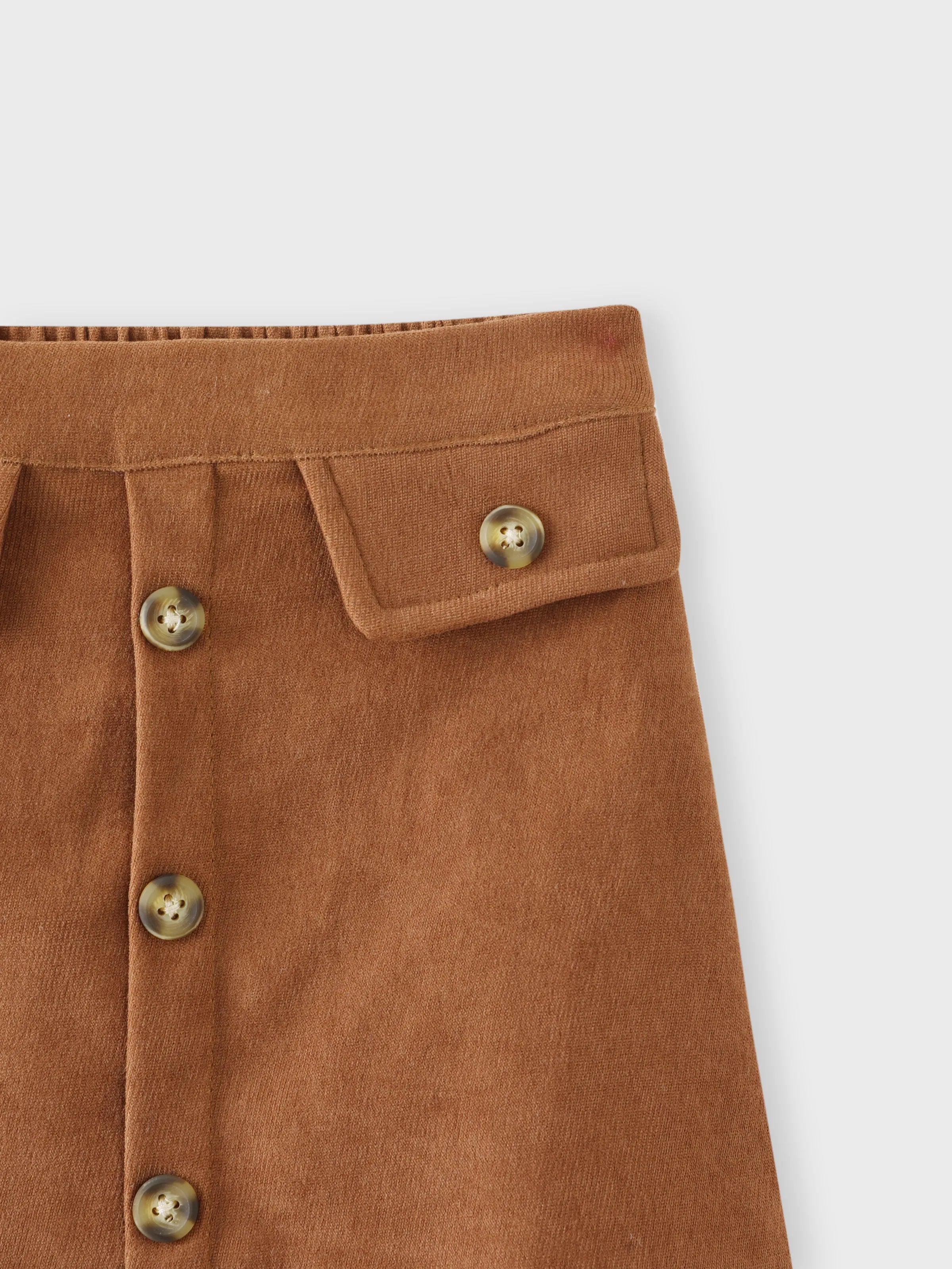 Baby Girl Outfits 3-piece Ruffled Cable Knit Textured White Sweater, Button Design Brown Skirt and Headband Set Brown