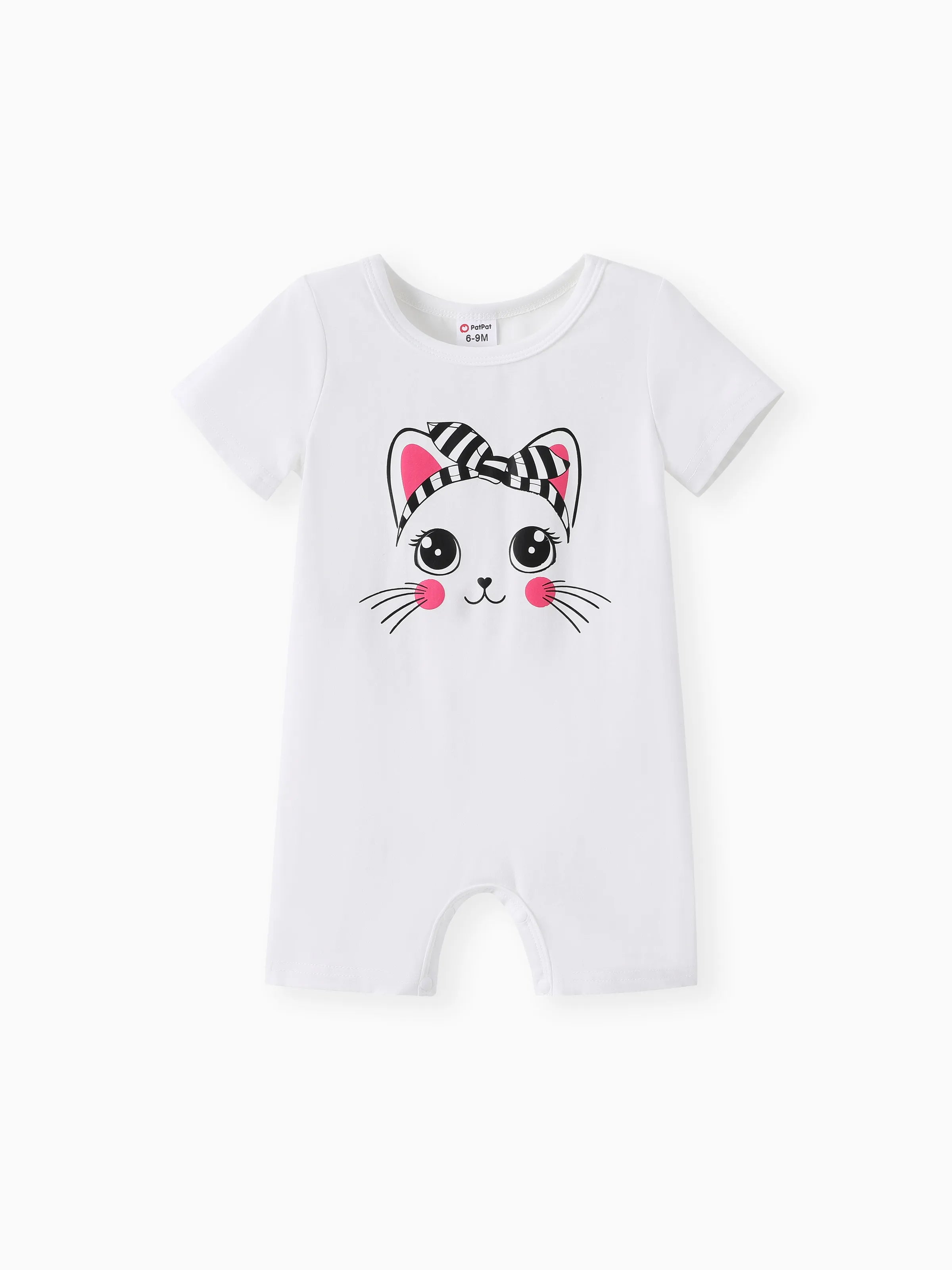 Baby Girl Rabbit Print Short-sleeve Romper White