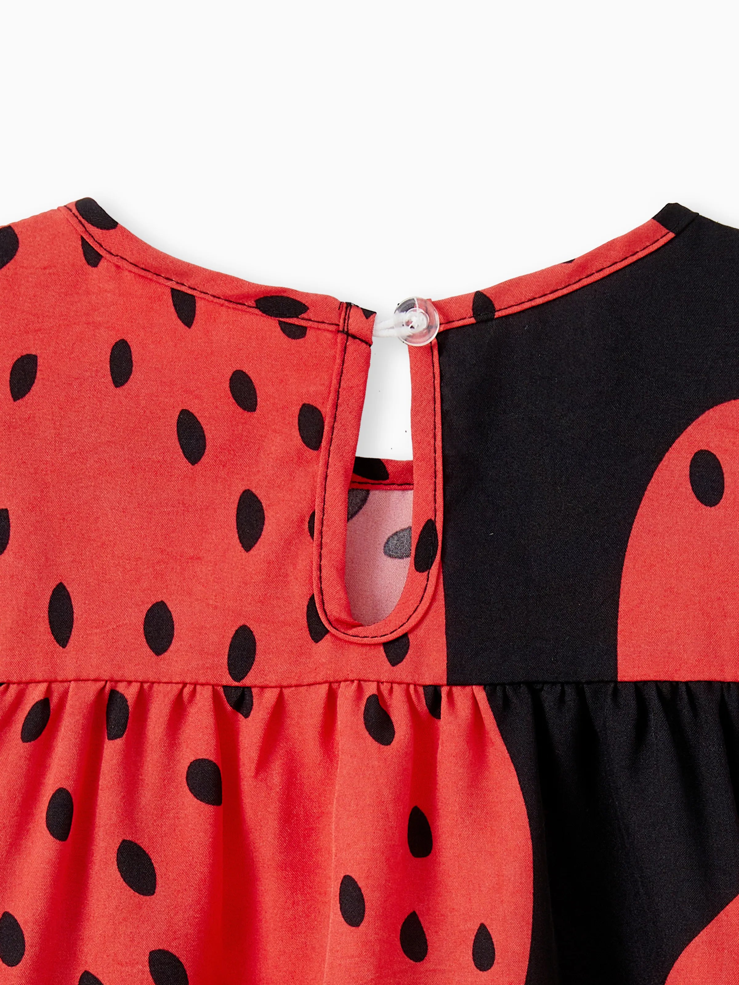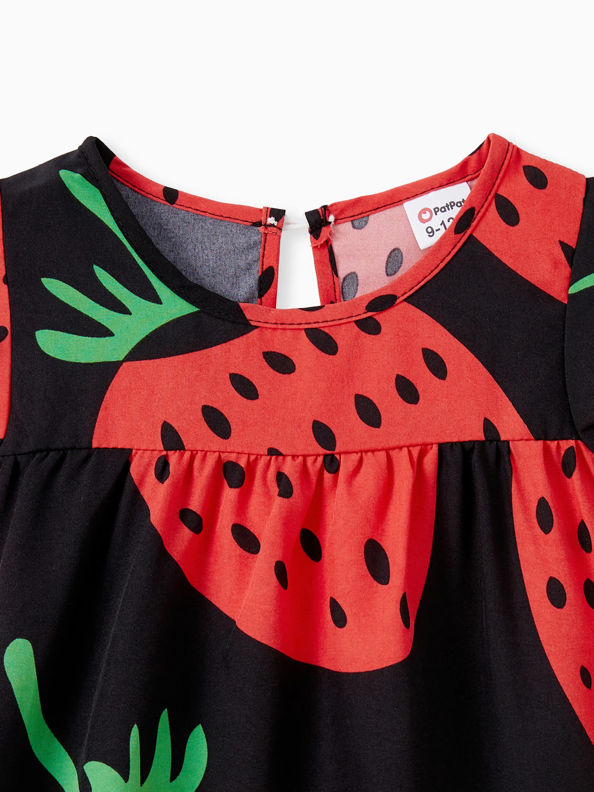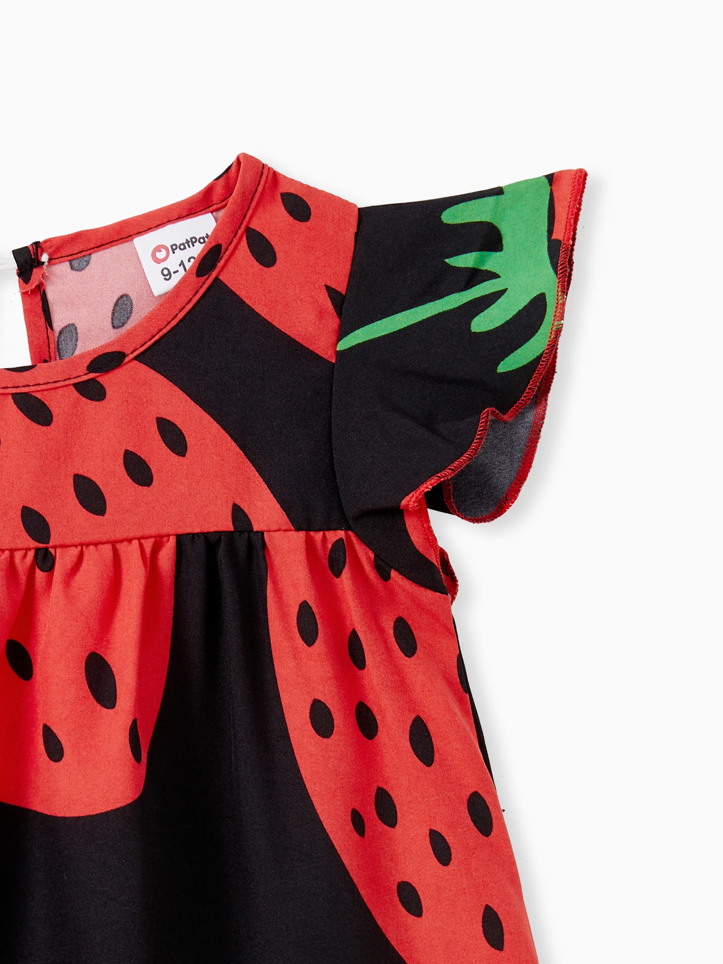 Baby Girl Strawberry Print Flutter-sleeve Dress Red