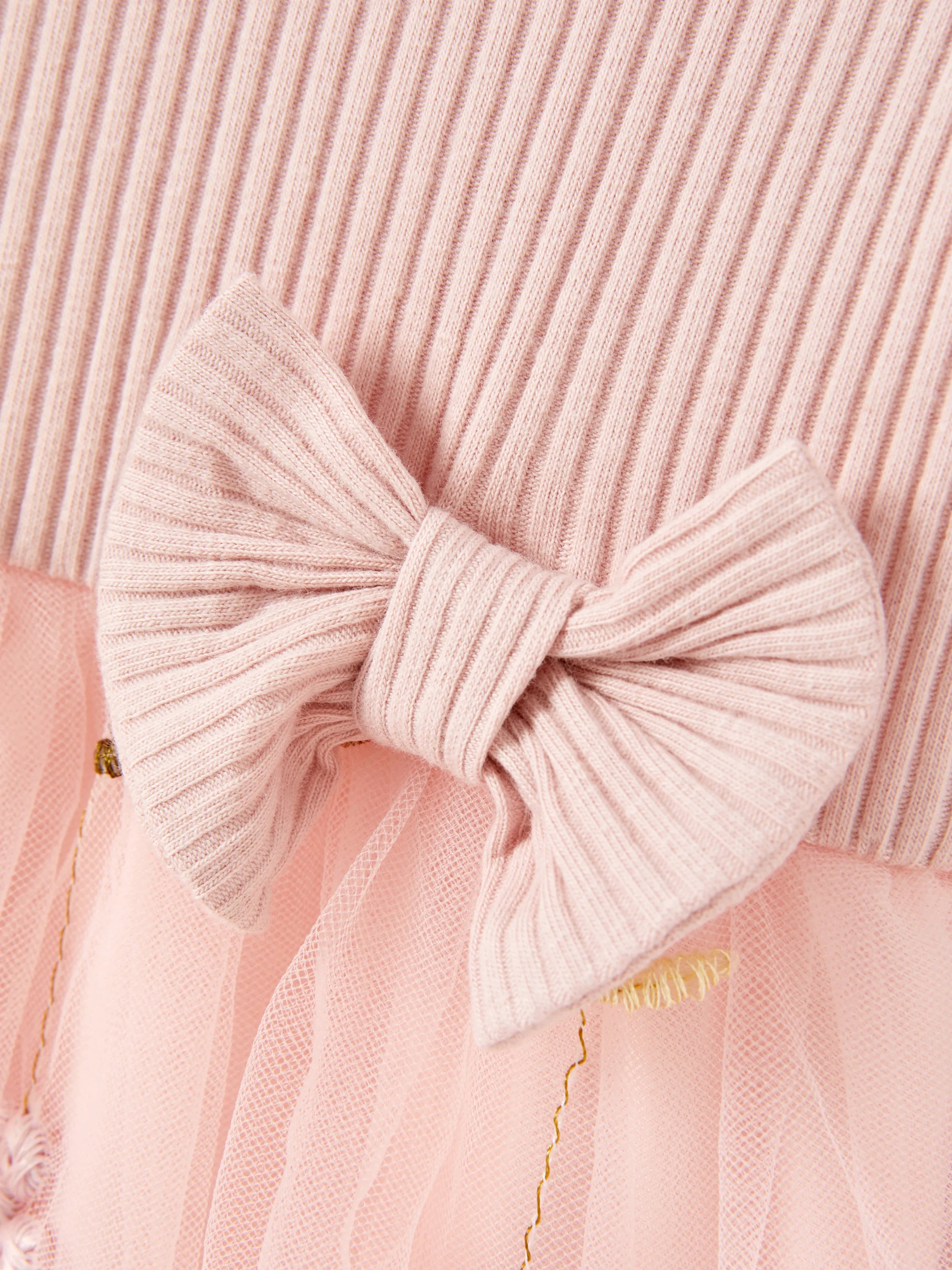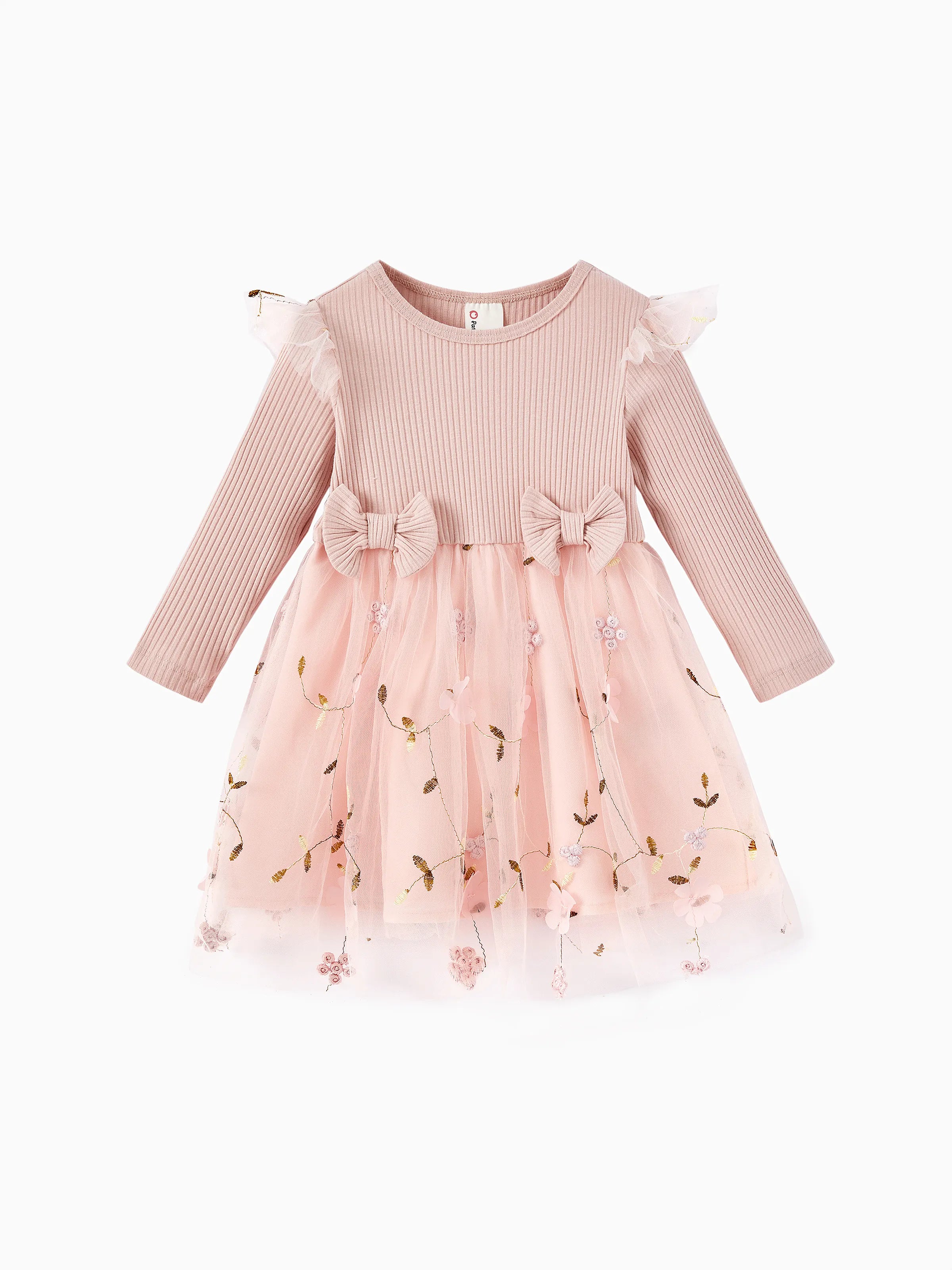 Baby Girl Sweet 3D Flower Mesh Dress Light Pink