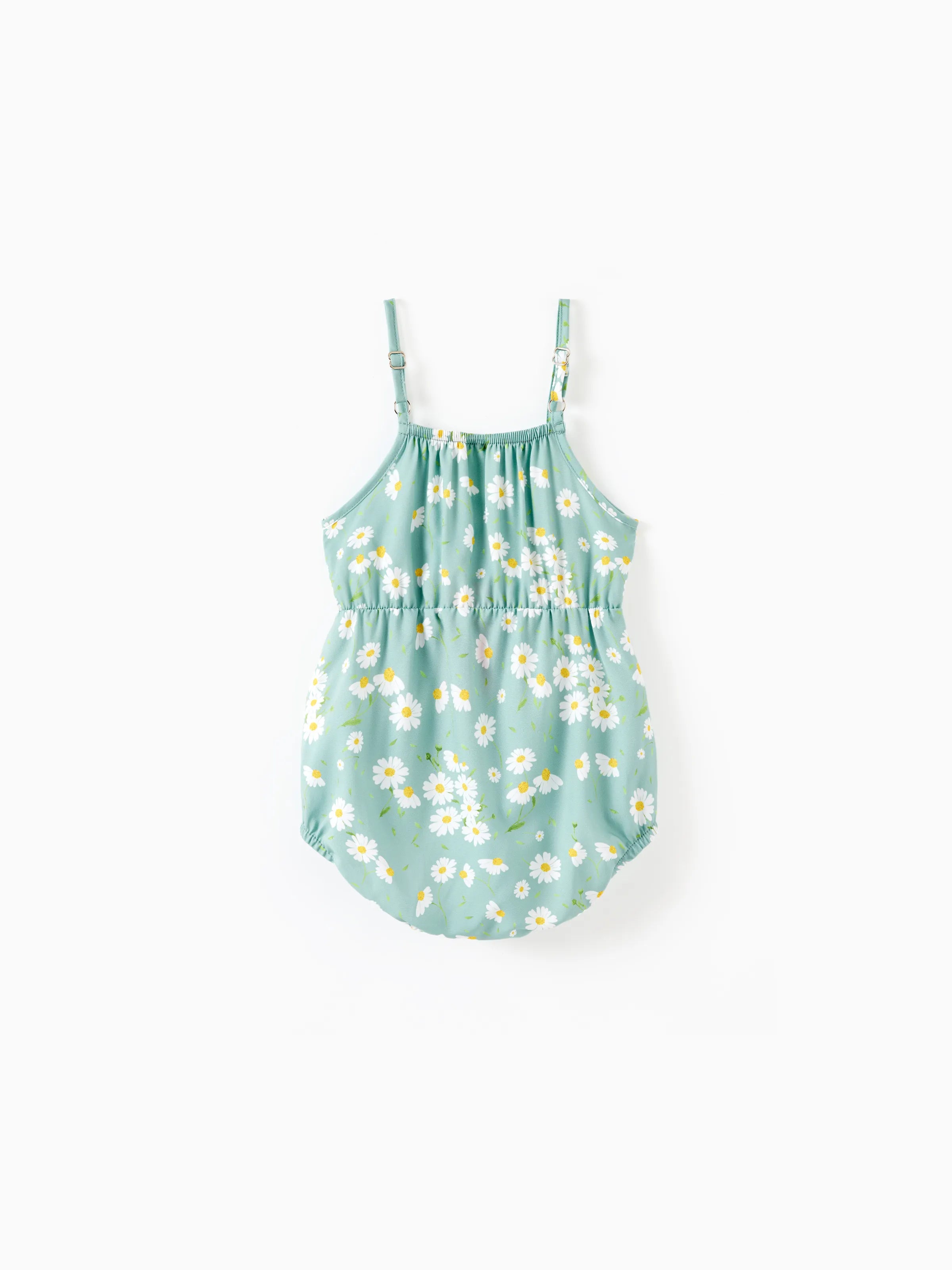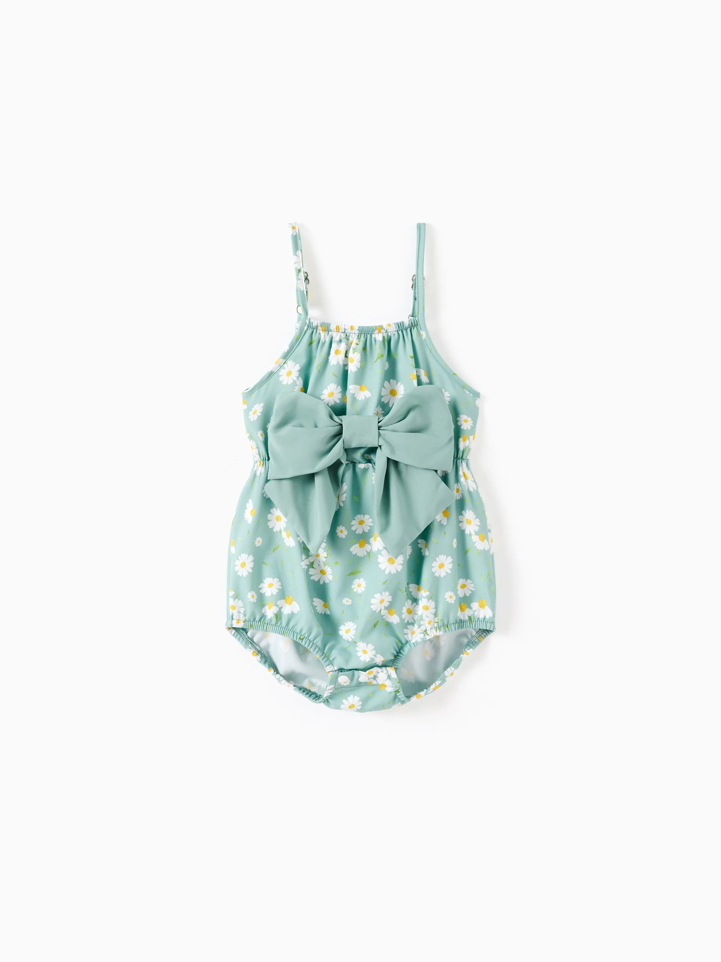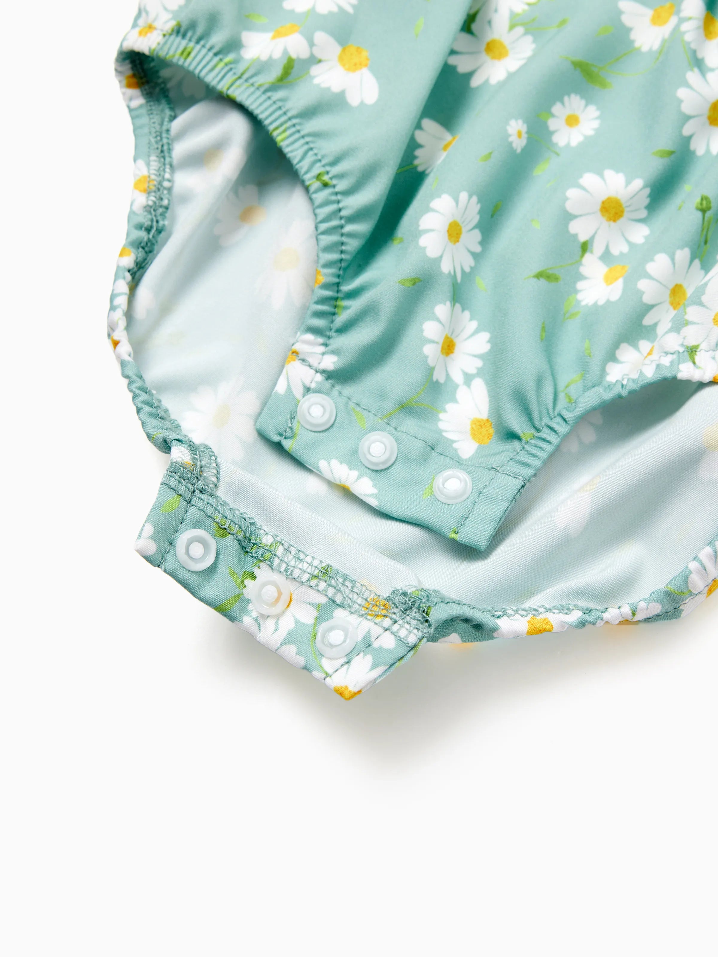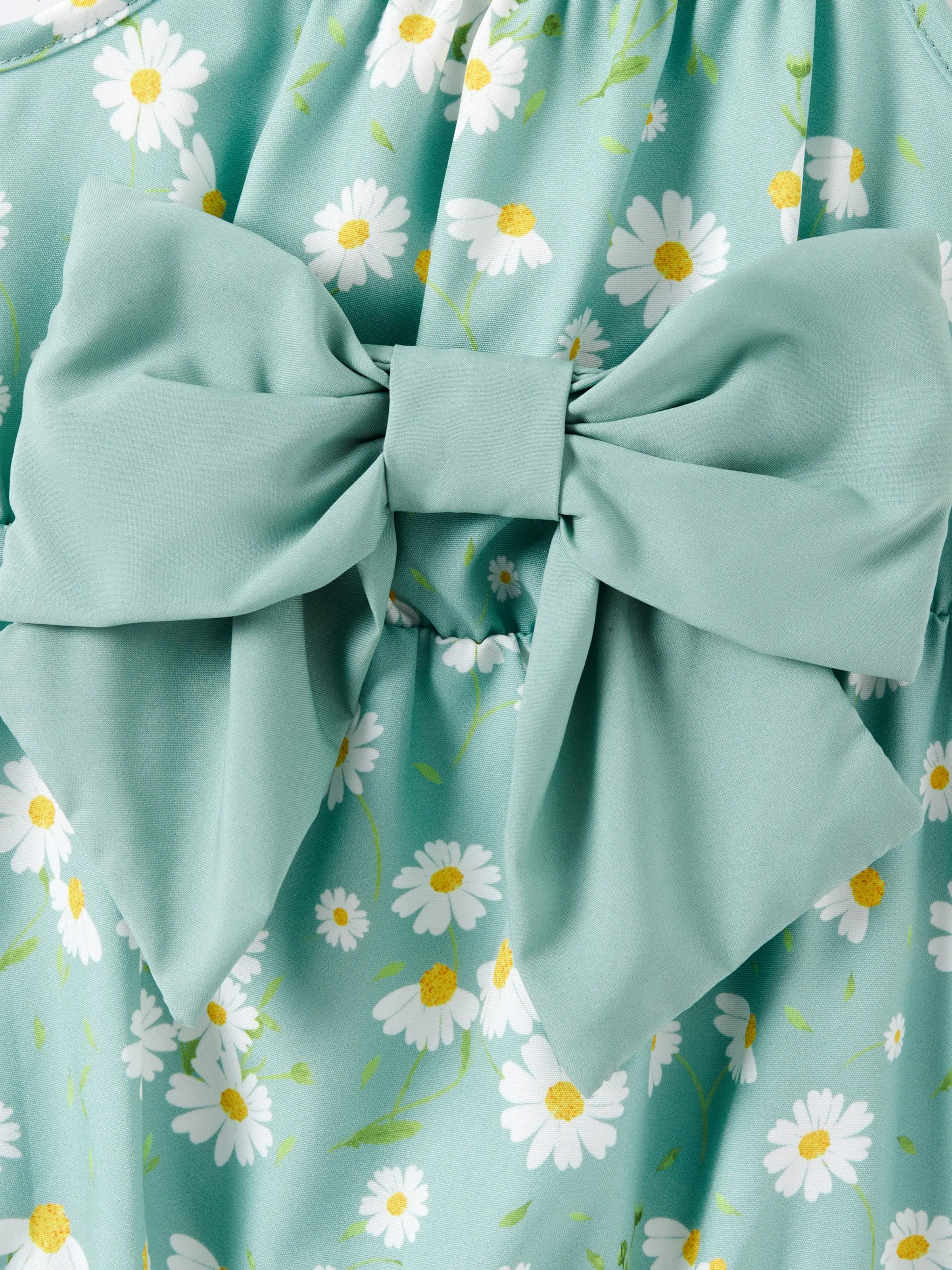 Baby Girl Sweet Floral Print Bowknot Romper Light Green