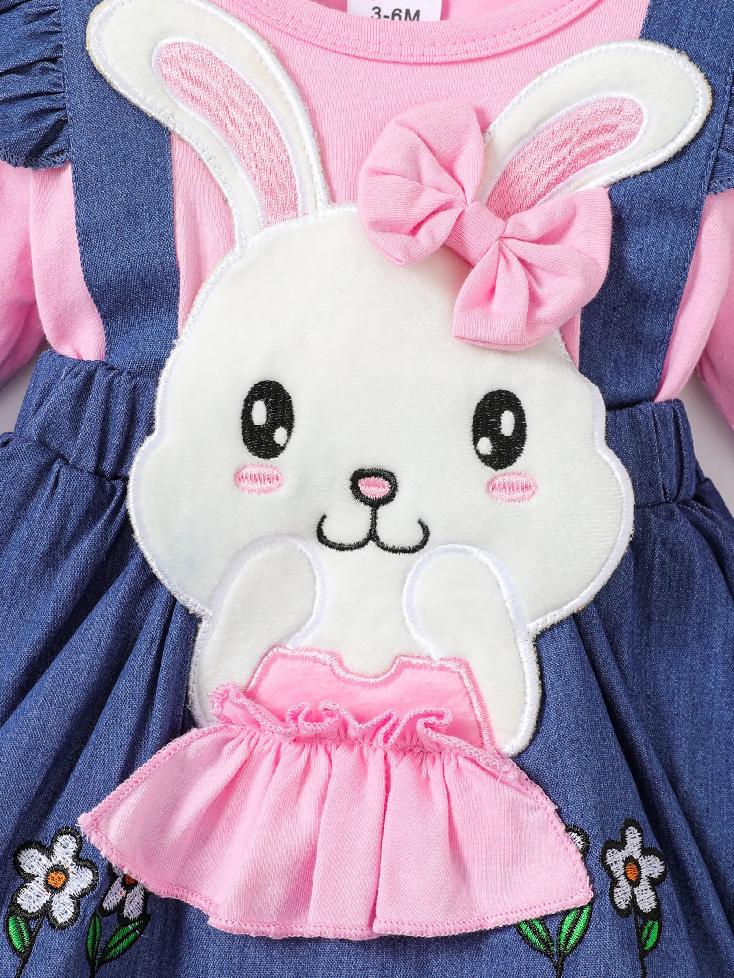 Baby Girls Clothes Bear Style Embroidered Romper with Headband Blue