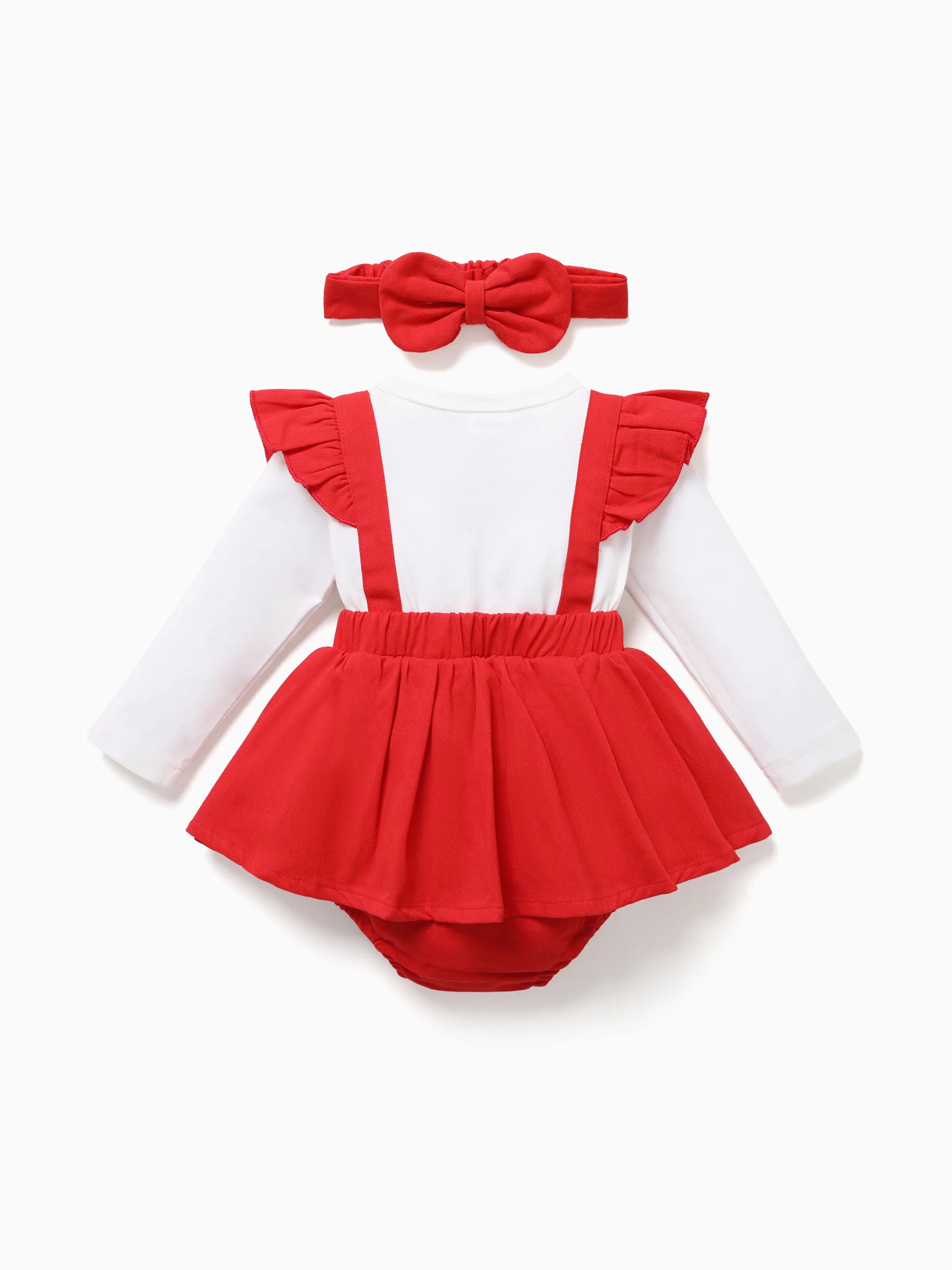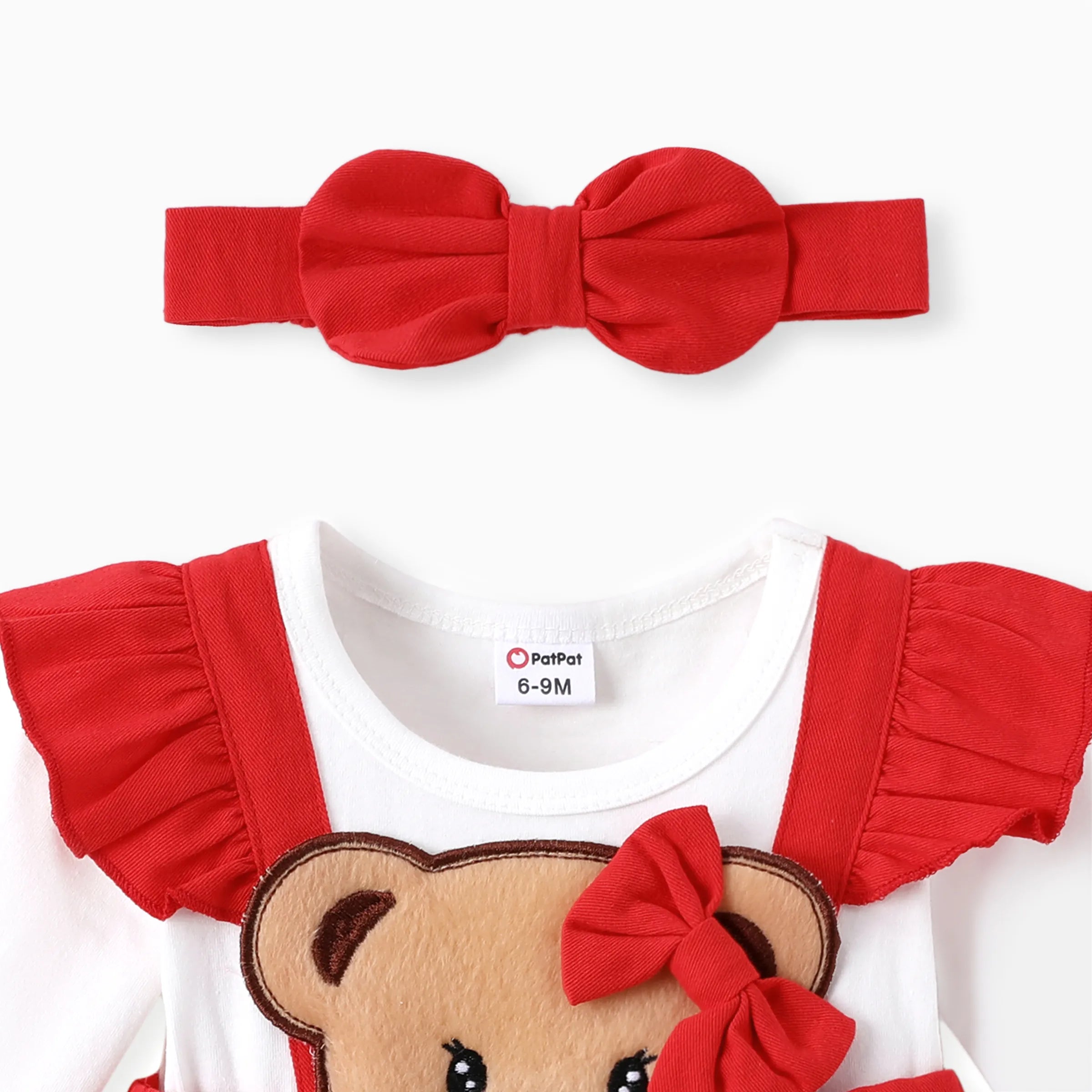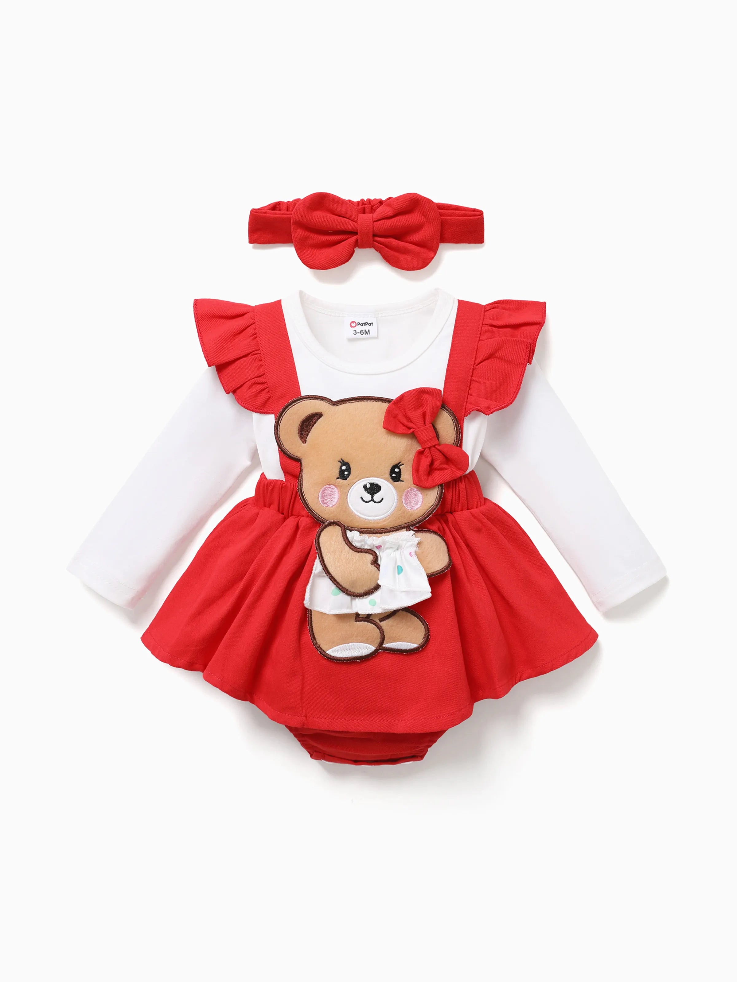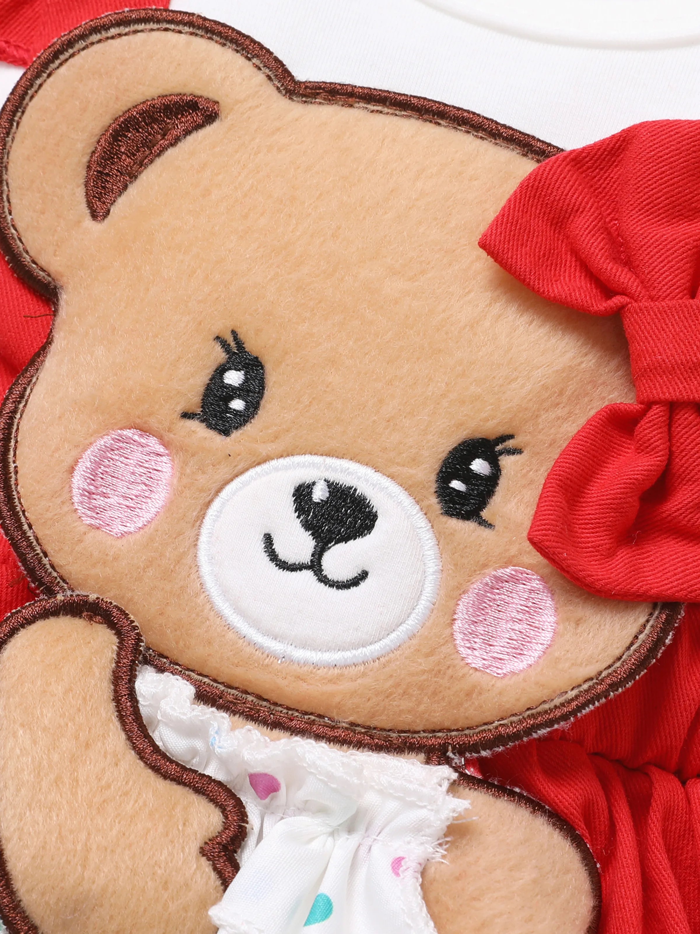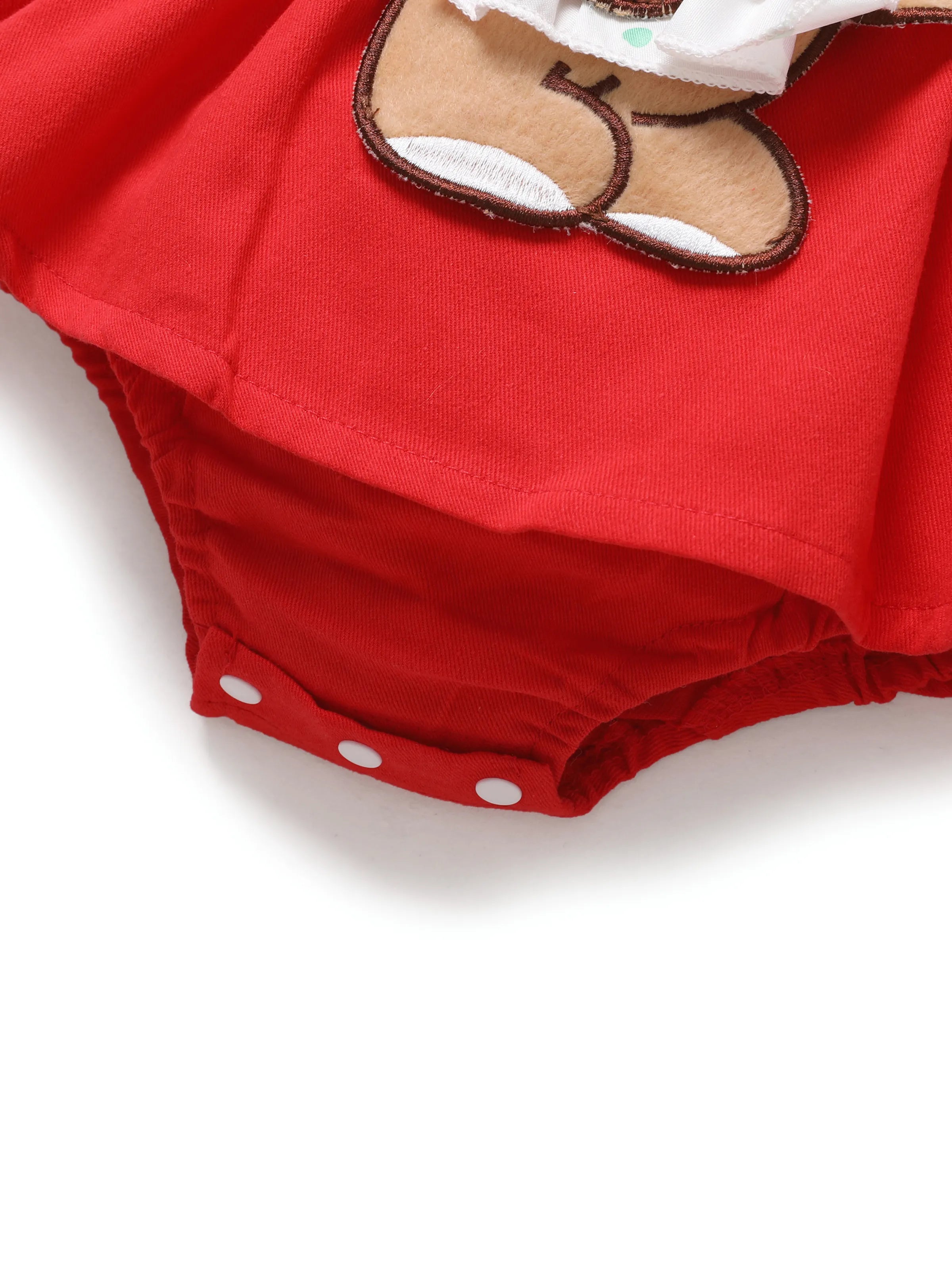 Baby Girl Clothes Bear Style Embroidered Romper with Headband Red