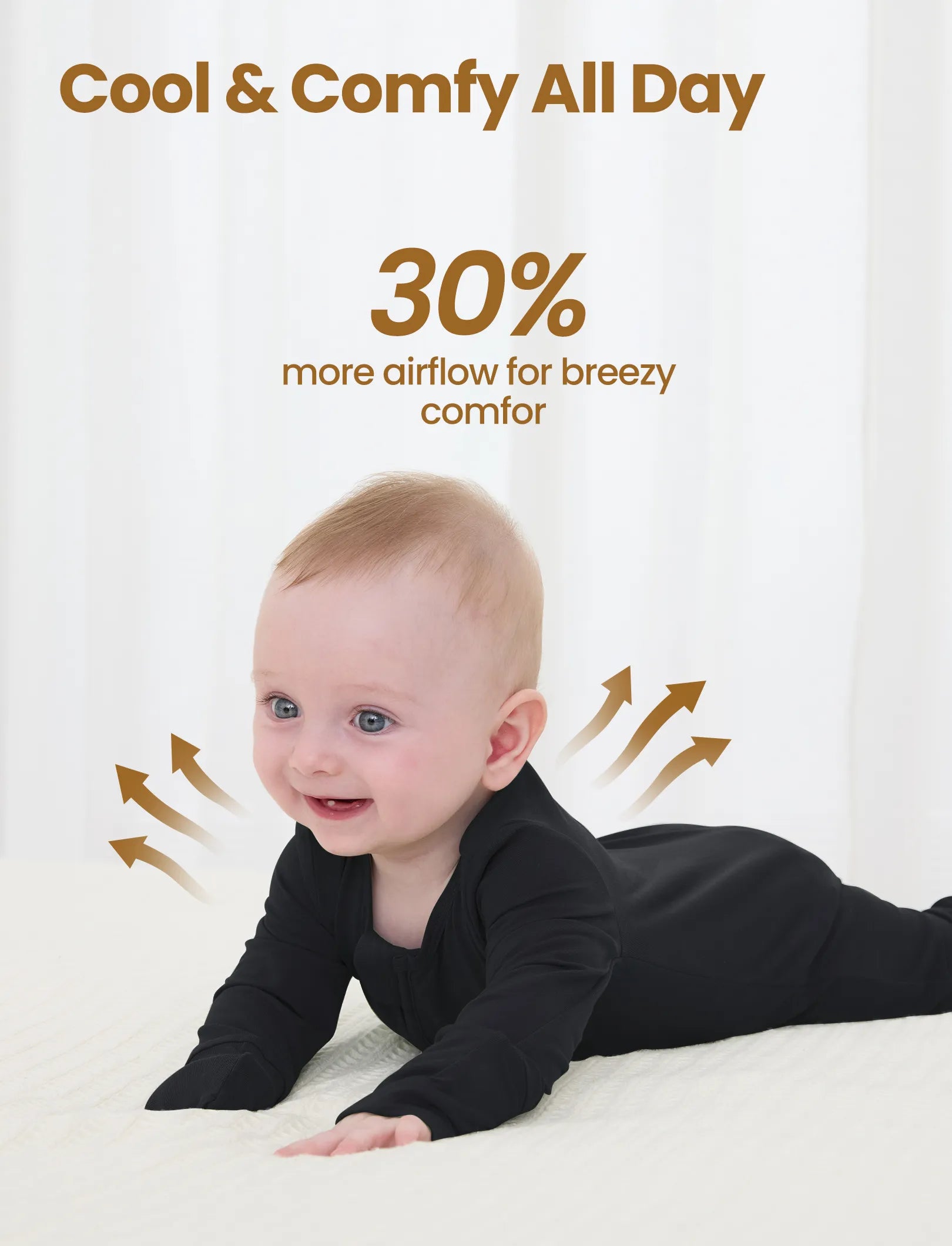 Bamboo Baby Boy / Girl 3-Pack Solid&Rainbow Printed 2-Way Zipper Anti Slip Long-sleeve Footie Dark Blue