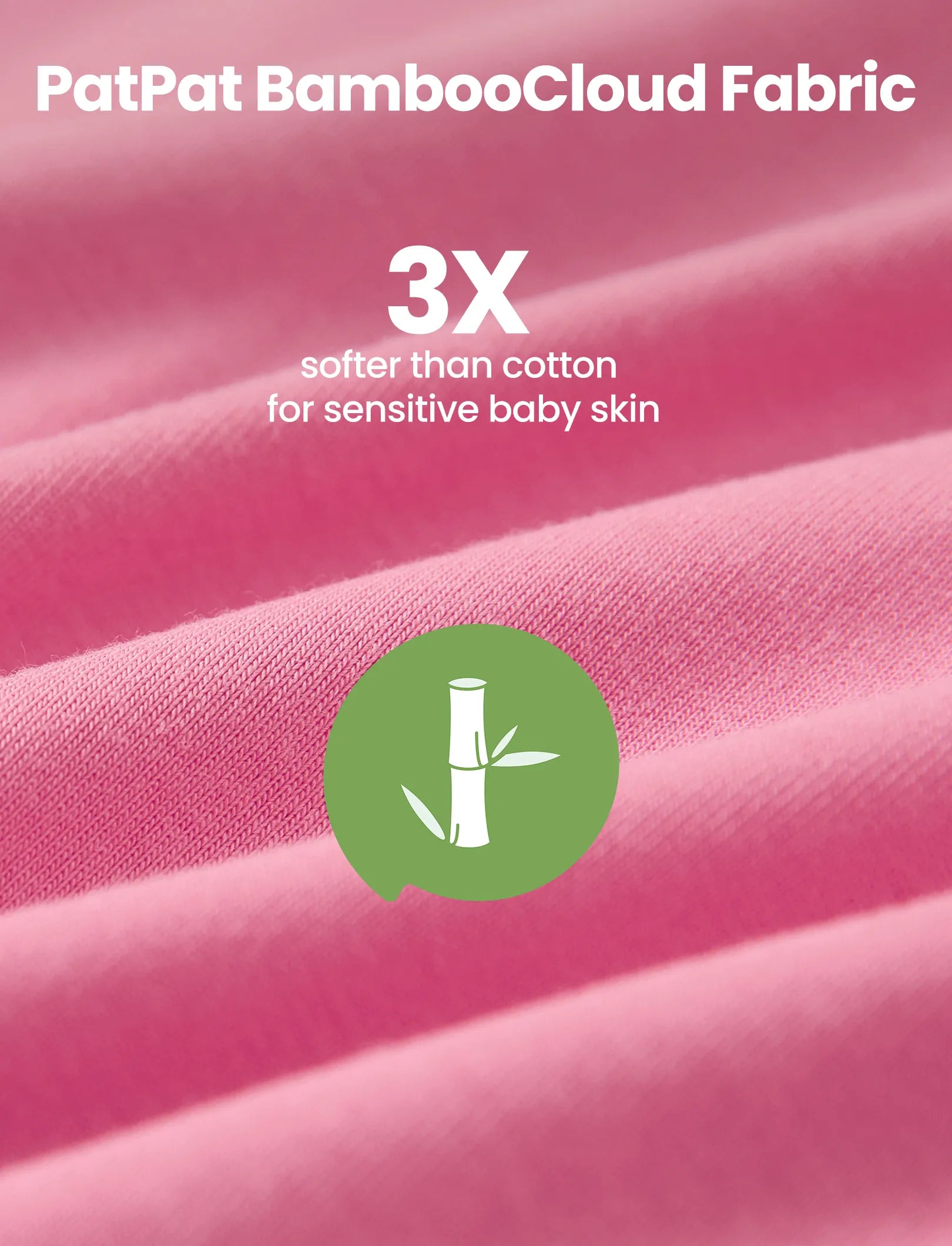 Bamboo Baby Boy / Girl 3-Pack Solid&Rainbow Printed 2-Way Zipper Anti Slip Long-sleeve Footie Pink