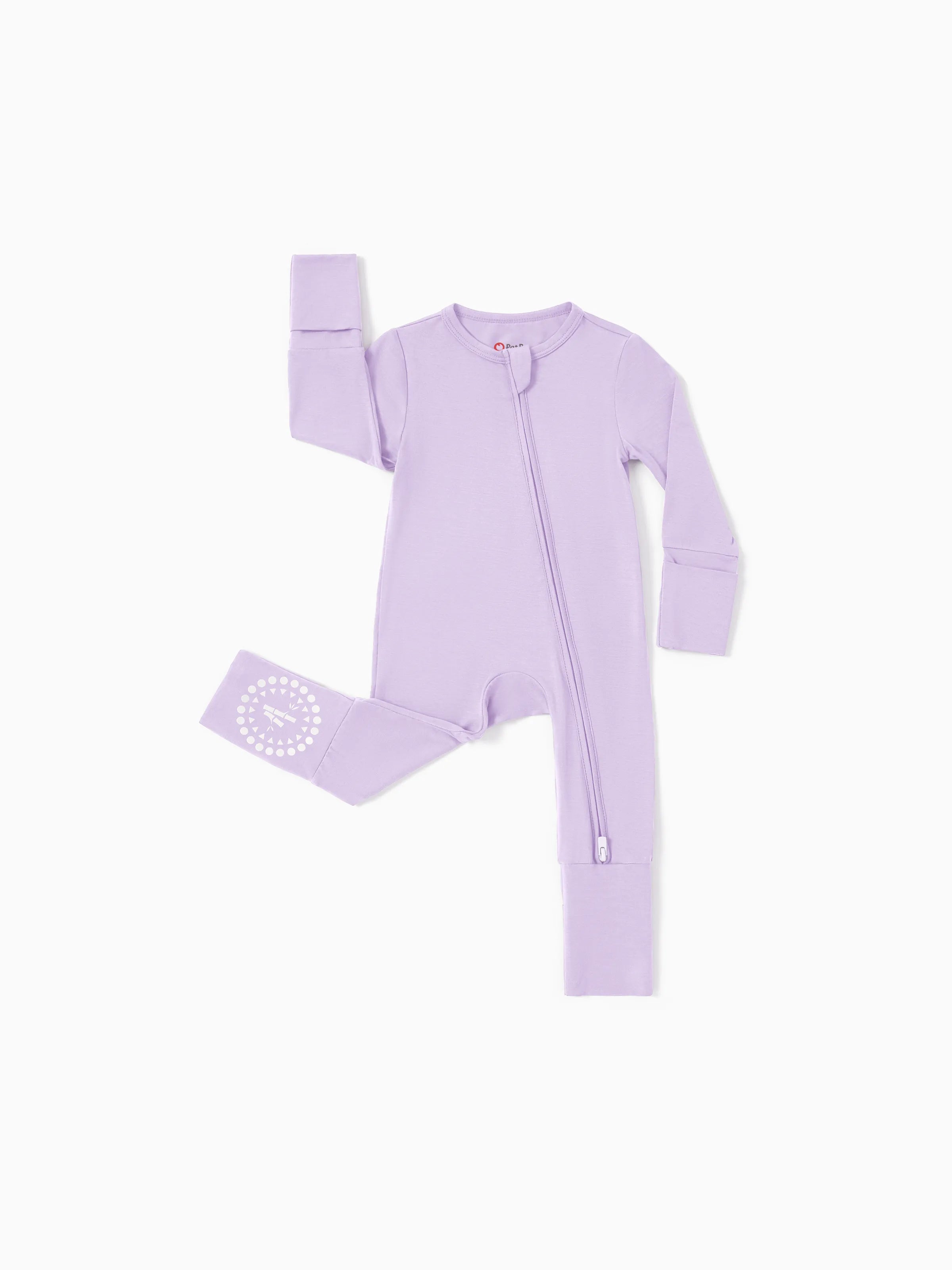 Bamboo Baby Boy / Girl 3-Pack Solid&Rainbow Printed 2-Way Zip Romper Anti Slip Long-sleeve Footie Purple