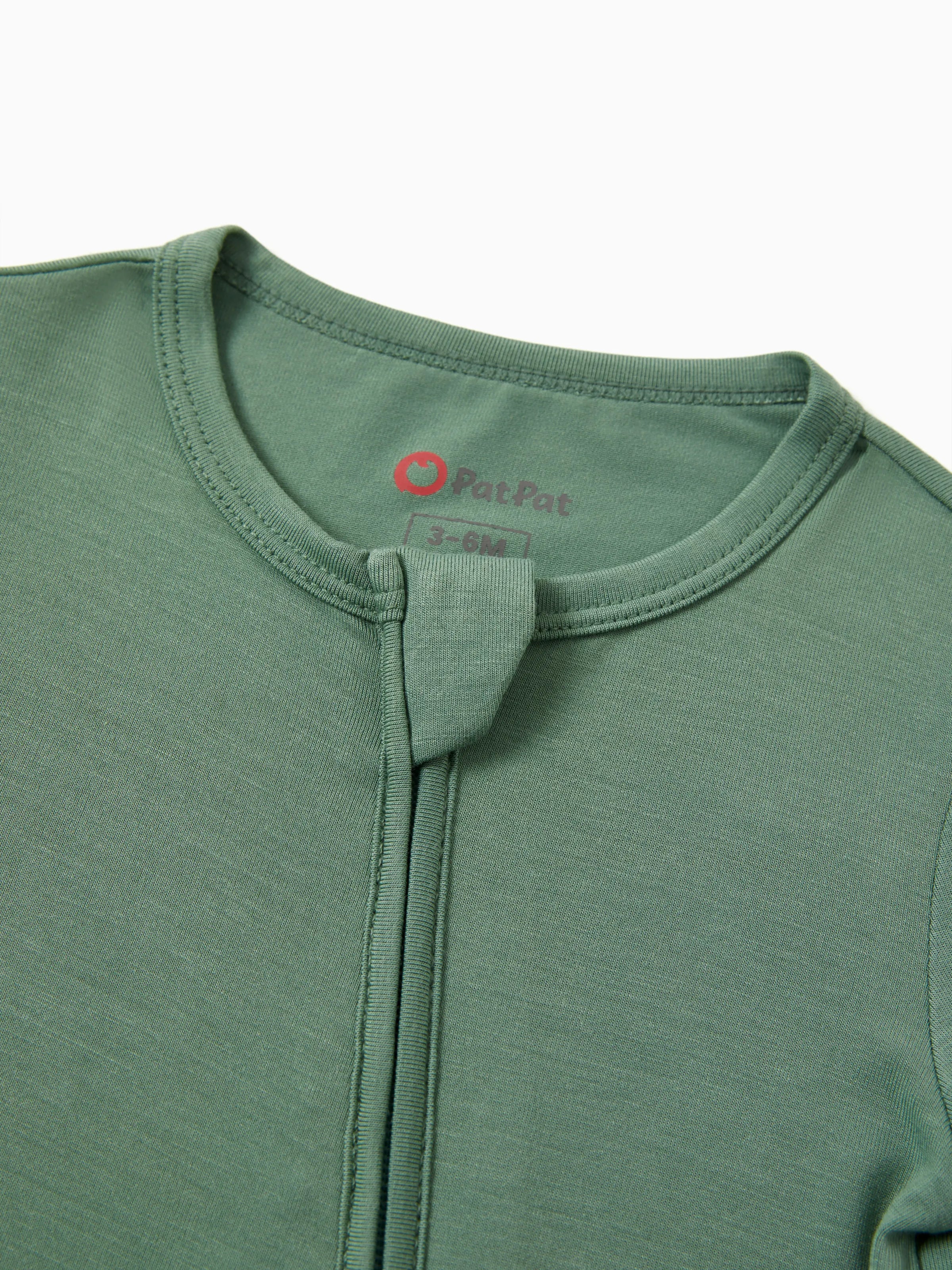 Bamboo Baby Boy/Girl 2-Pack Long Sleeve Romper 2-Way Zip Anti Slip Footie. Green