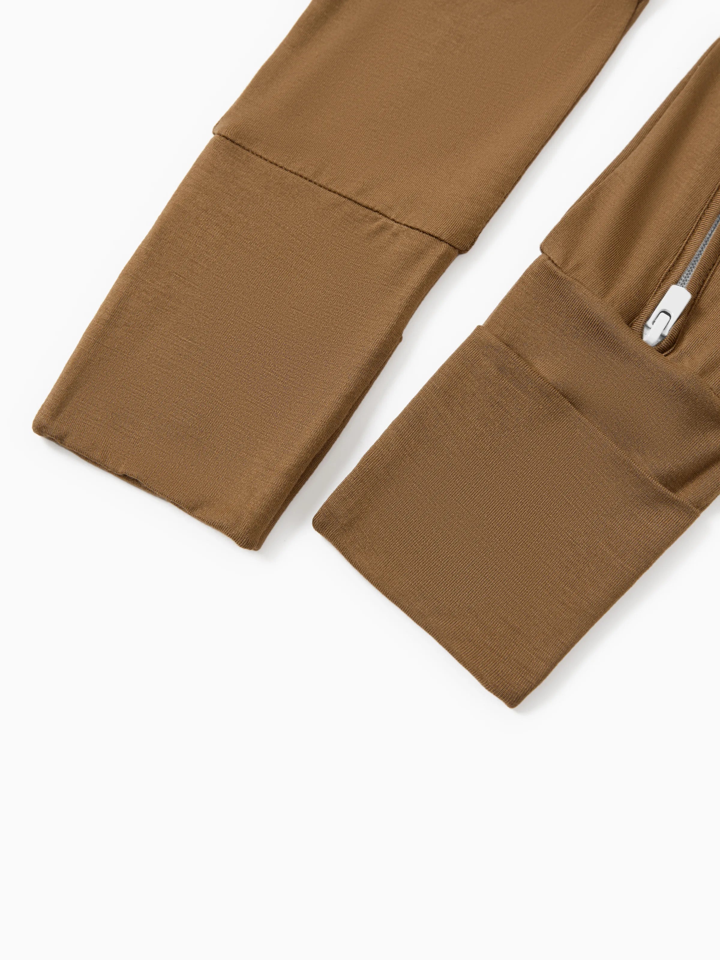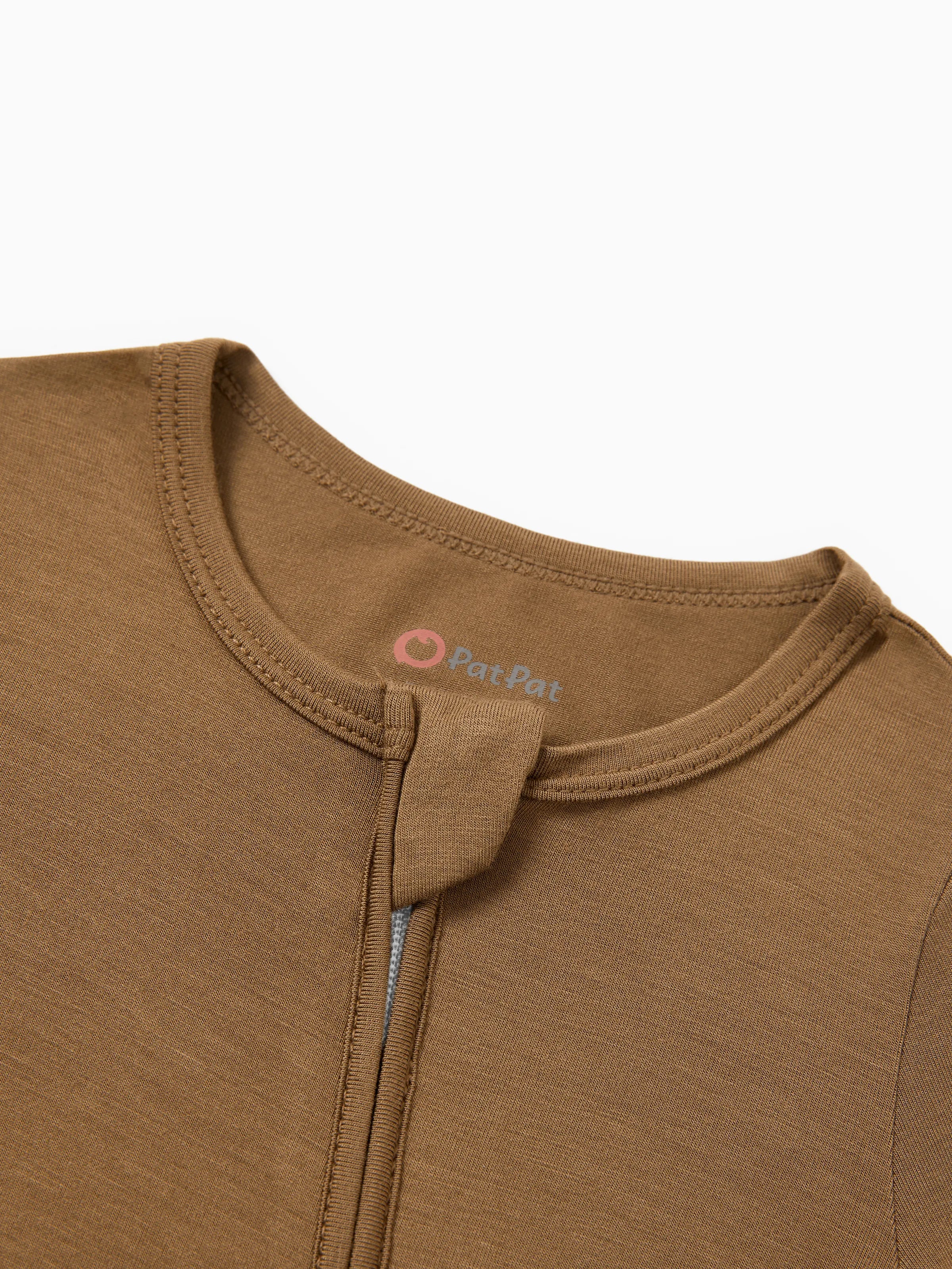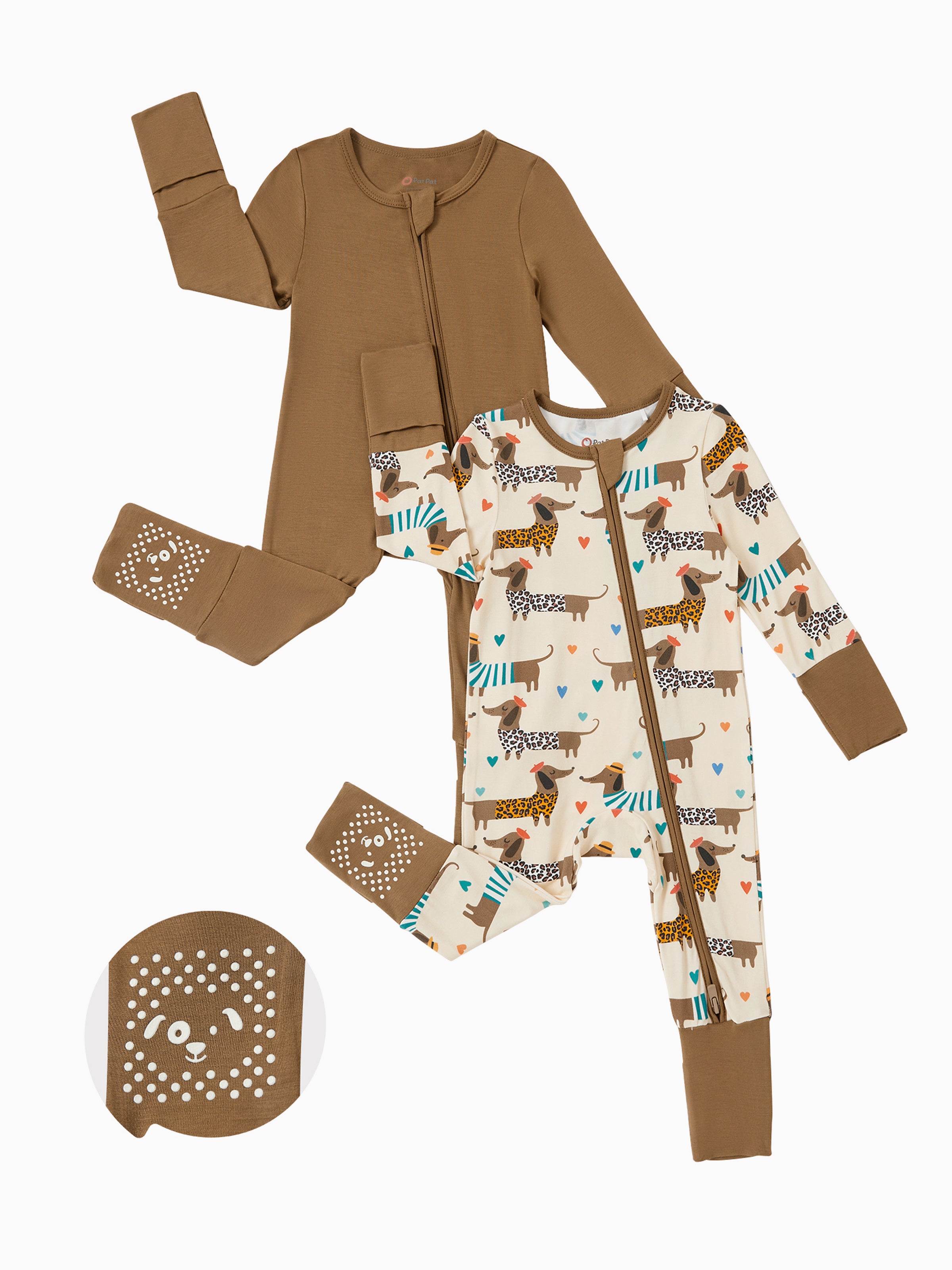 Bamboo Baby Boy/Girl 2-Pack Solid&Bee Printed 2-Way Zipper Anti Slip Footie Coffee