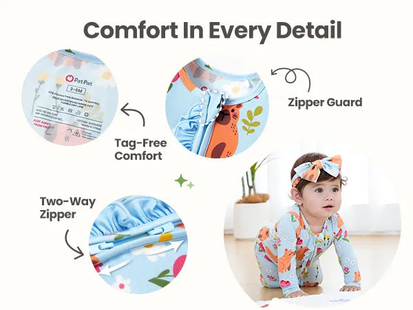 Bamboo Baby Boy/Girl Animal Printed 2-Way Zip Onesies Anti Slip Long-sleeve Footie with Hairband Blue