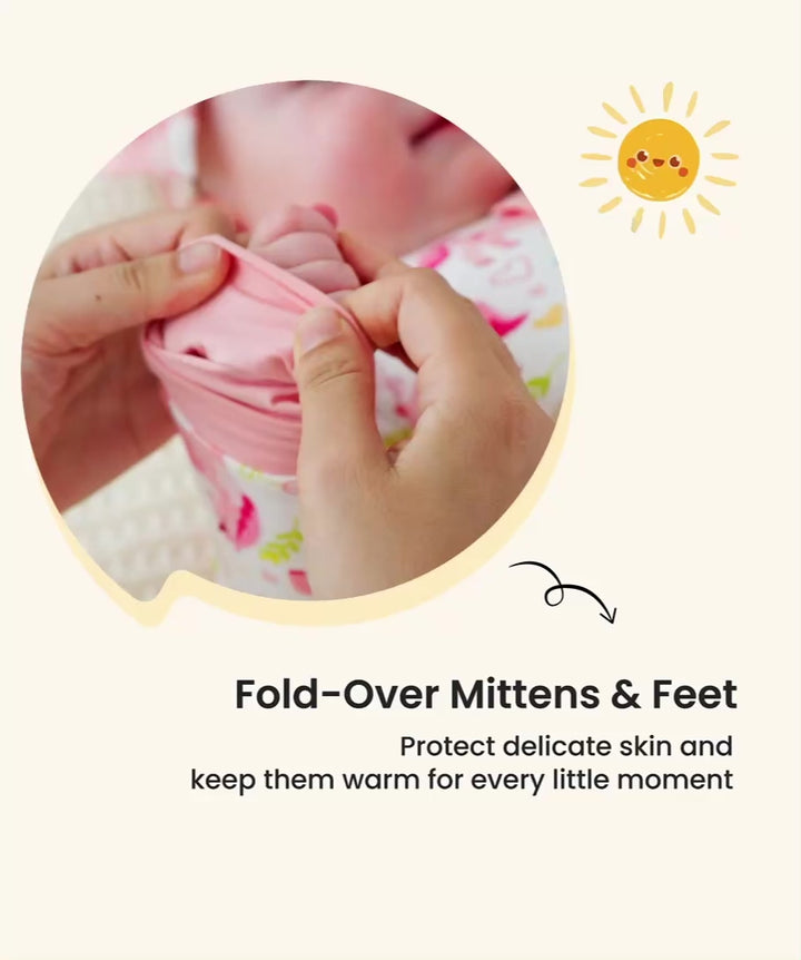 Bamboo Baby Boy/Girl Animal Printed 2-Way Zipper Anti Slip Long-sleeve Footie with Hairband Pink
