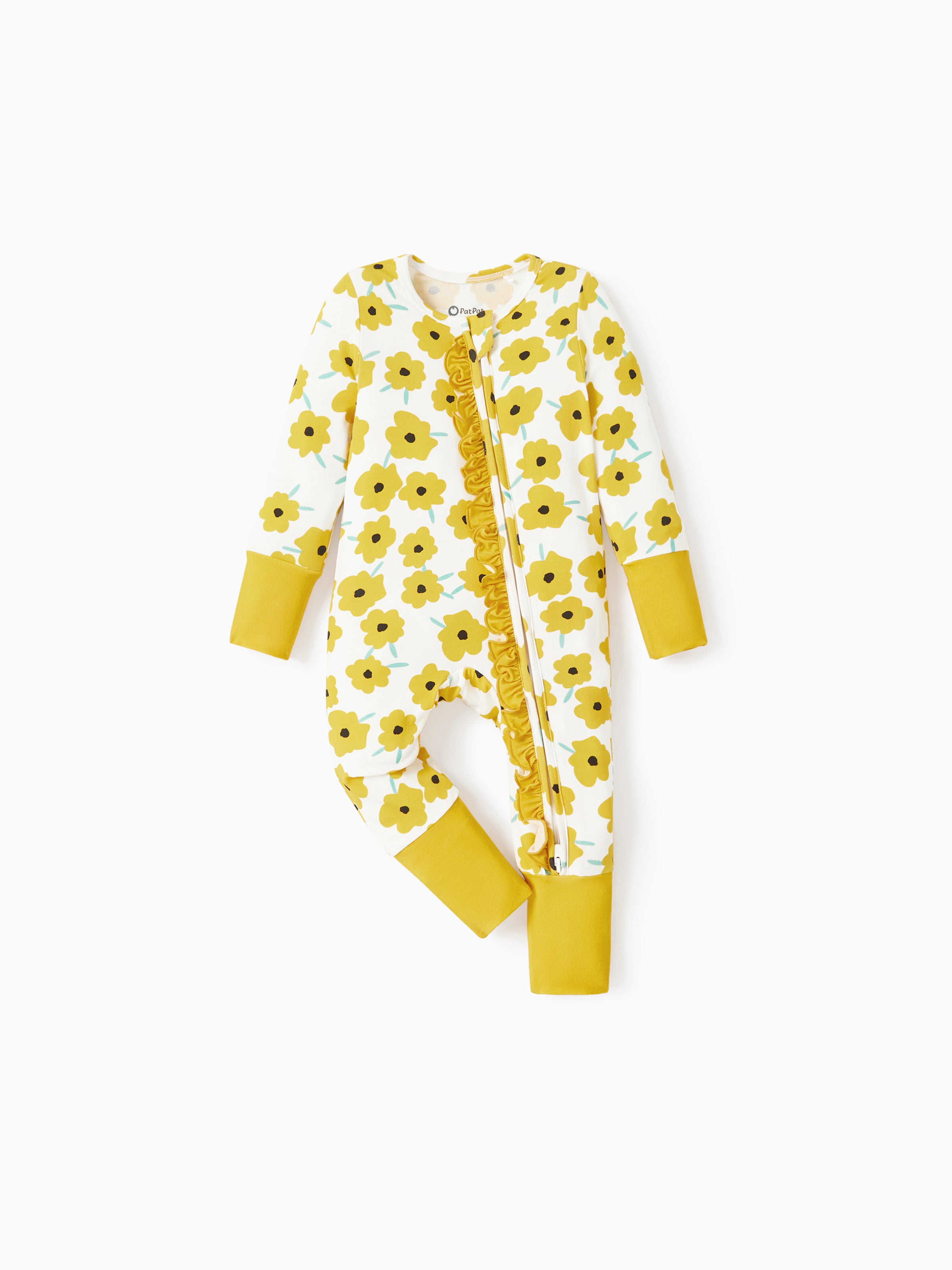 Bamboo Baby Boy/Girl Animal Printed 2-Way Zipper Anti Slip Long-sleeve Footie with/without Hairband Yellow