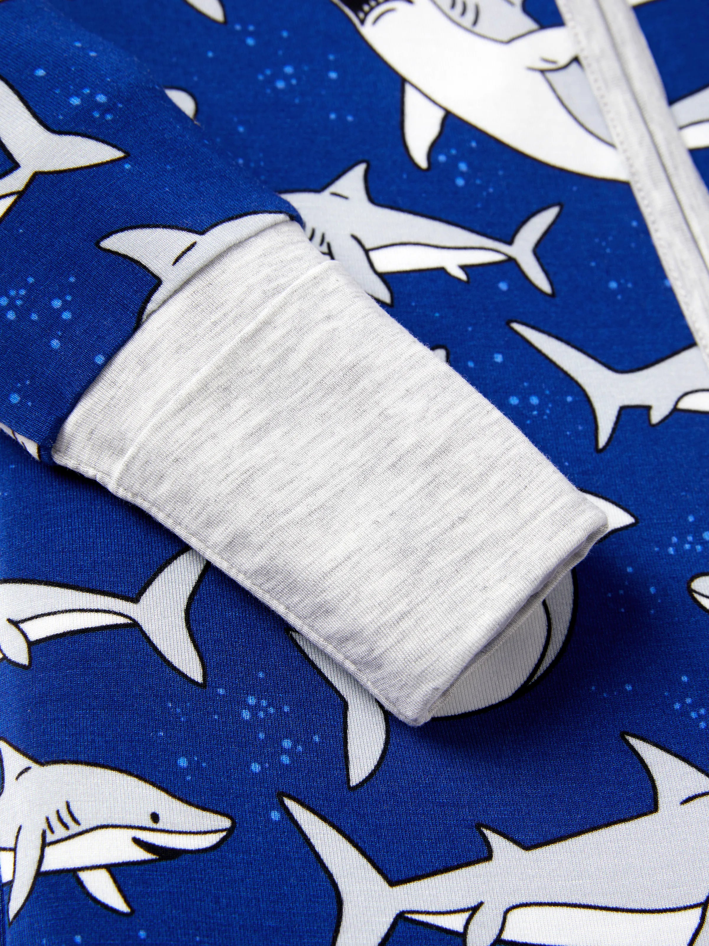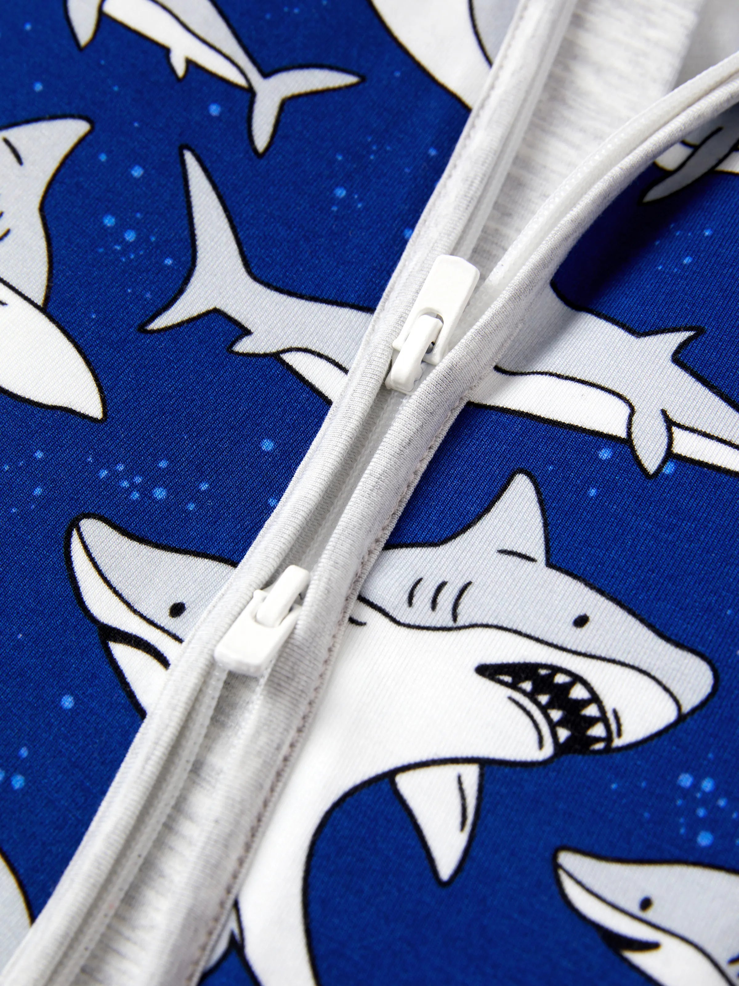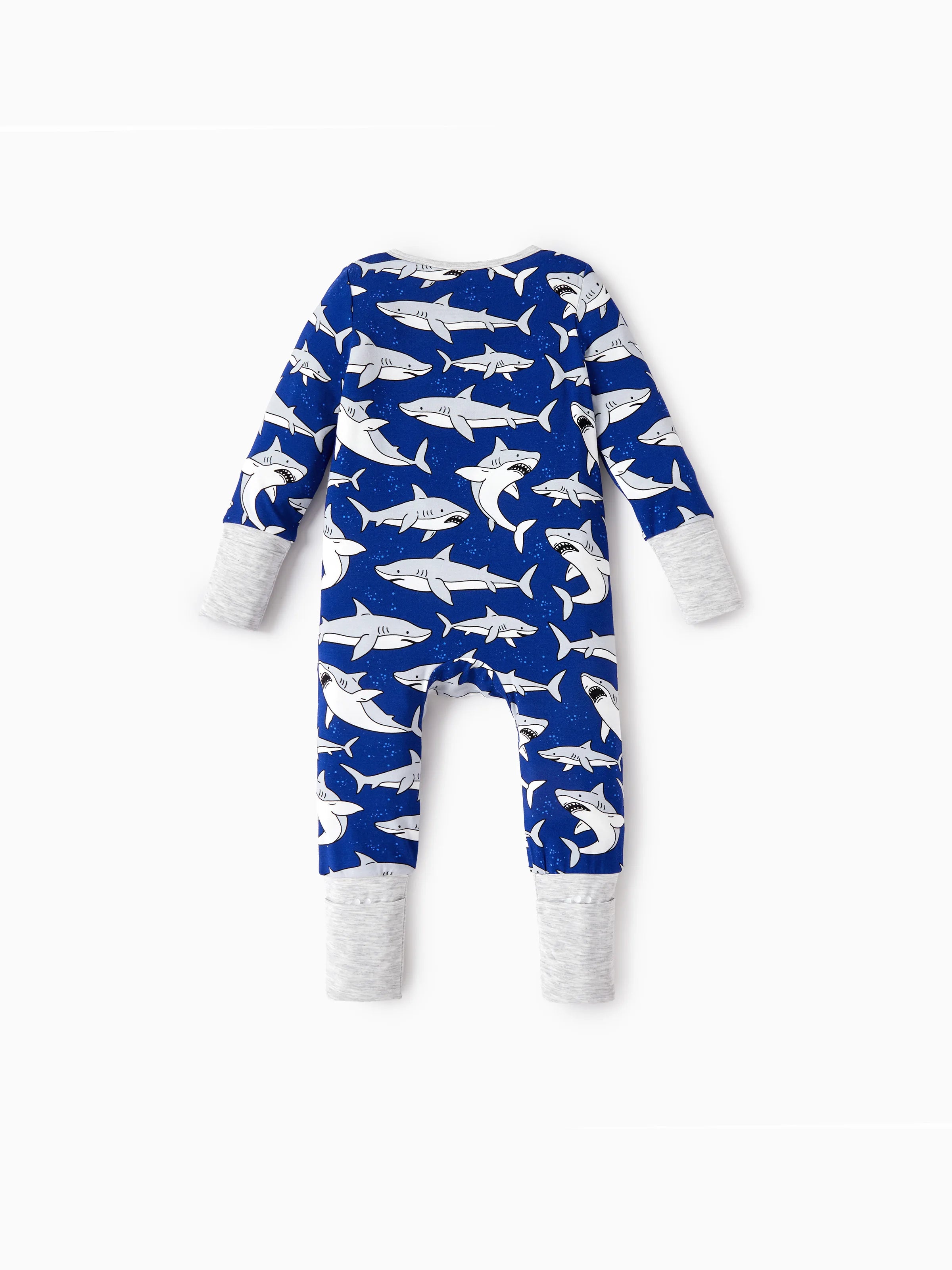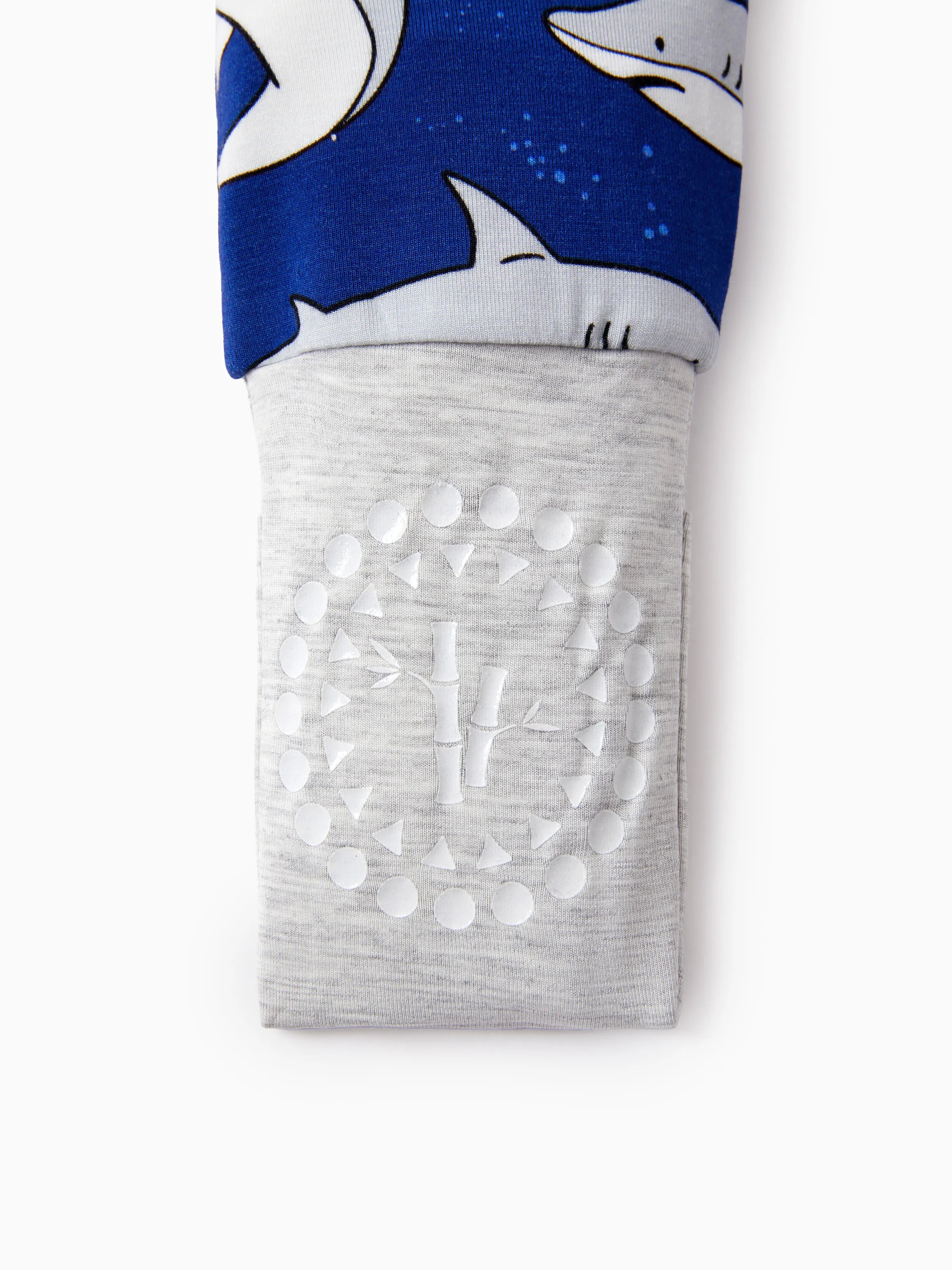 Bamboo Baby Boy/Girl Cartoon Printed 2-Way Zip Onesies Anti Slip Long-sleeve Footie Deep Blue
