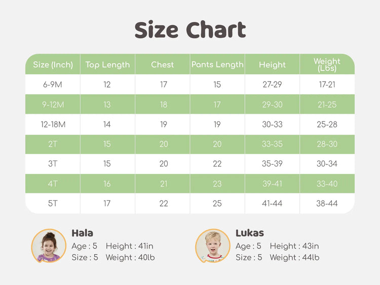 Available in sizes 6-9M to 5T; each 2-piece set includes a top and bottom for babies and toddlers.