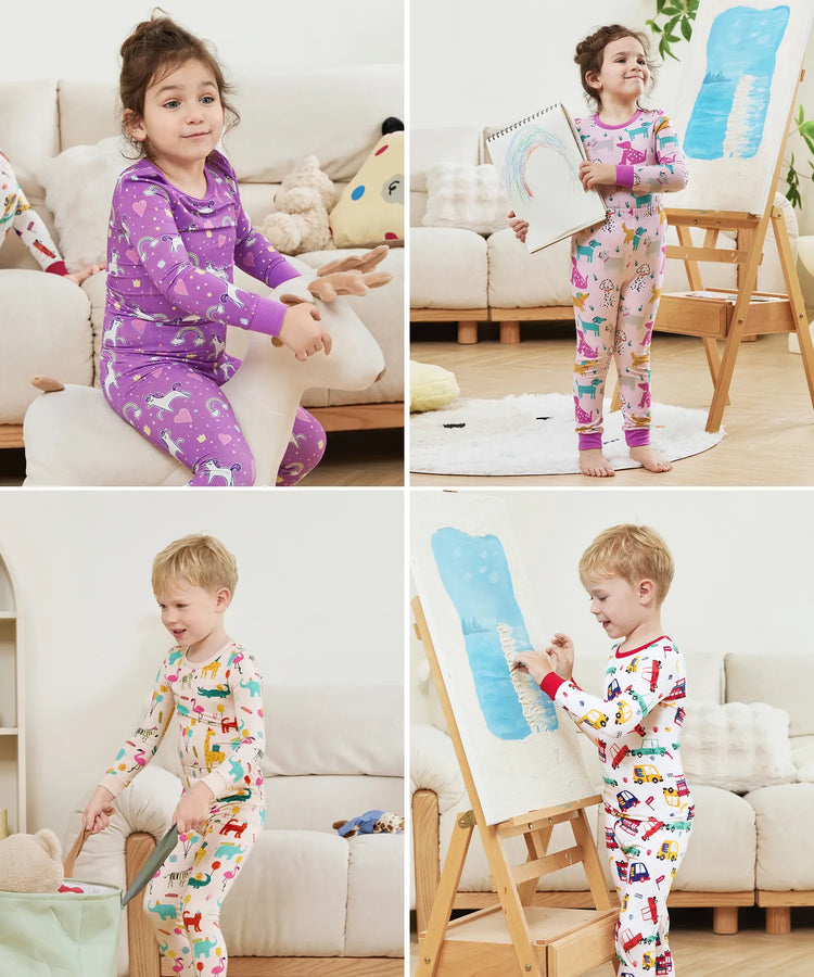 Bamboo Baby/Toddler 2-Piece Childlike Animal Print Snug-Fitting Pajamas Set Red