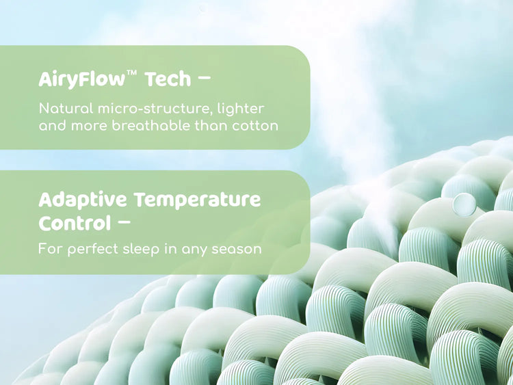 Bamboo fabric provides cool-touch feel, superior breathability, and moisture-wicking to regulate temperature and reduce night sweats.