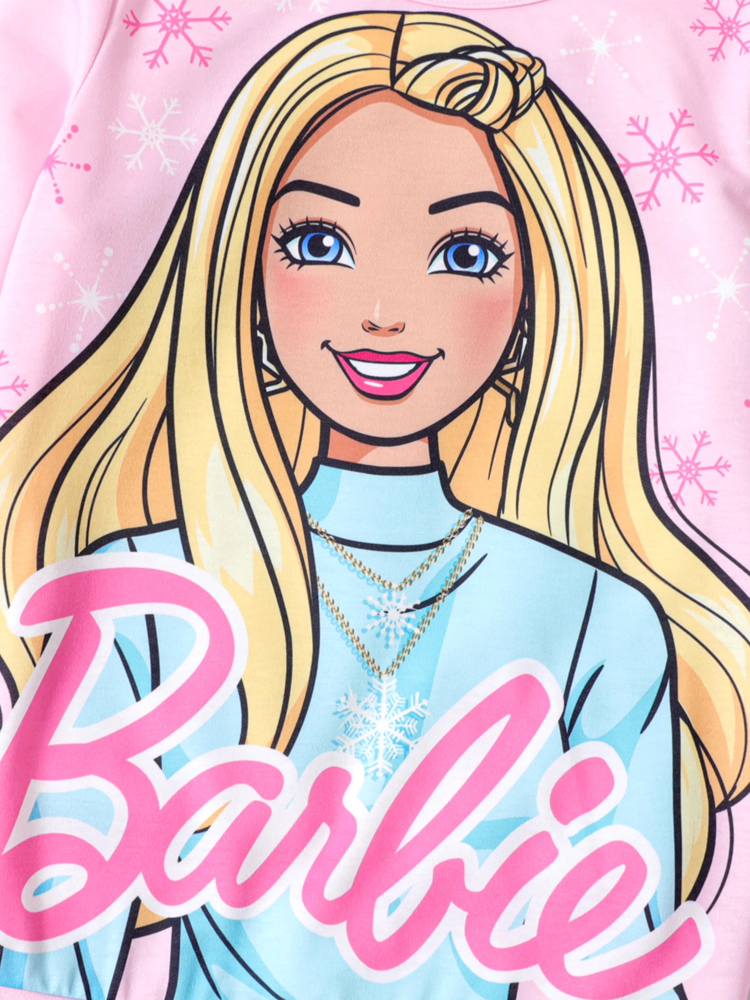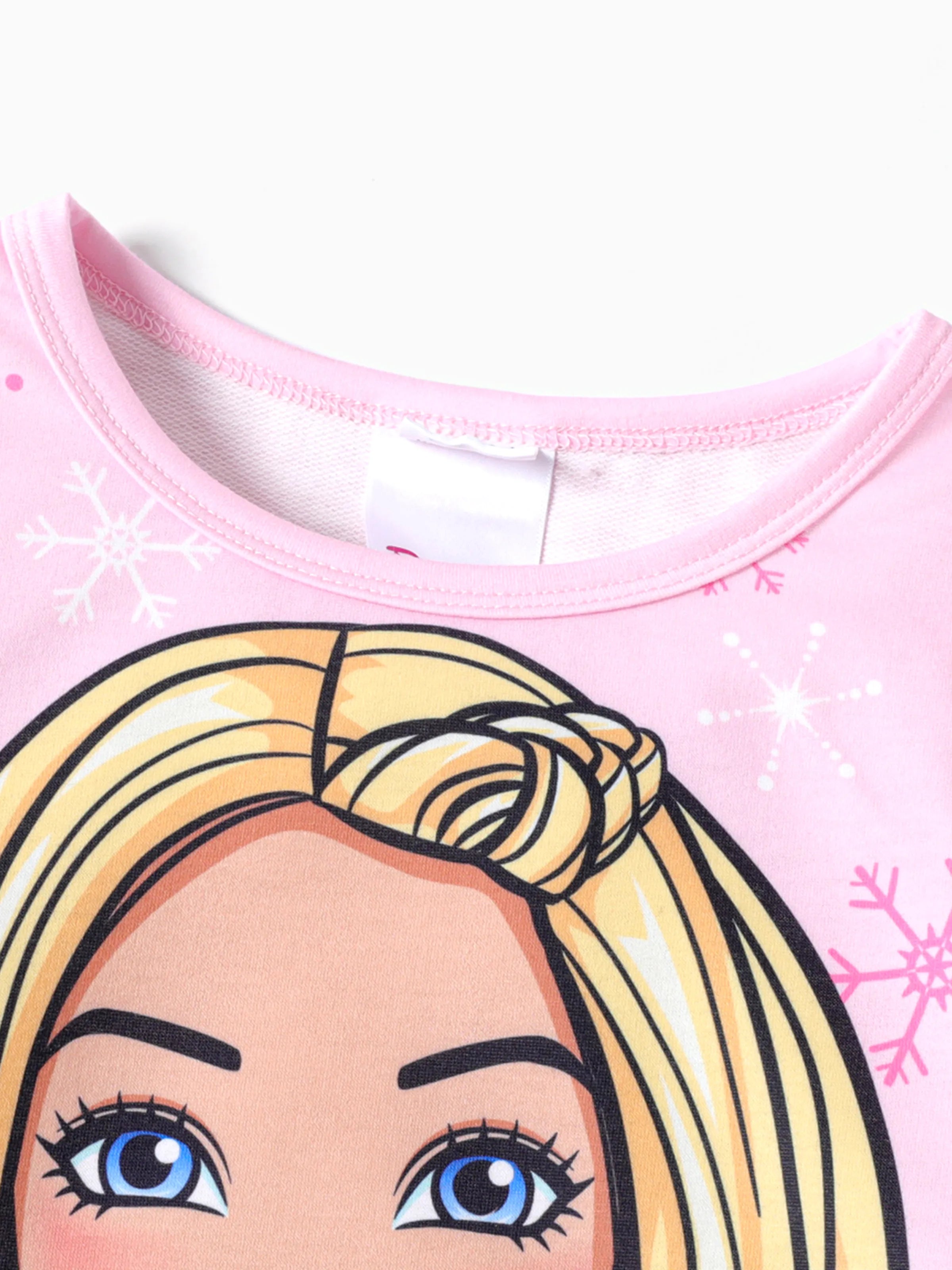 Barbie 2pcs Kid Girl Christmas Snowflake Print Sweatshirt and Elasticized Pants Set Pink
