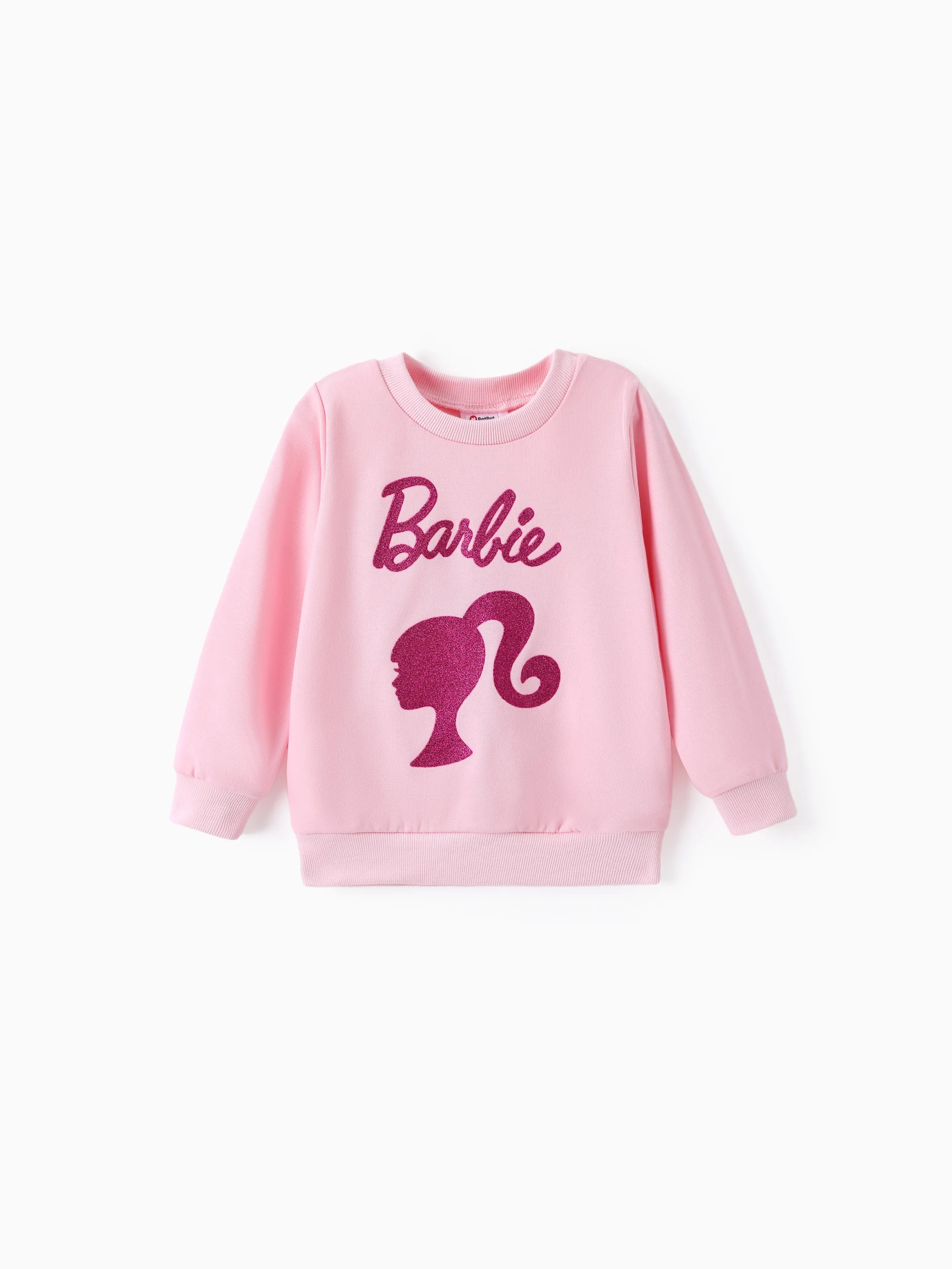 Barbie 2pcs Toddler Girl Character Letter Print Cotton Pullover Sweatshirt and Elasticized Pants Set Pink