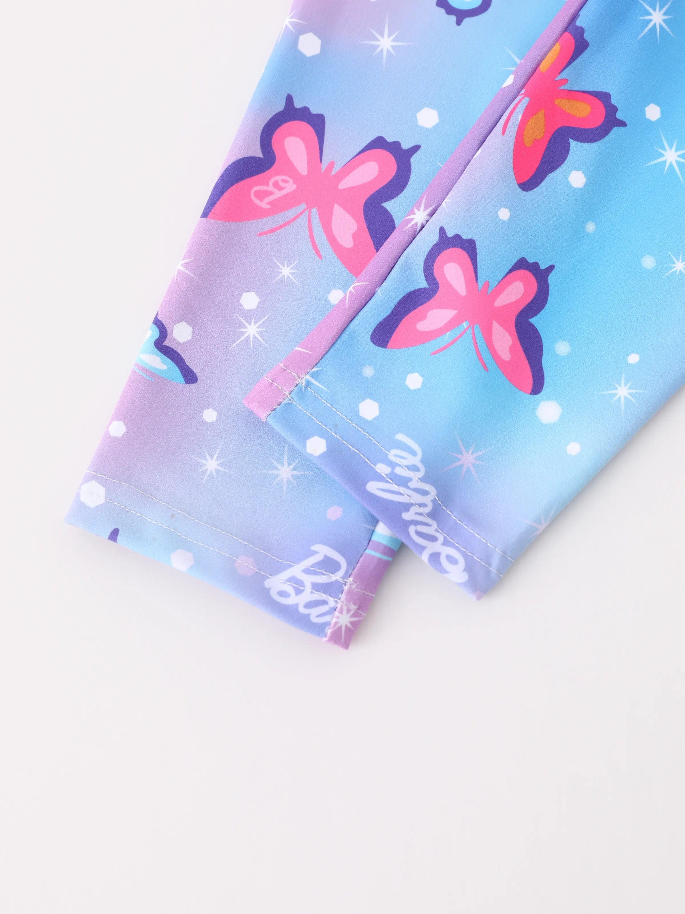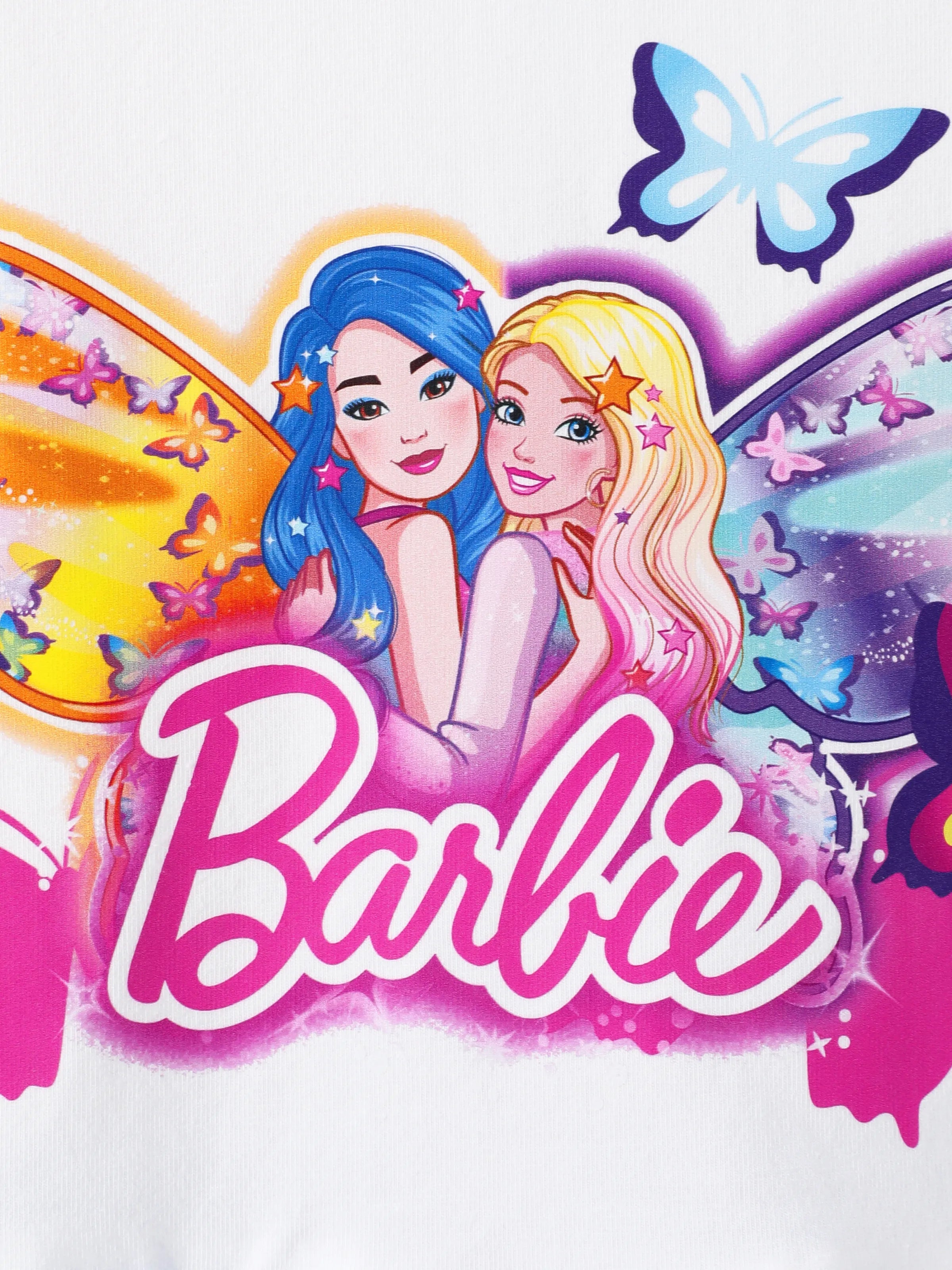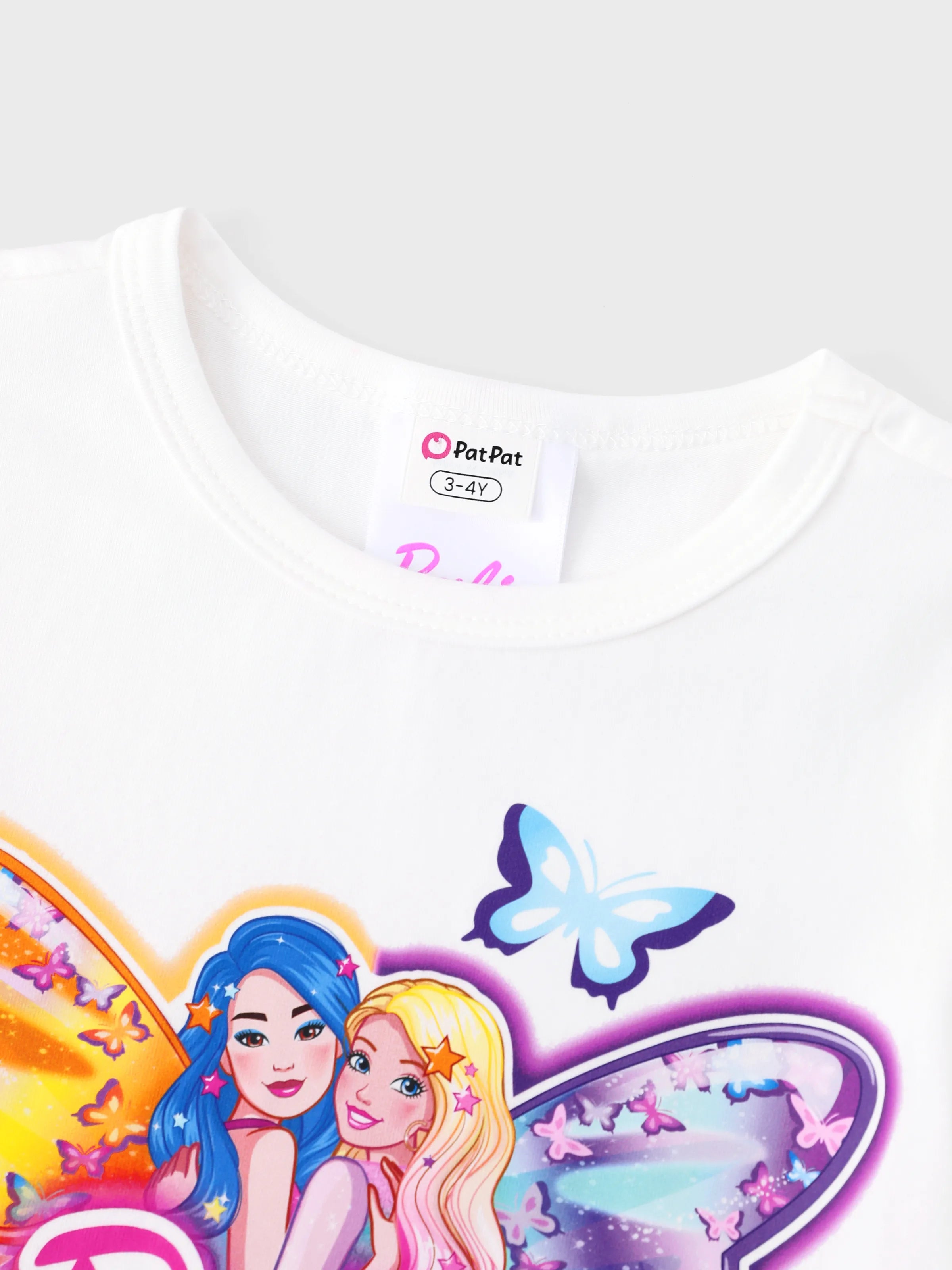Barbie Toddler Girl 2pcs Cotton Crepe Long-sleeve Top and Printed Pants Sets White