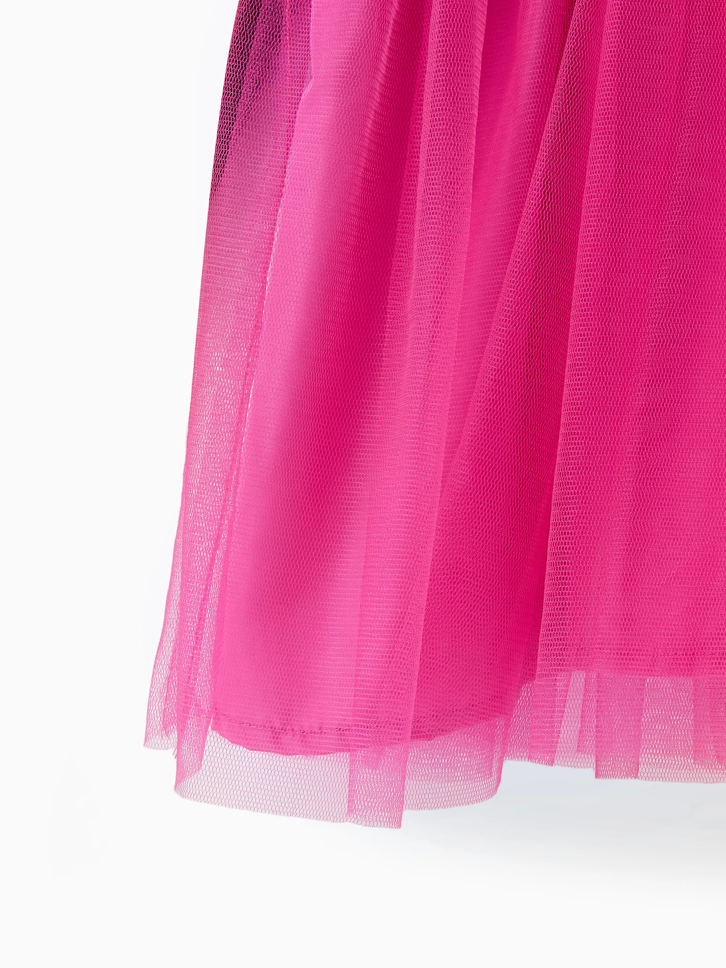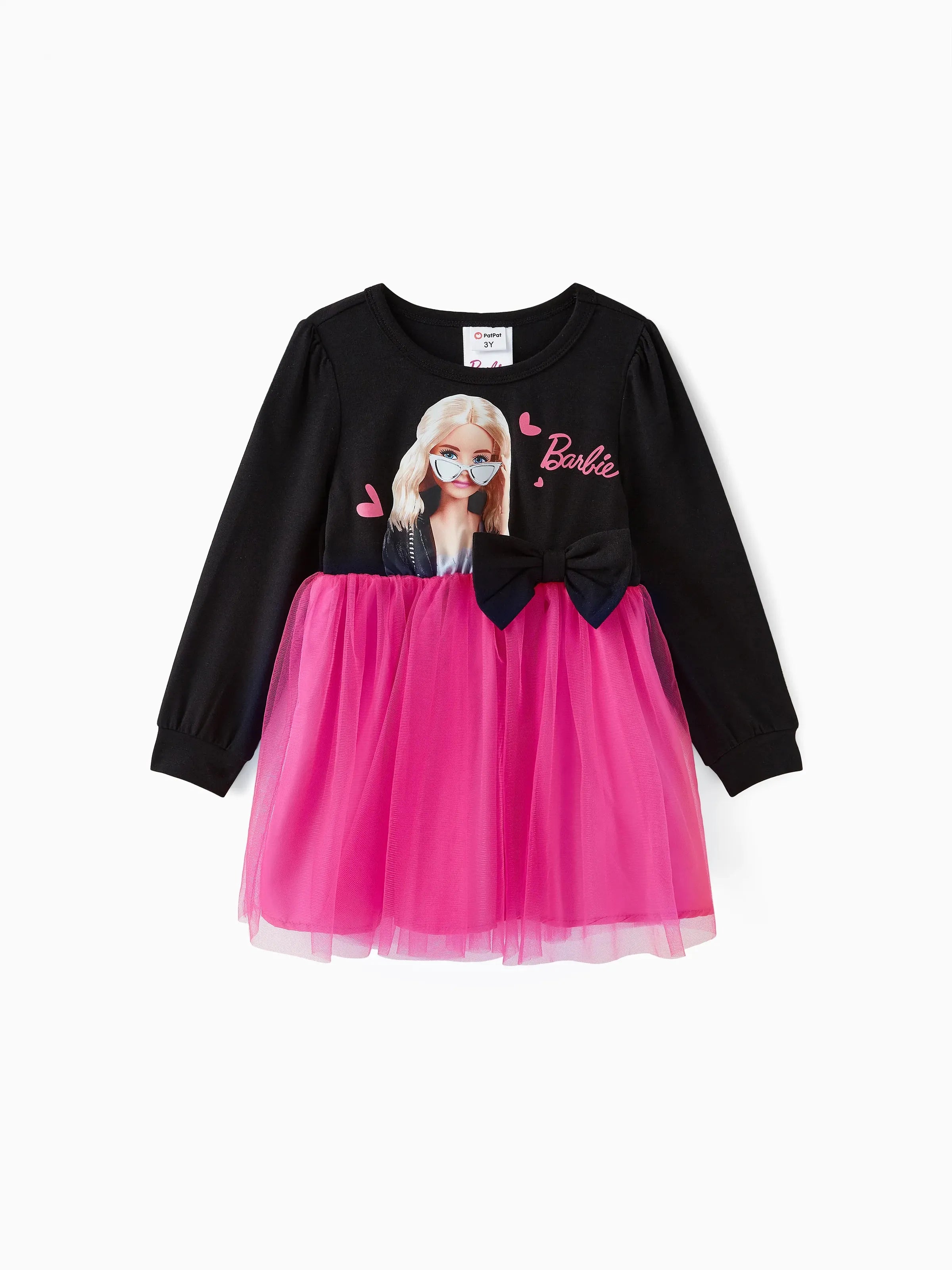 Barbie Toddler Girl Figure Print Bow Decor Long-sleeve Mesh Panel Fairy Dress Rose pink