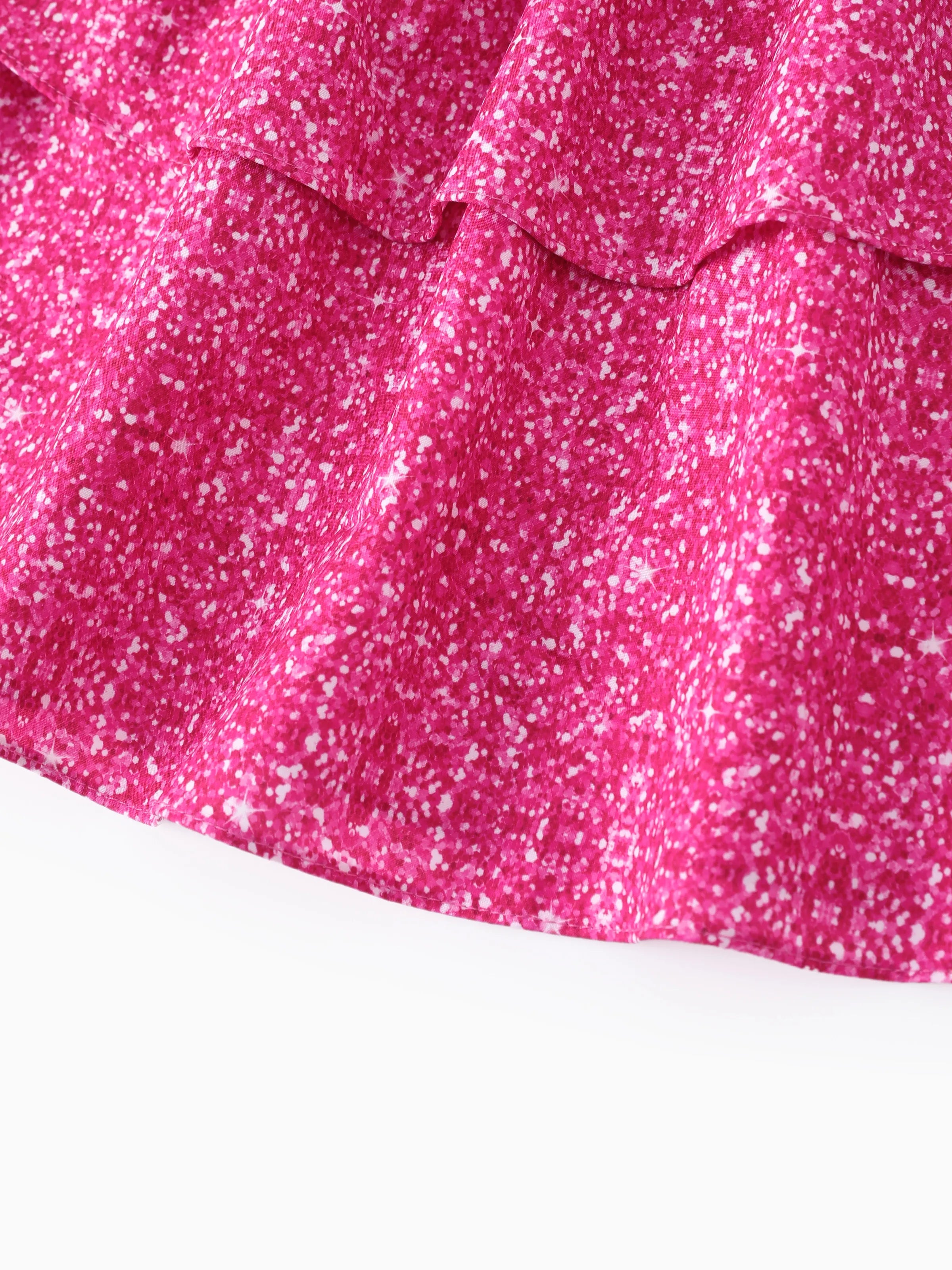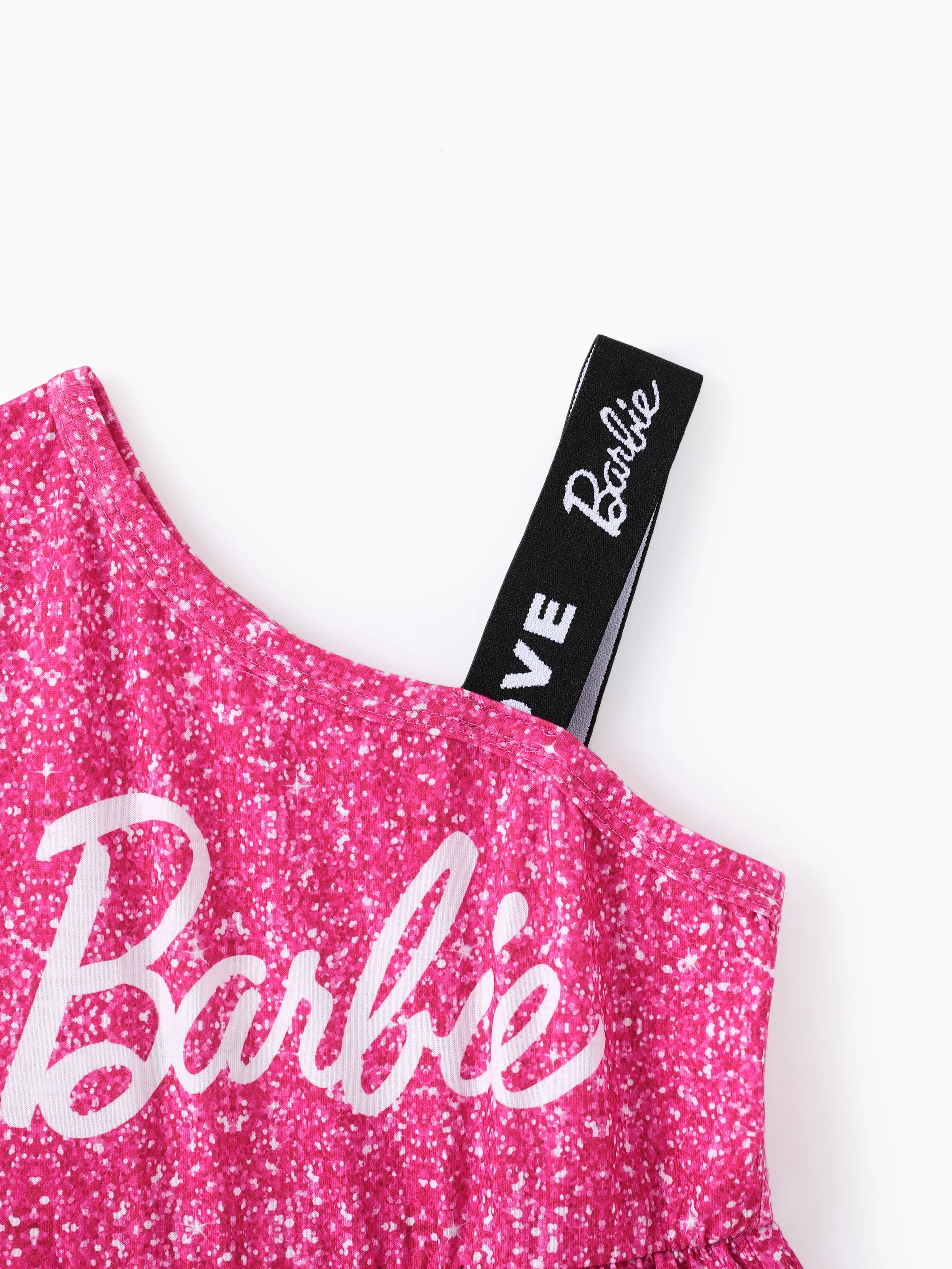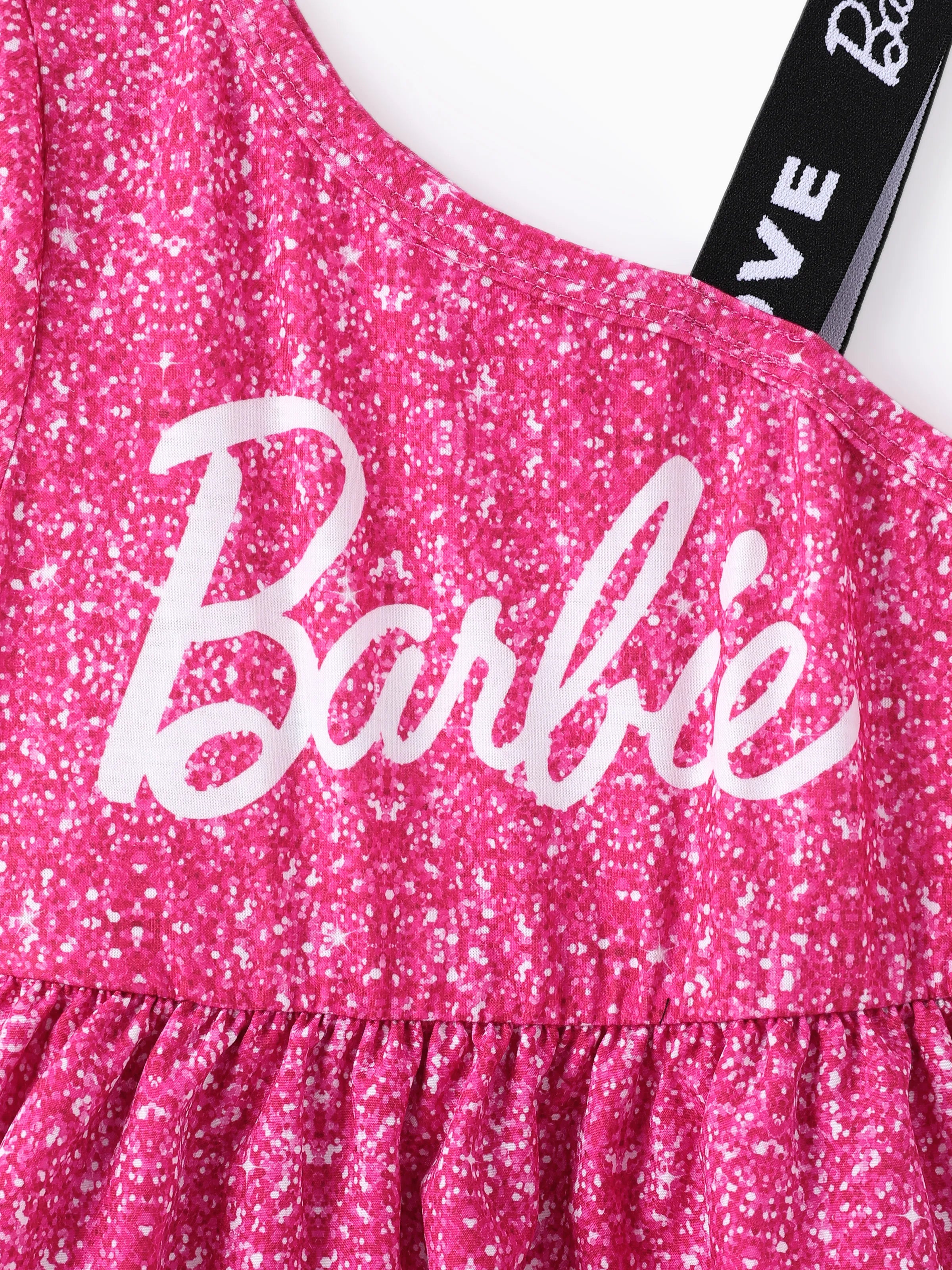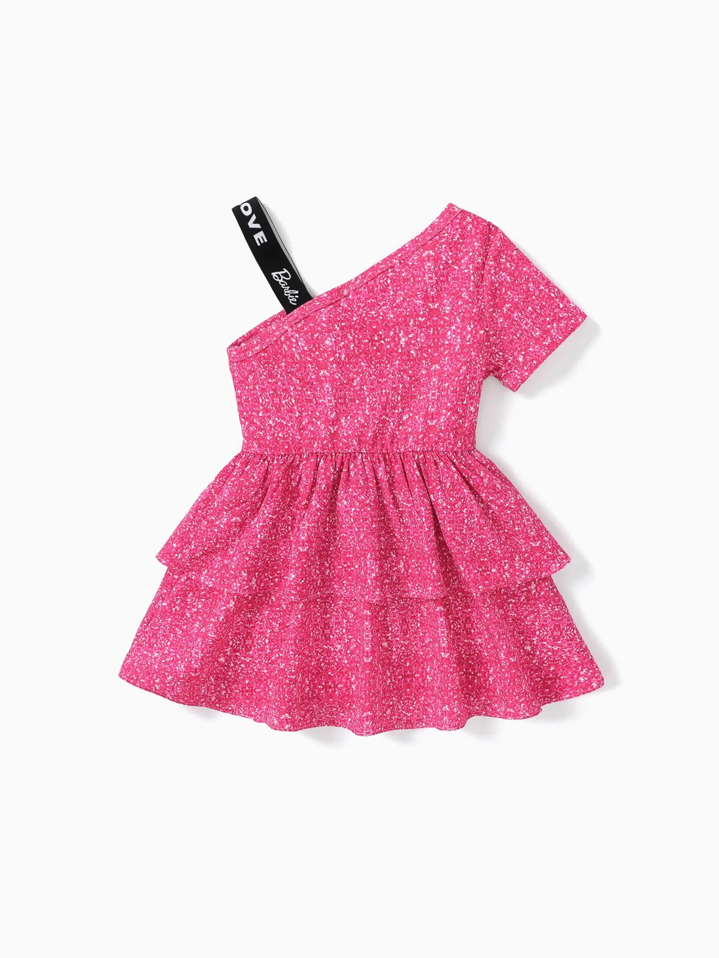 Barbie Toddler/Kid Girl One shouder desgin multi-layer Dress Rose pink
