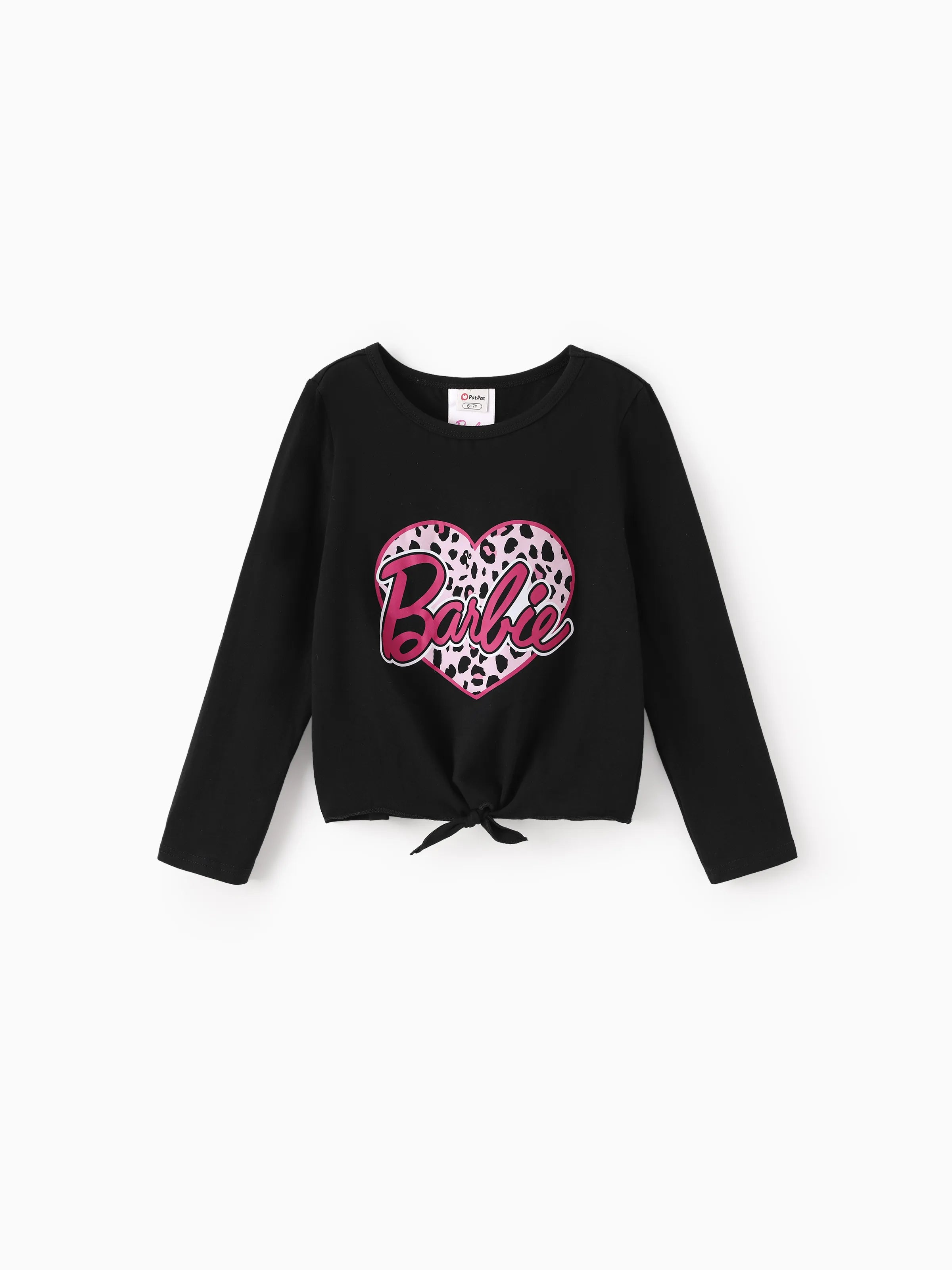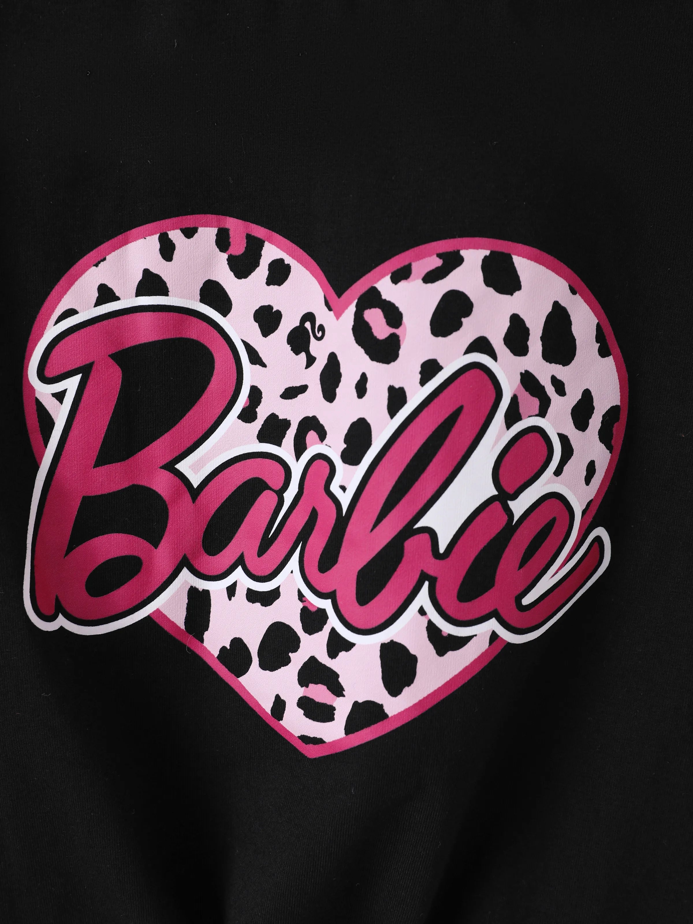 Barbie Toddler/Kids Girl 2pcs Chic Hem Cotton Long-sleeve Top and Leopard Pants Set Black