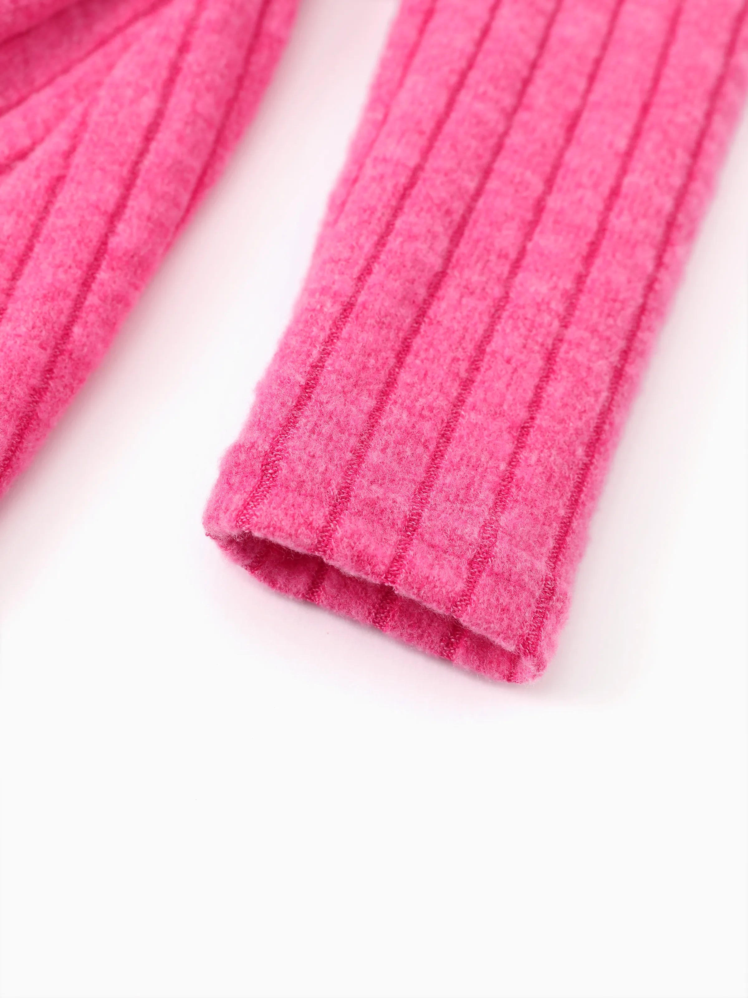 Barbie Toddler/Kids Girl Ribbed Knit Fabric Terry Embroidery Dress Hot Pink