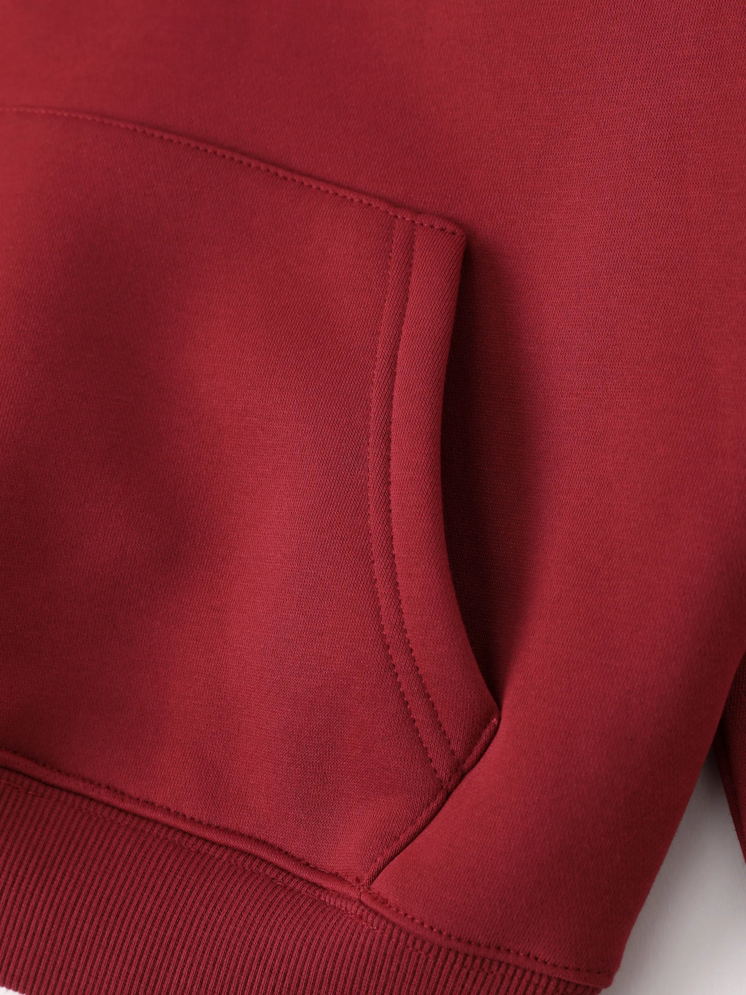 Boys and Girl Solid Color Thermal Hoodie with Far Infrared Heat-Retaining Fabric Red
