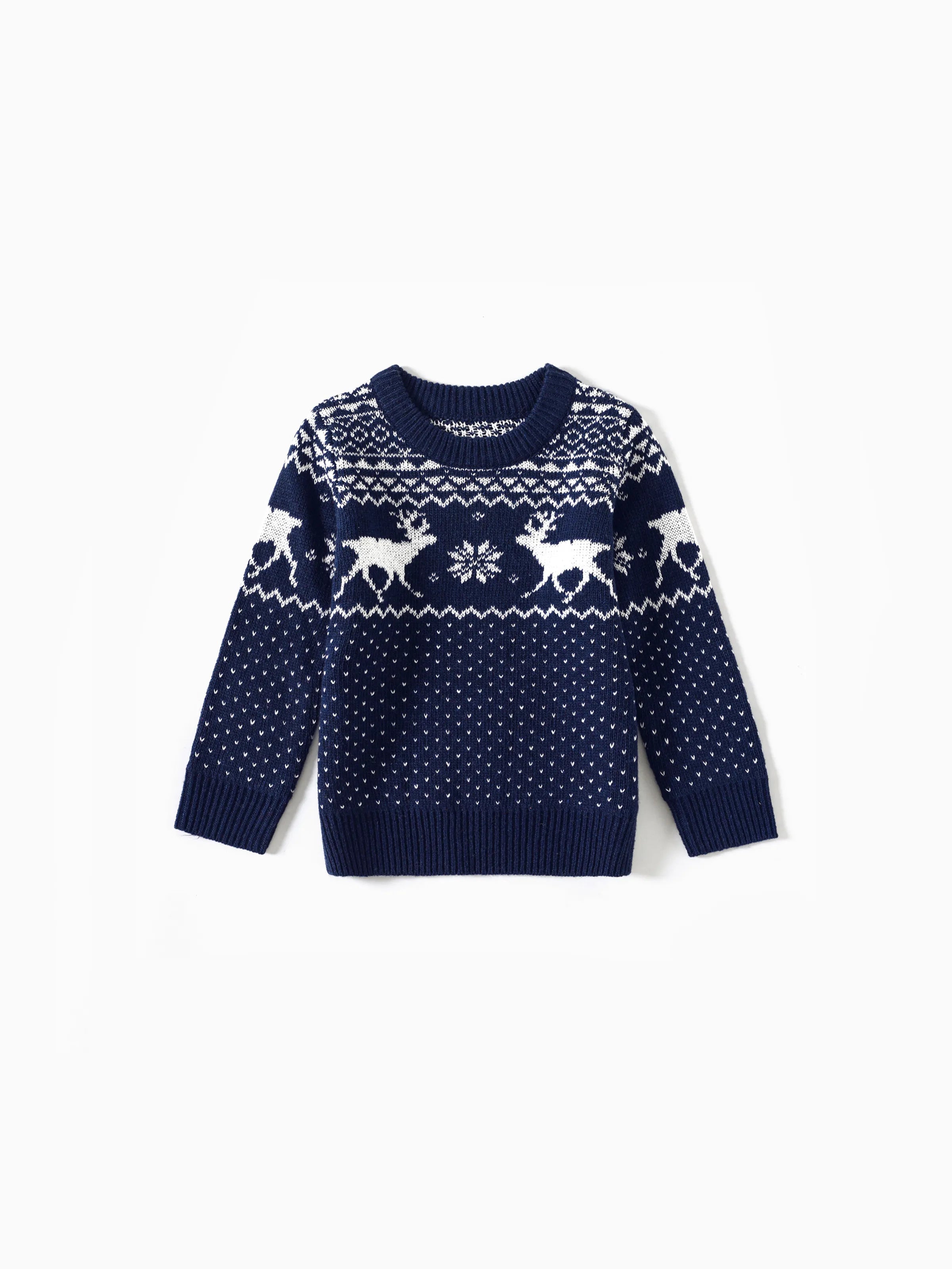 Christmas Family Matching Deer Graphic Long-sleeve Knitted Sweater Multi-color