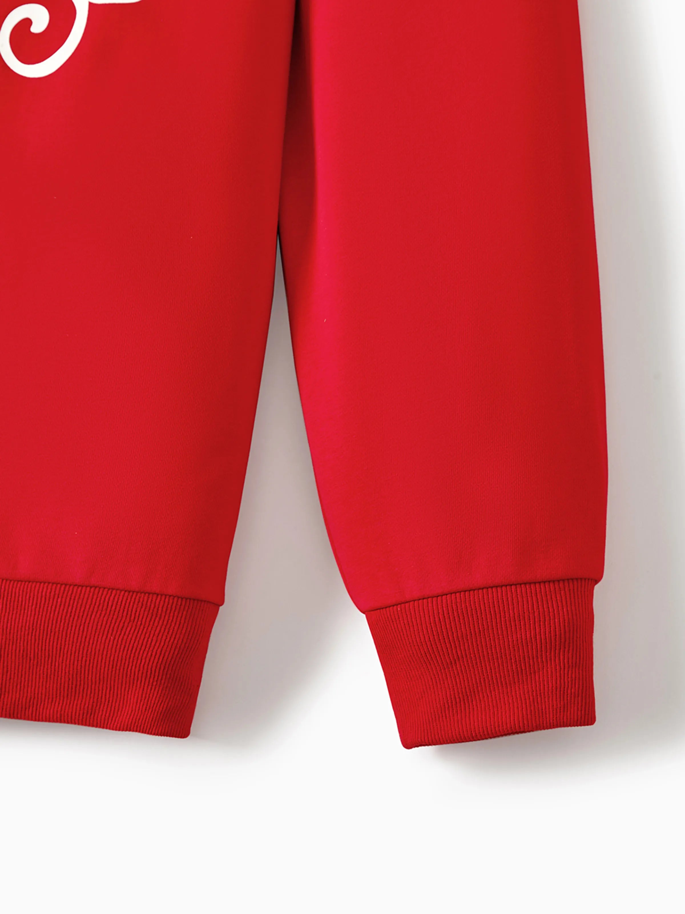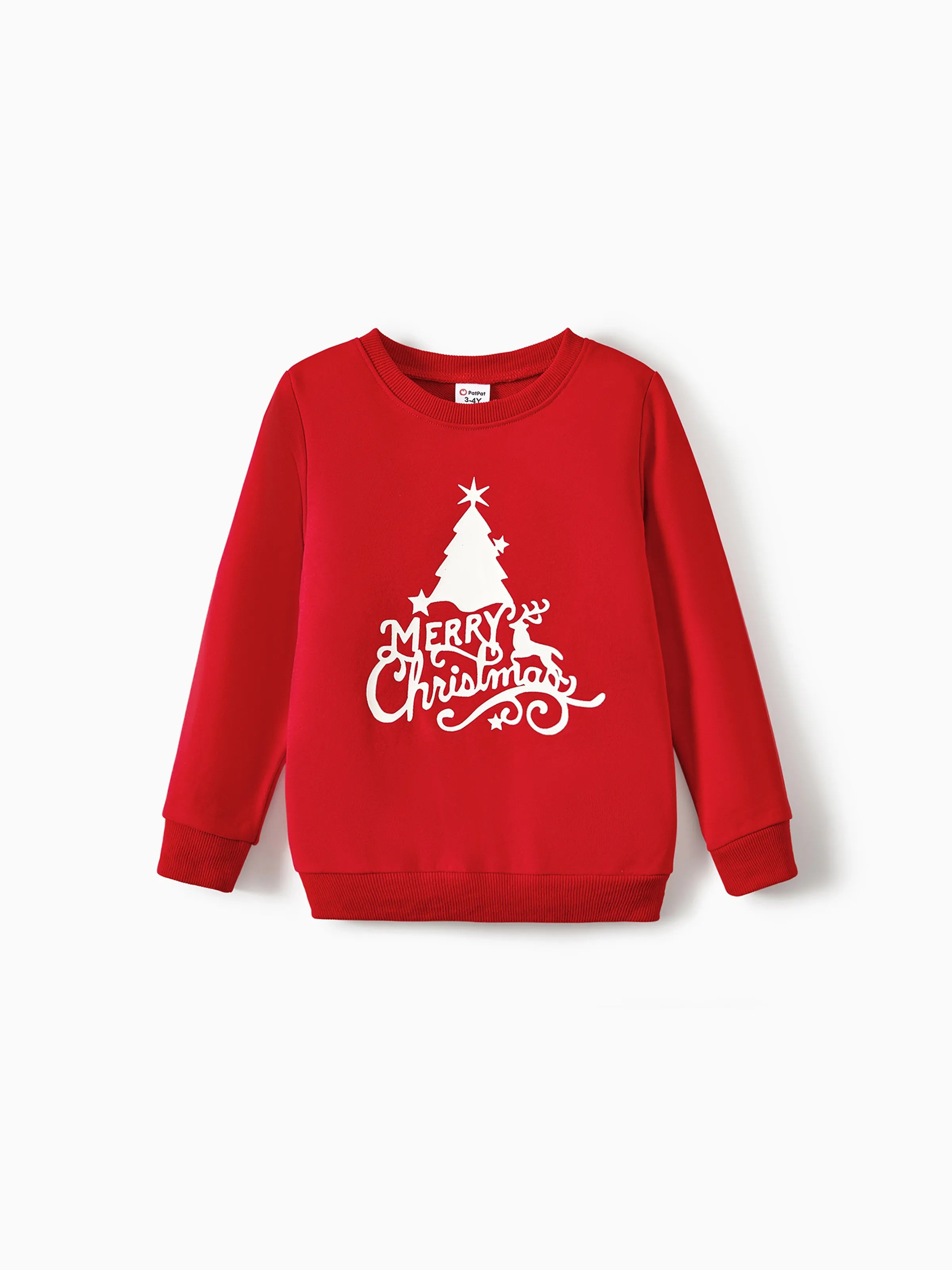 Christmas Family Matching Glow In The Dark Letters Print Long-sleeve Casual Tops Red