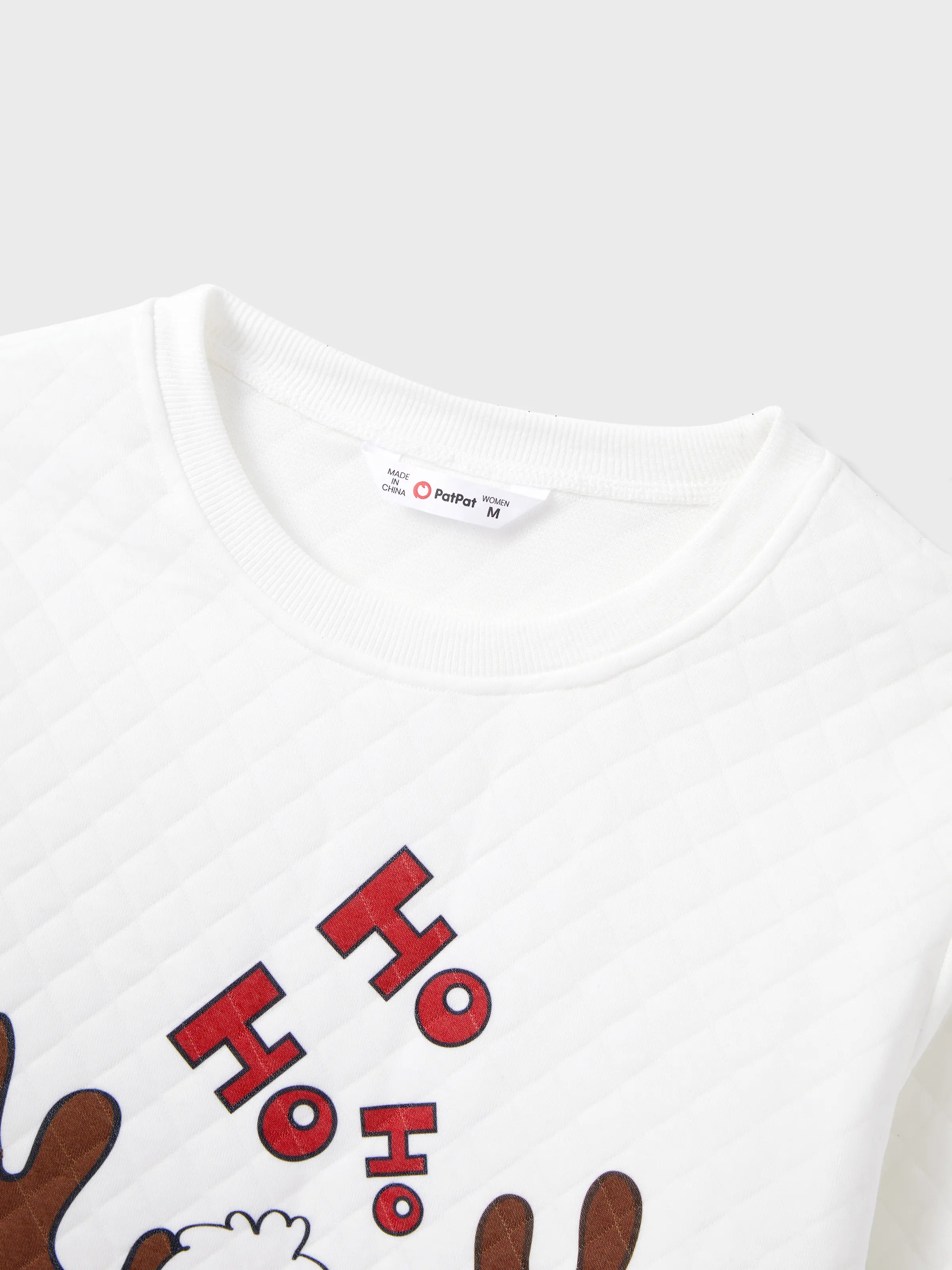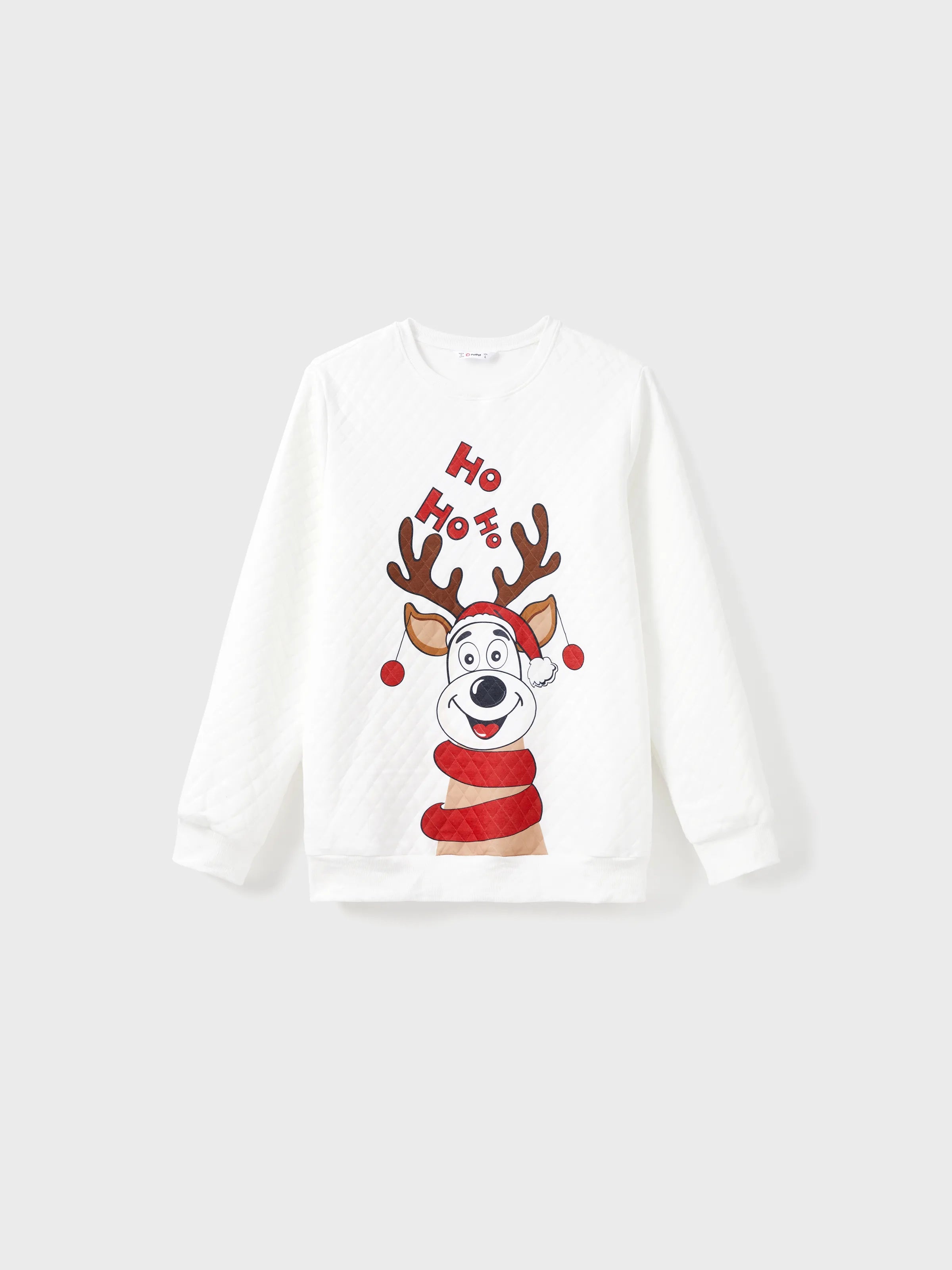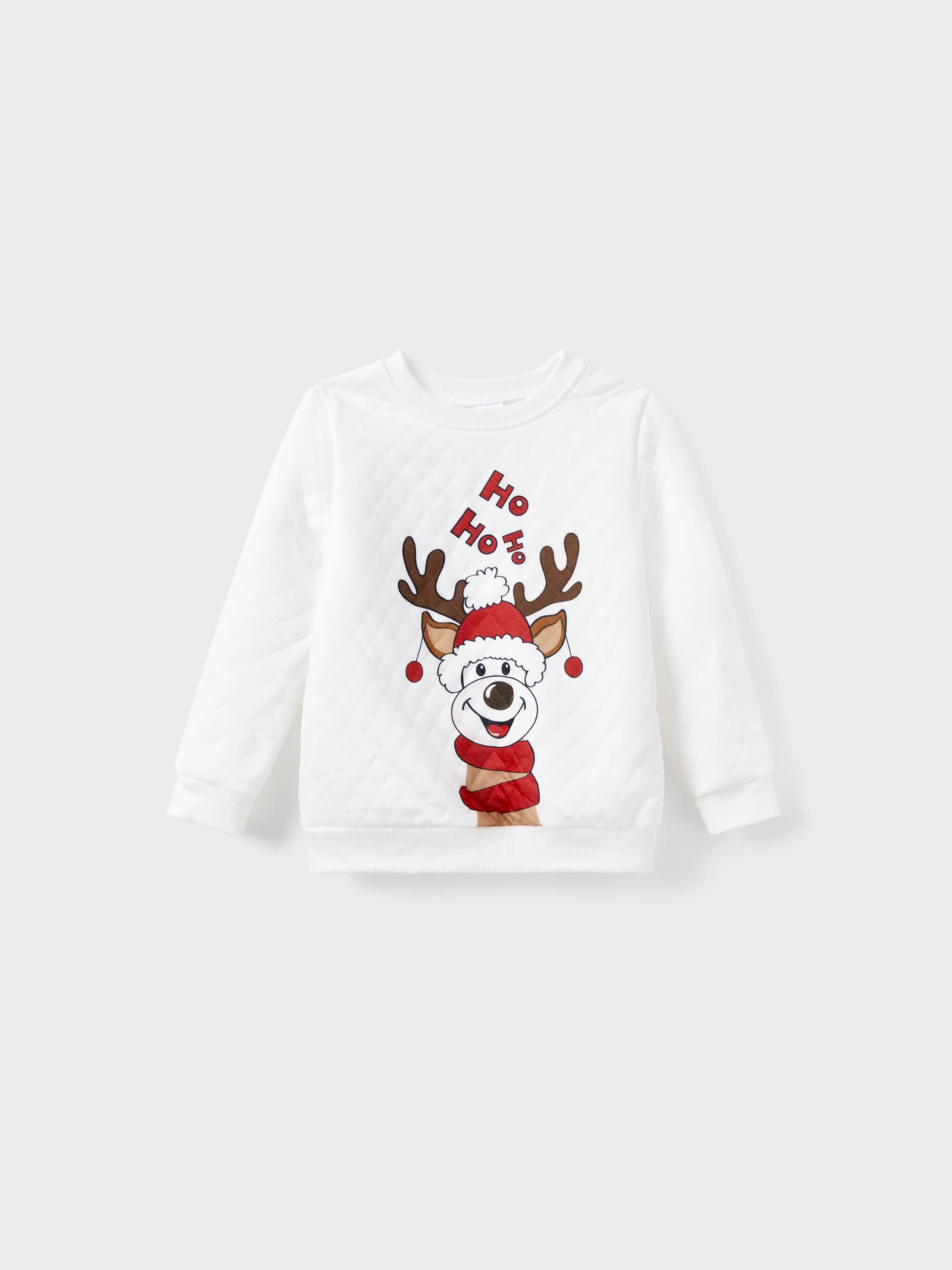 Christmas Family Matching Reindeer Print Long-sleeve Tops White