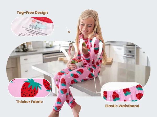 Christmas / Halloween Pajama 2-Piece Upgraded Thick Bamboo Pajama Set With Childlike Print for Toddler / Kids Girl (Snug-Fitting) Red