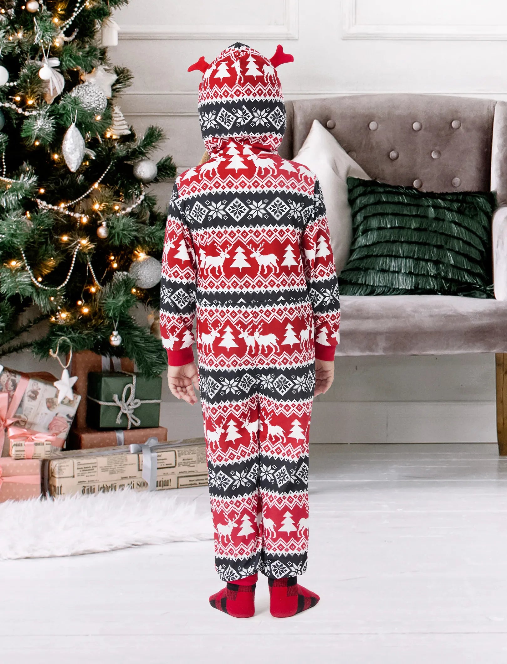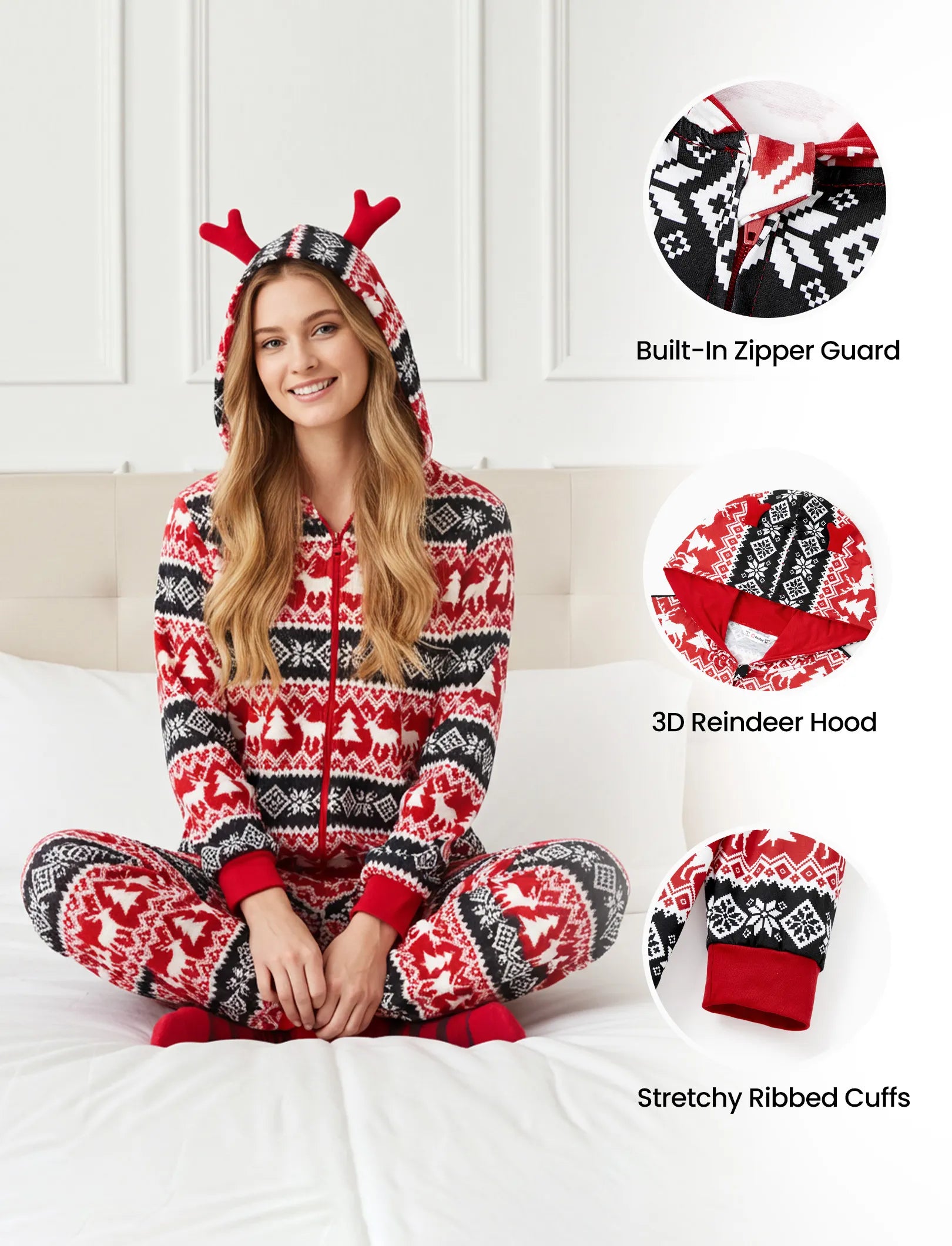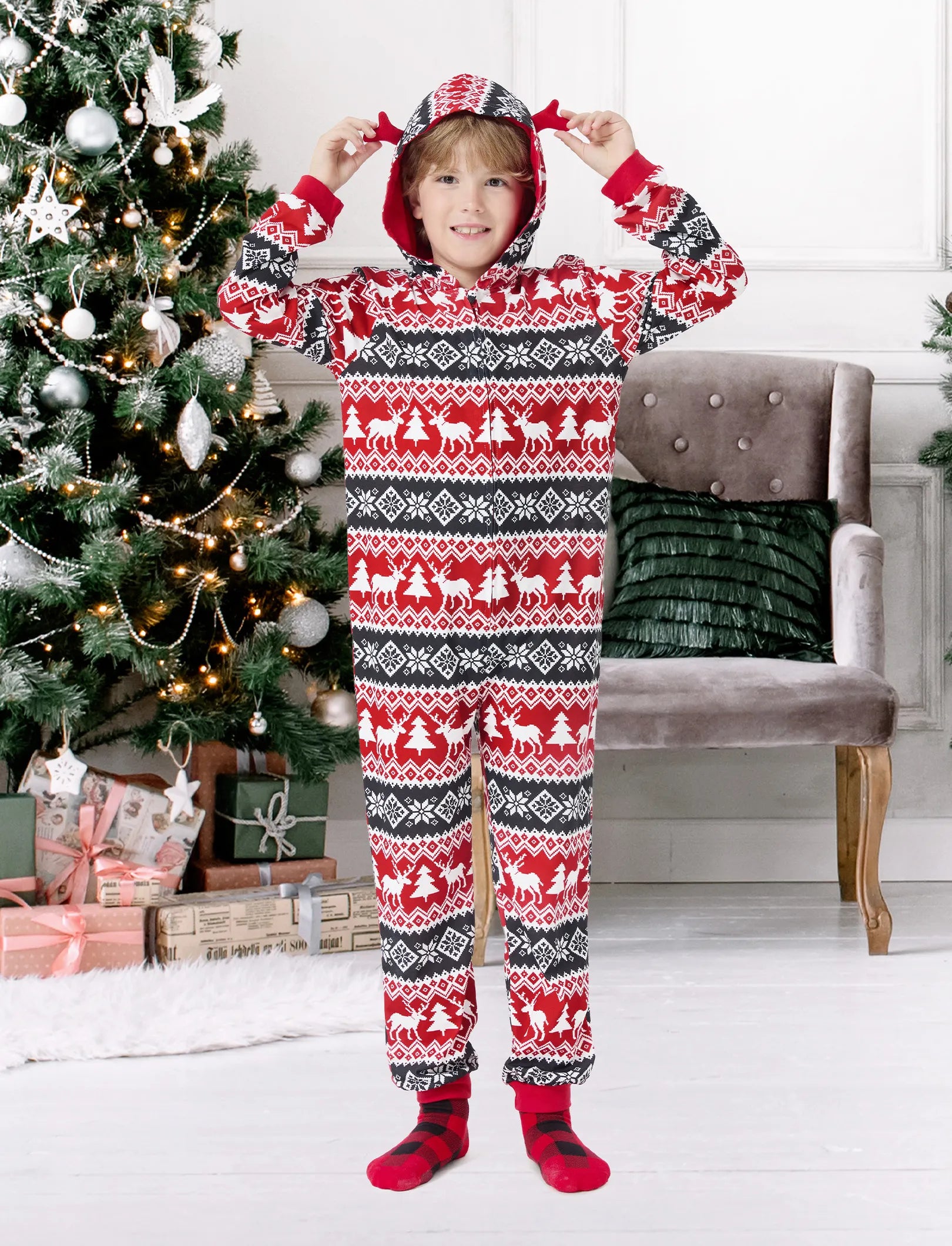 • Style: Hooded with 3D reindeer design.