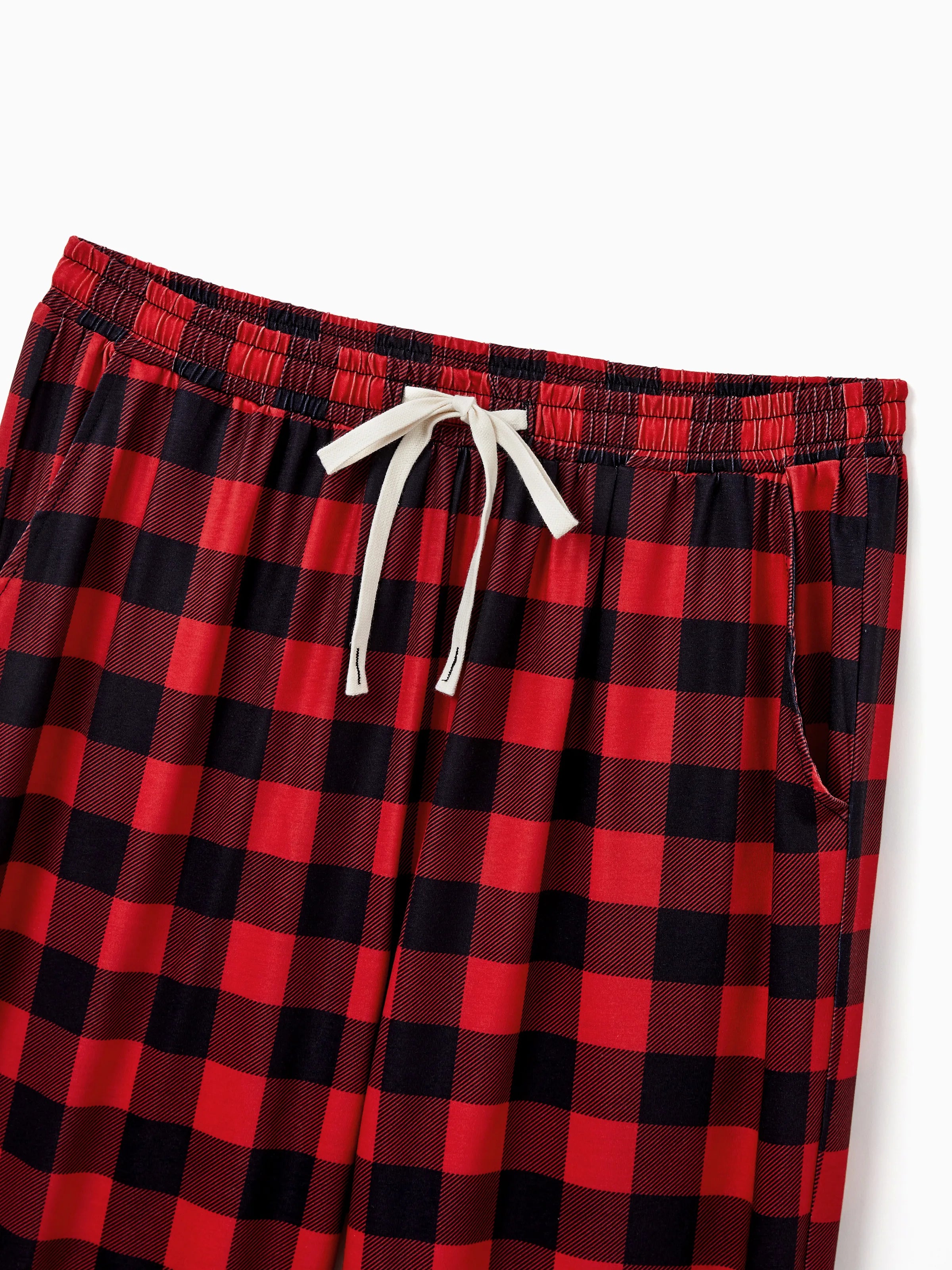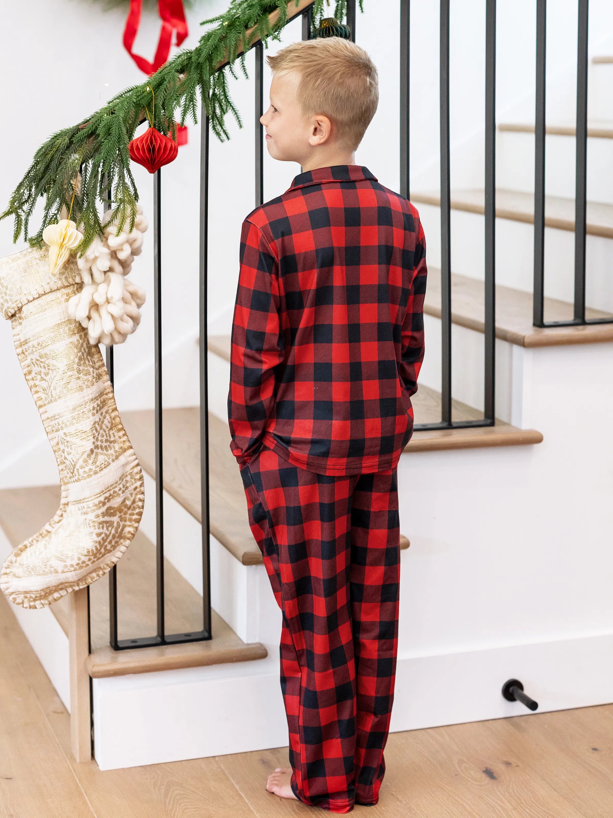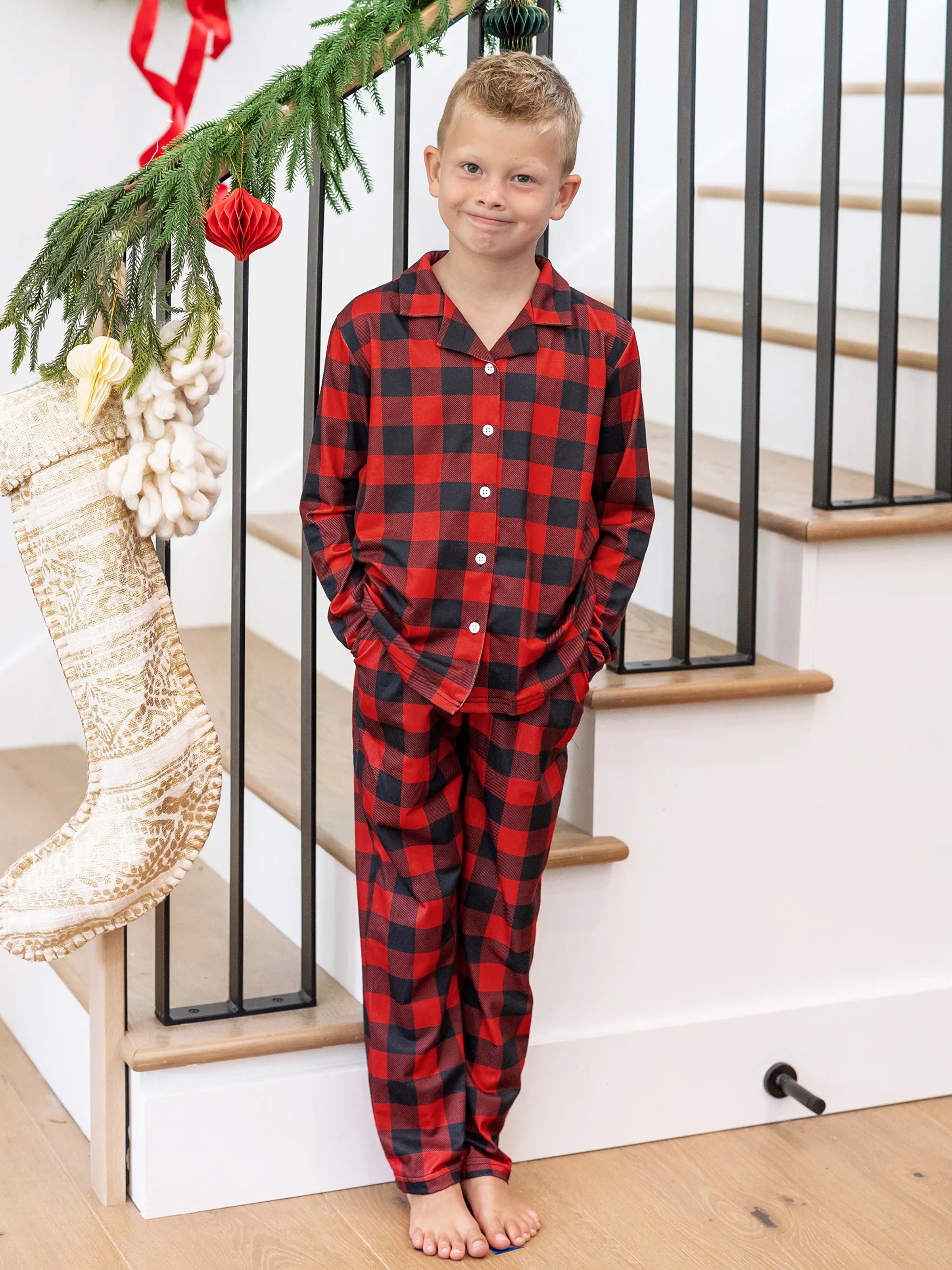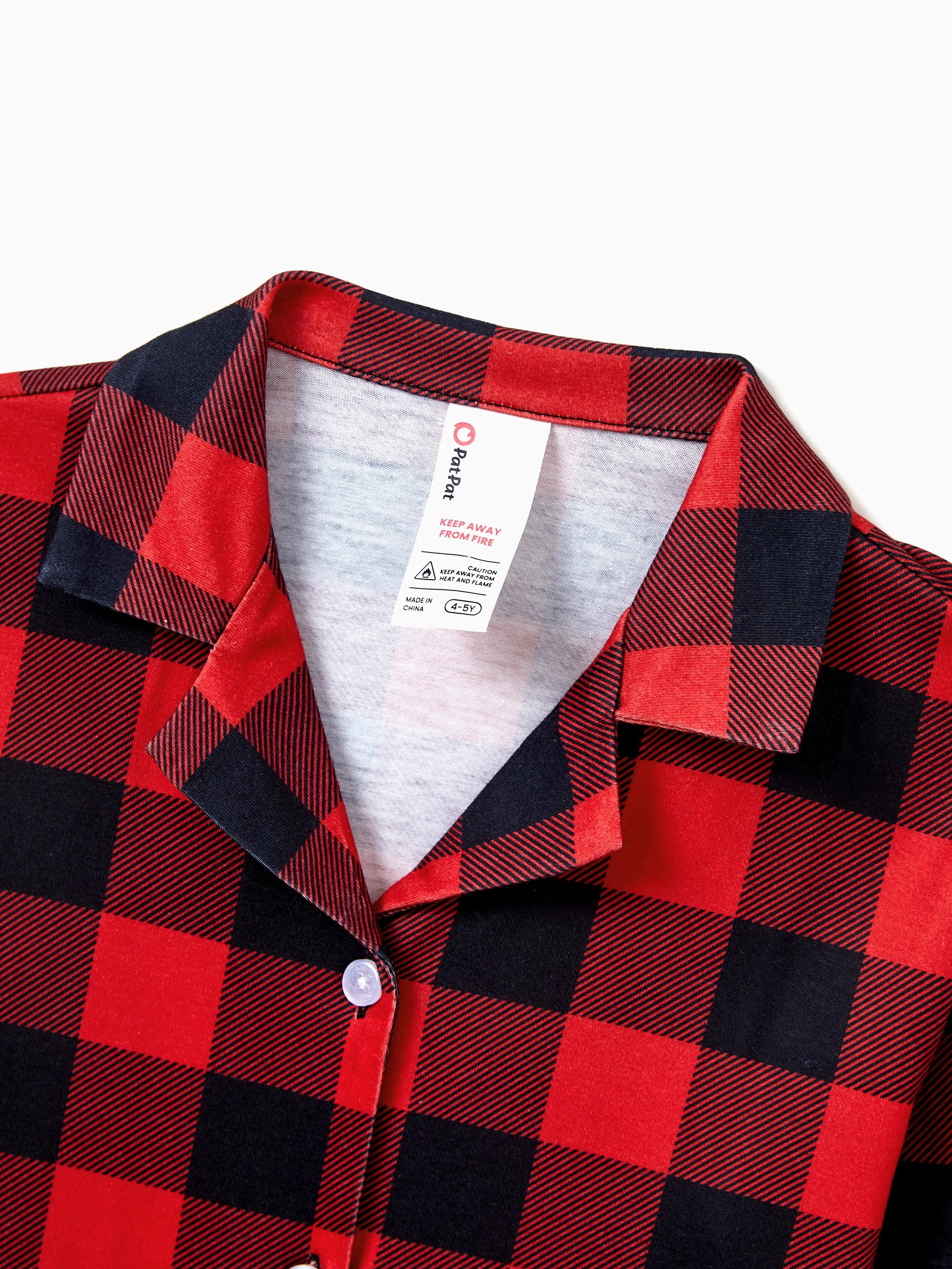 Christmas Matching Family Pajamas Set Allover Red Grid Print Long-sleeve Collared PJS with Christmas Socks Red
