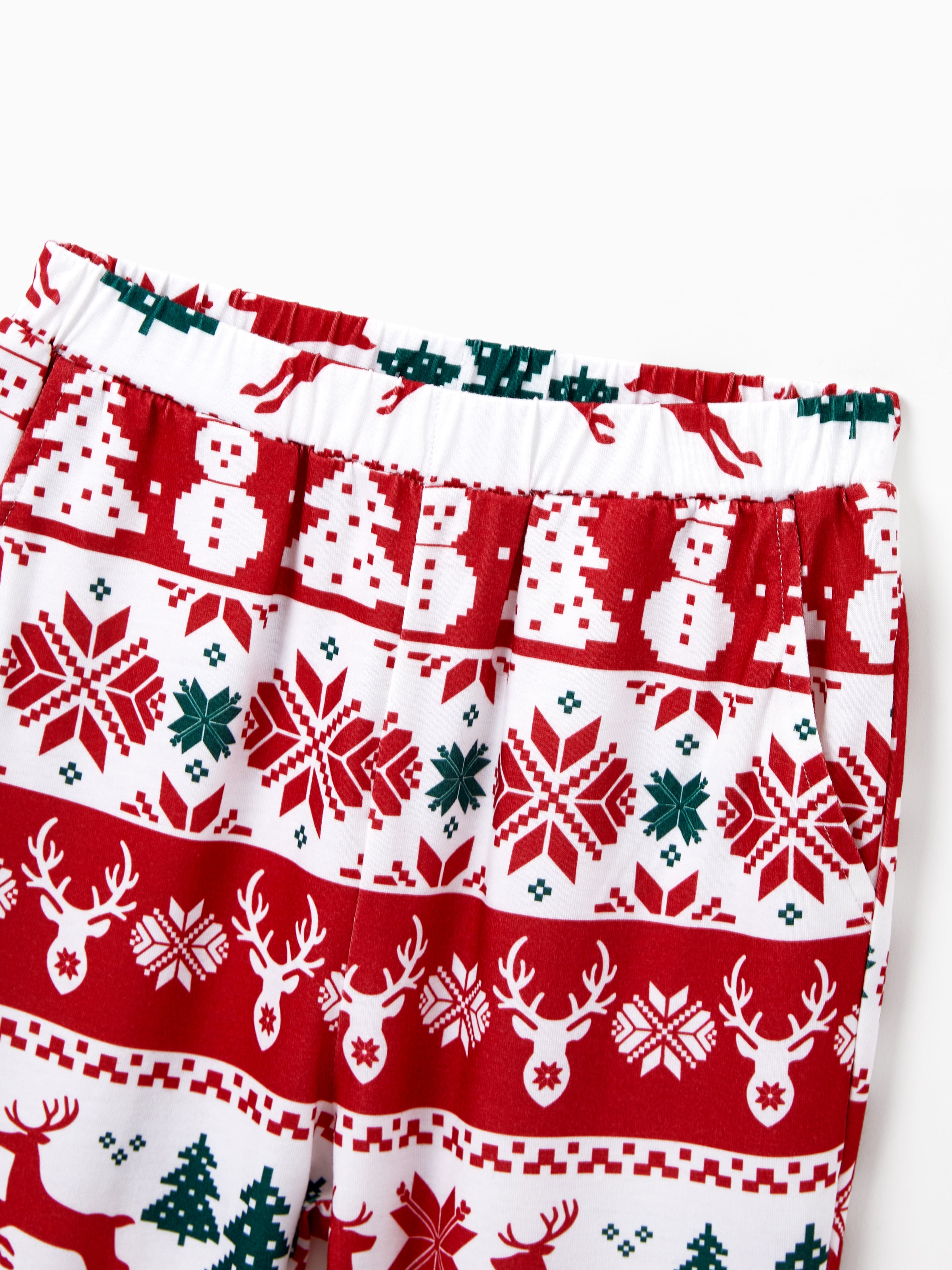 - Style: Festive family Christmas pajamas with reindeer, snowman, and Christmas tree prints.