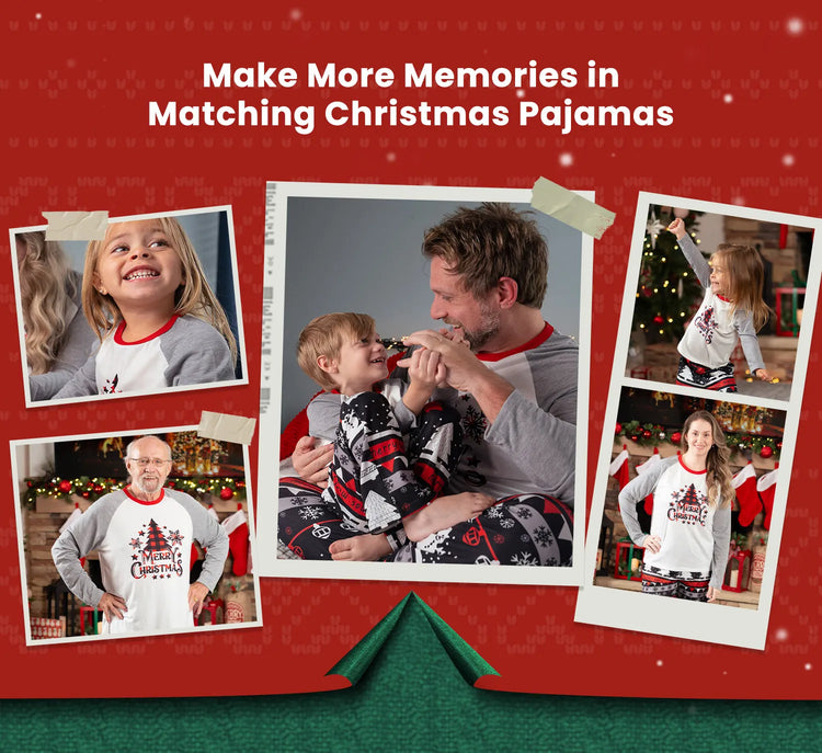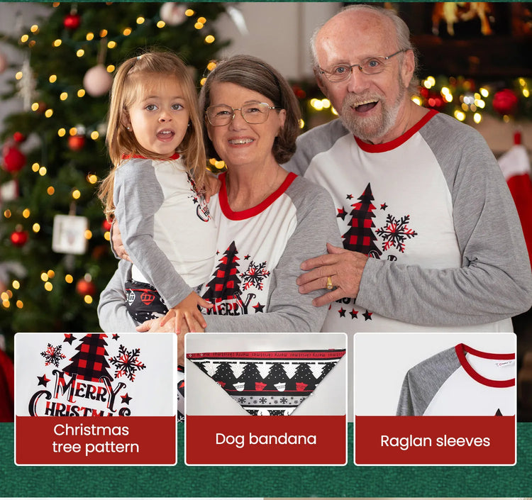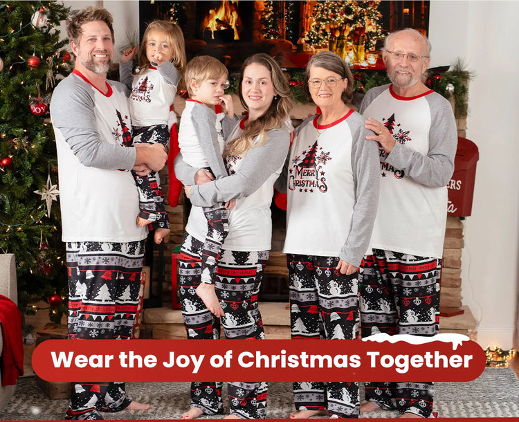 Celebrate Christmas in style with our matching family pajama sets. Featuring a cute Christmas tree, snowflake, and letter print on the front, our grey long-sleeve pajamas are soft and flame-resistant for added safety.