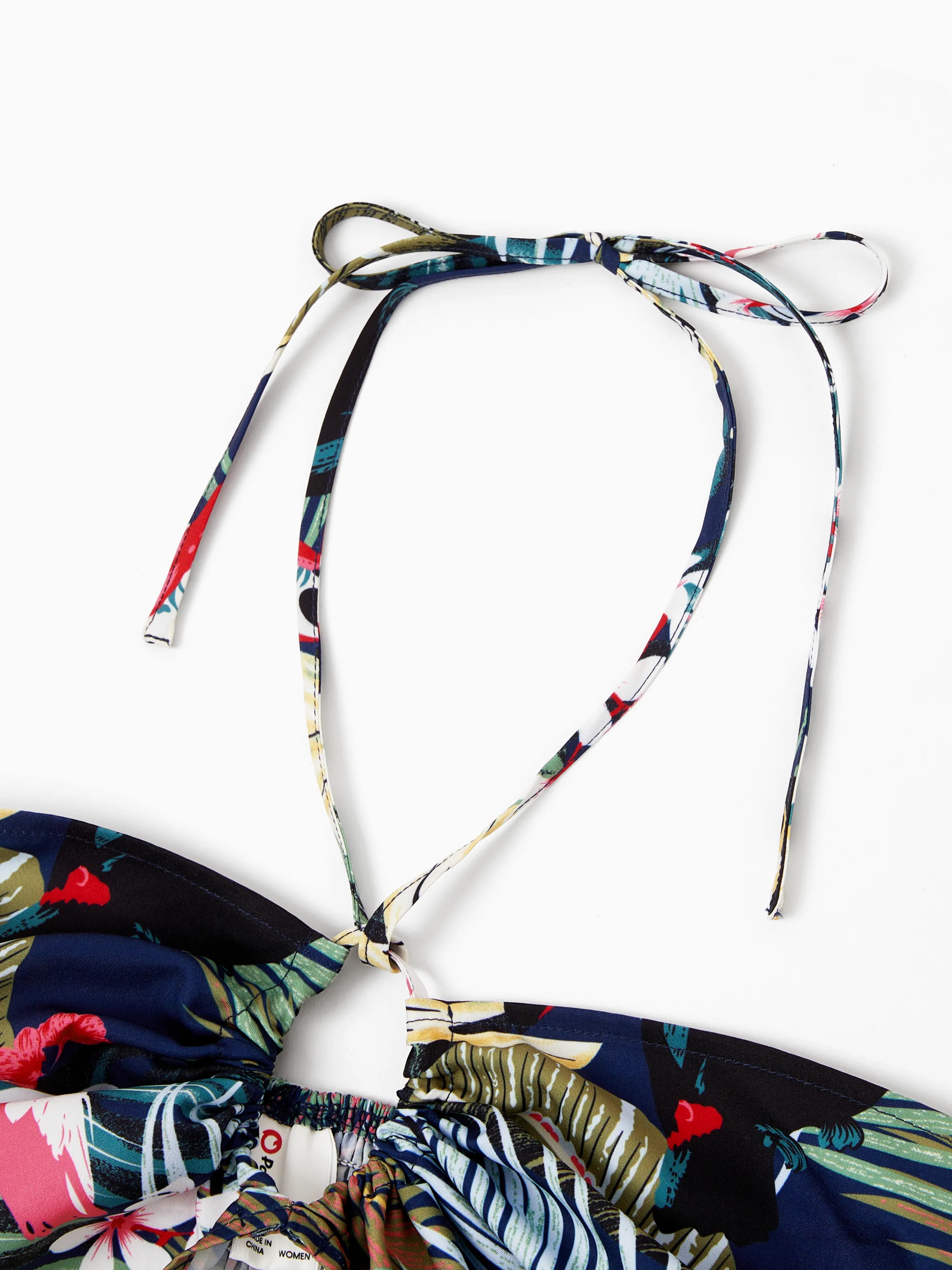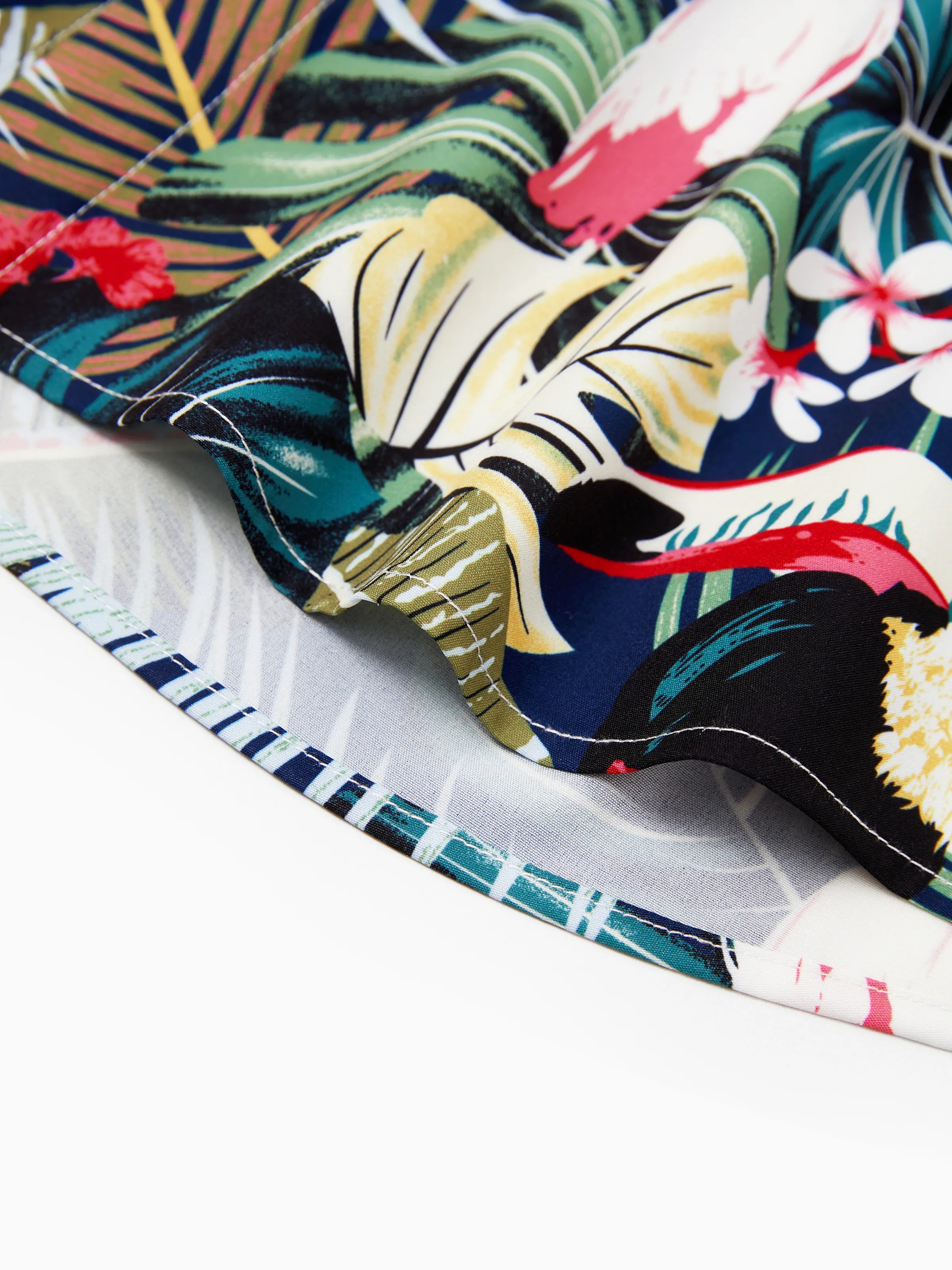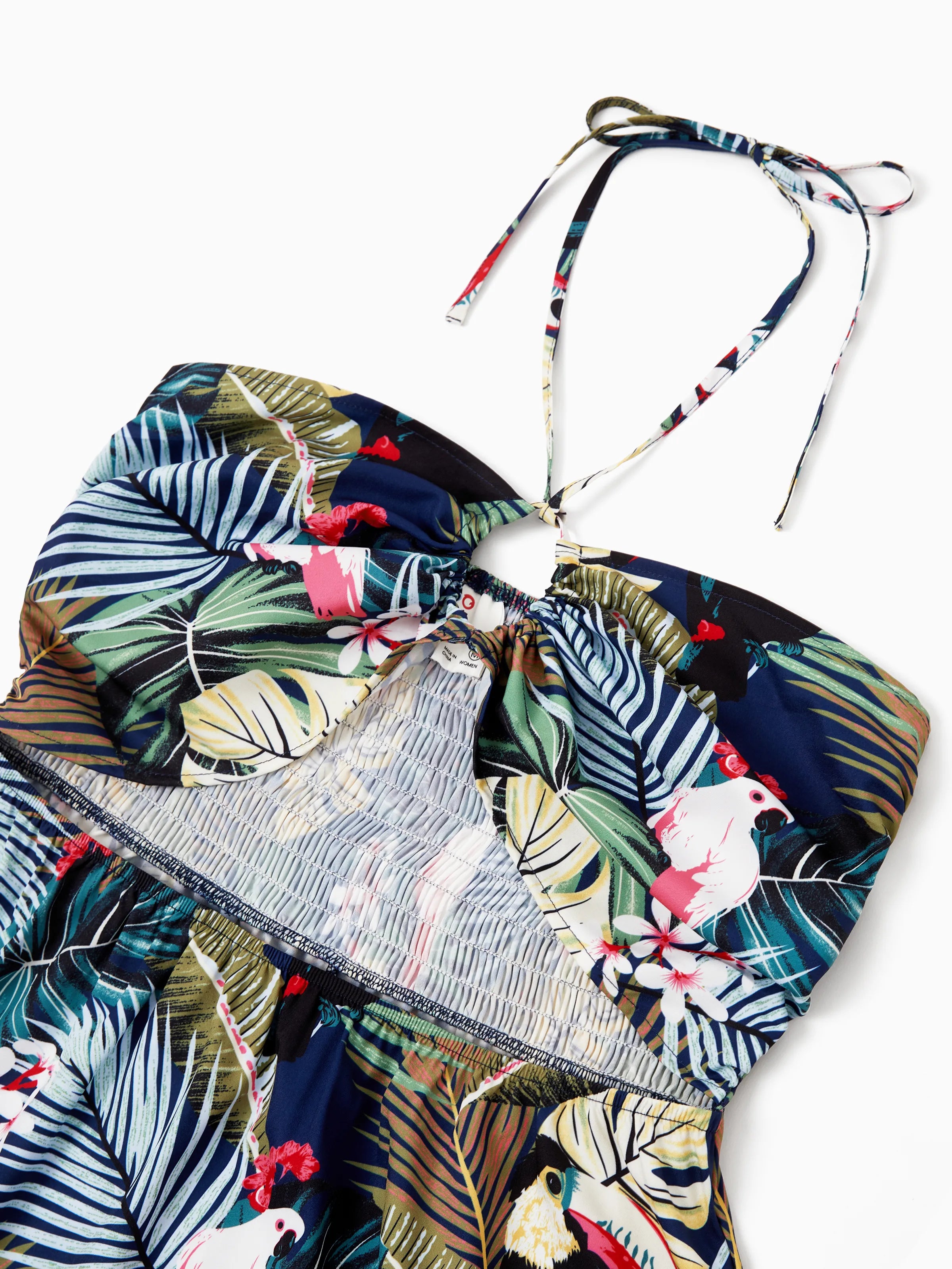 Couples Matching Hawaiian Set Tropical Print Short Sleeve Button-Down Shirt & Halter Cut Out Smocked Back Dress Set for Vacation Beachwear Deep Blue