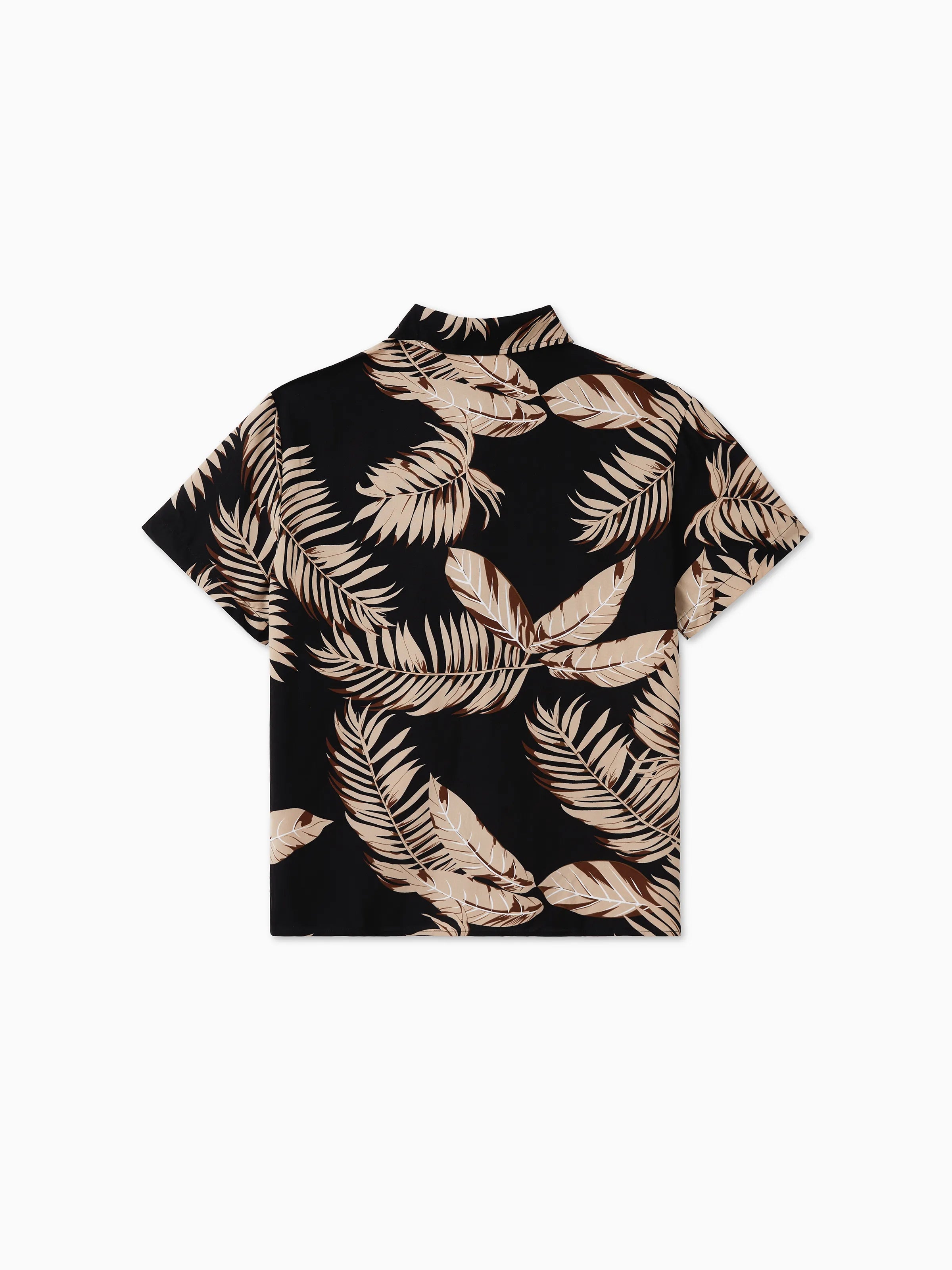 Daddy and Me Family Matching Solid Leaf Sleeveless Halter Dresses And Short Sleeve Tops Sets Black