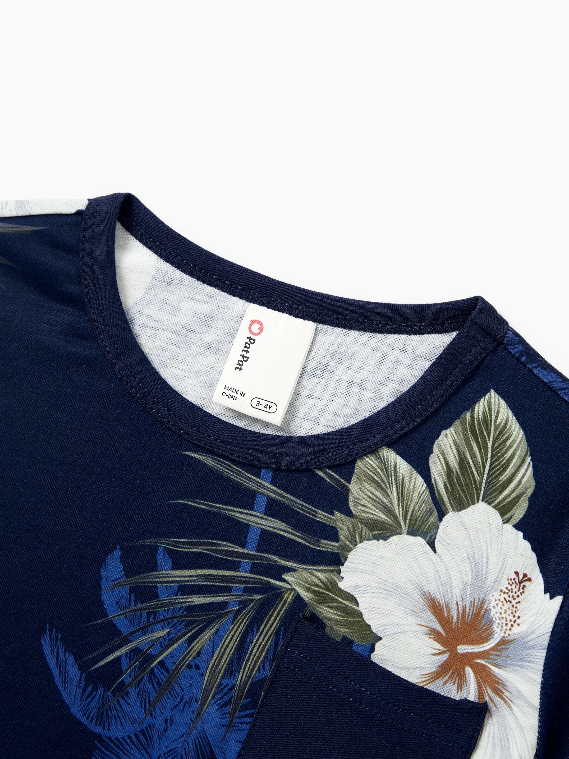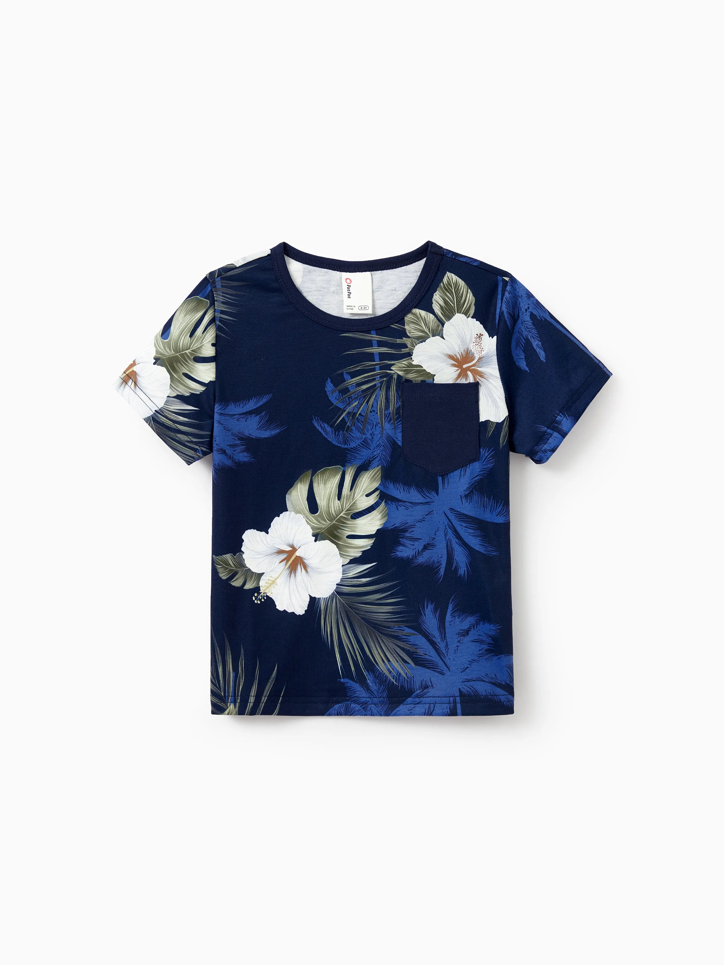 Daddy & Son Floral Print Cotton Top Short-sleeve Shirt Deep Blue