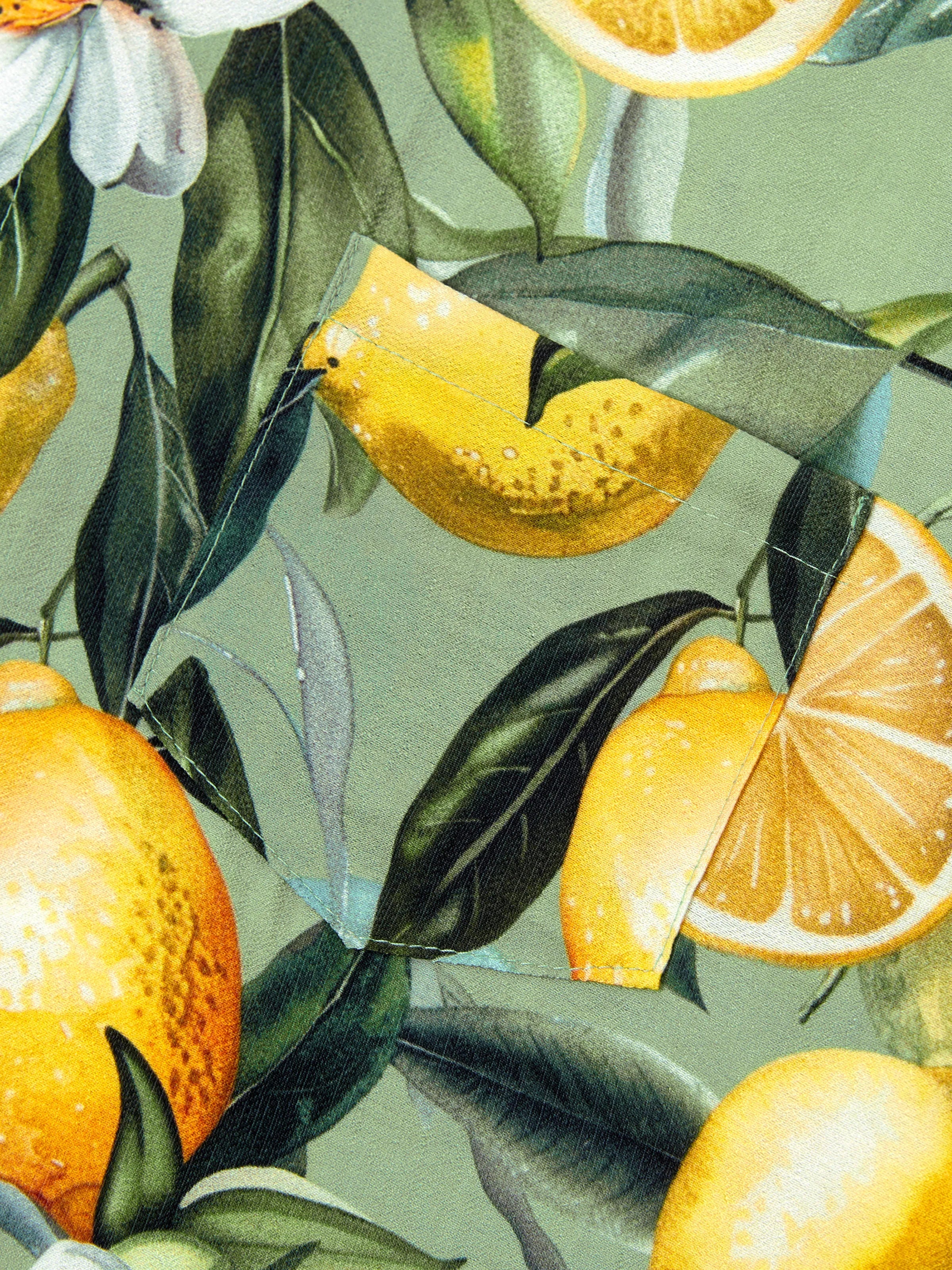 Daddy & Son Outfits – Lemon Print Hawaiian Shirts – Tropical Vacation Clothes for Men & Kids Green
